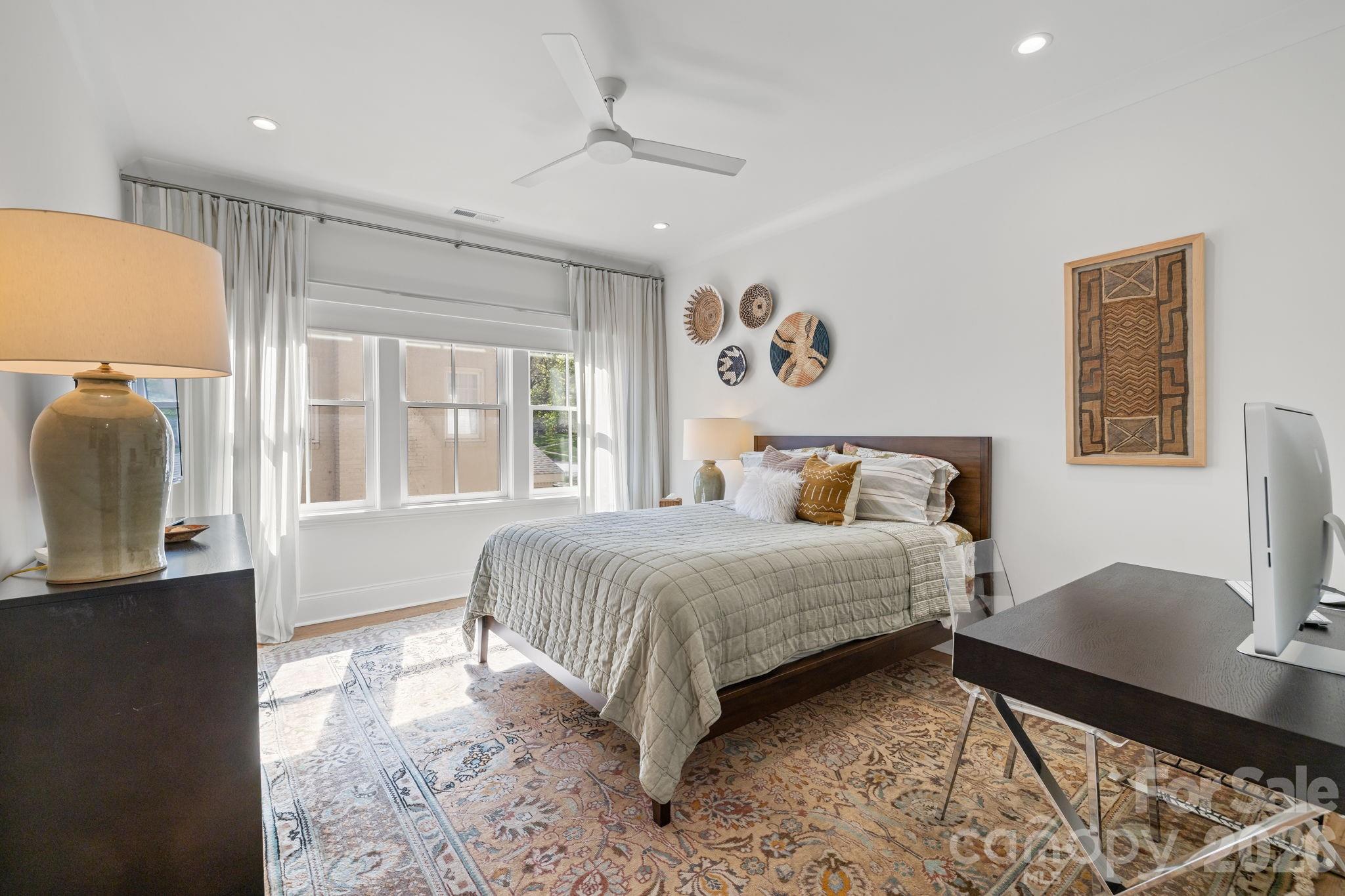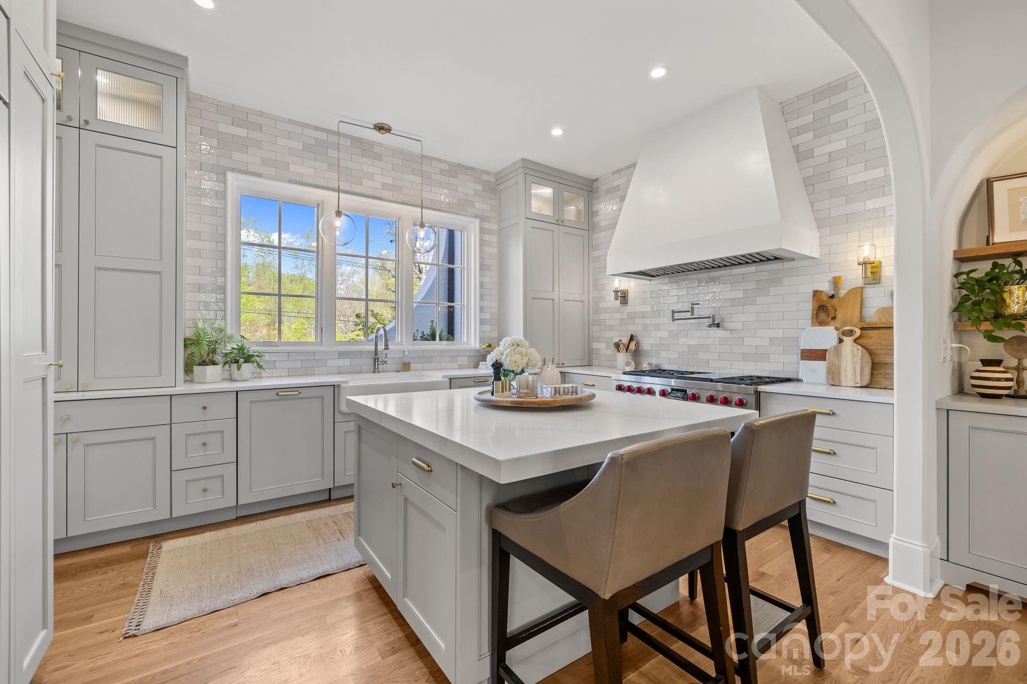 Welcome to 372 Hillside Avenue! This stunning townhouse built in 2021 is your answer to turn key living in the heart of Myers Park. The sophisticated design includes an open floorplan and elevated finishes throughout. The covered front porch, steel front door and curved architectural features exude charm as you enter the property. High ceilings, site finished oak hardwood floors and archways welcome you into the entrance foyer. The Chef's kitchen includes Wolf, Sub Zero and Bosch appliances (48" dual fuel range, custom hood, 42" built-in-fridge, dishwasher, wine fridge) and a center island with bar seating. Walk in pantry with a built in desk / house management area. The great room and dining room share an open generous space plus a custom designed bar with a wine fridge. The living areas blend comfort and style with built-in shelving on either side of the fireplace, scone lighting and double doors to the side screened in porch. The porch has stone flooring, tongue & groove ceilings and a ventless gas fireplace insert. Great drop zone / mud room at the interior entrance from the attached 2 car garage. The upper level includes an incredible primary bedroom suite and three other secondary bedrooms and a laundry room. The primary bedroom has a huge walk-in closet with custom built-in drawers, shelves and expansive hanging options - truly a dream. The spa bathroom has a soaking tub, spacious shower, a water closet and custom built-in linen storage. The secondary bedrooms are all generously sized with well organized closets. The third floor is flex space that be tailored to your personal needs and includes 2 walk-in storage areas. Attached 2 car garage with great storage systems in place. In addition to the private screened porch, the property has a blue stone patio and side yard with professionally designed, mature landscaping. Unmatched location with direct access to the Sugar Creek Greenway and walking distance to retail and restaurants on Selwyn and Park Road Shopping Center.