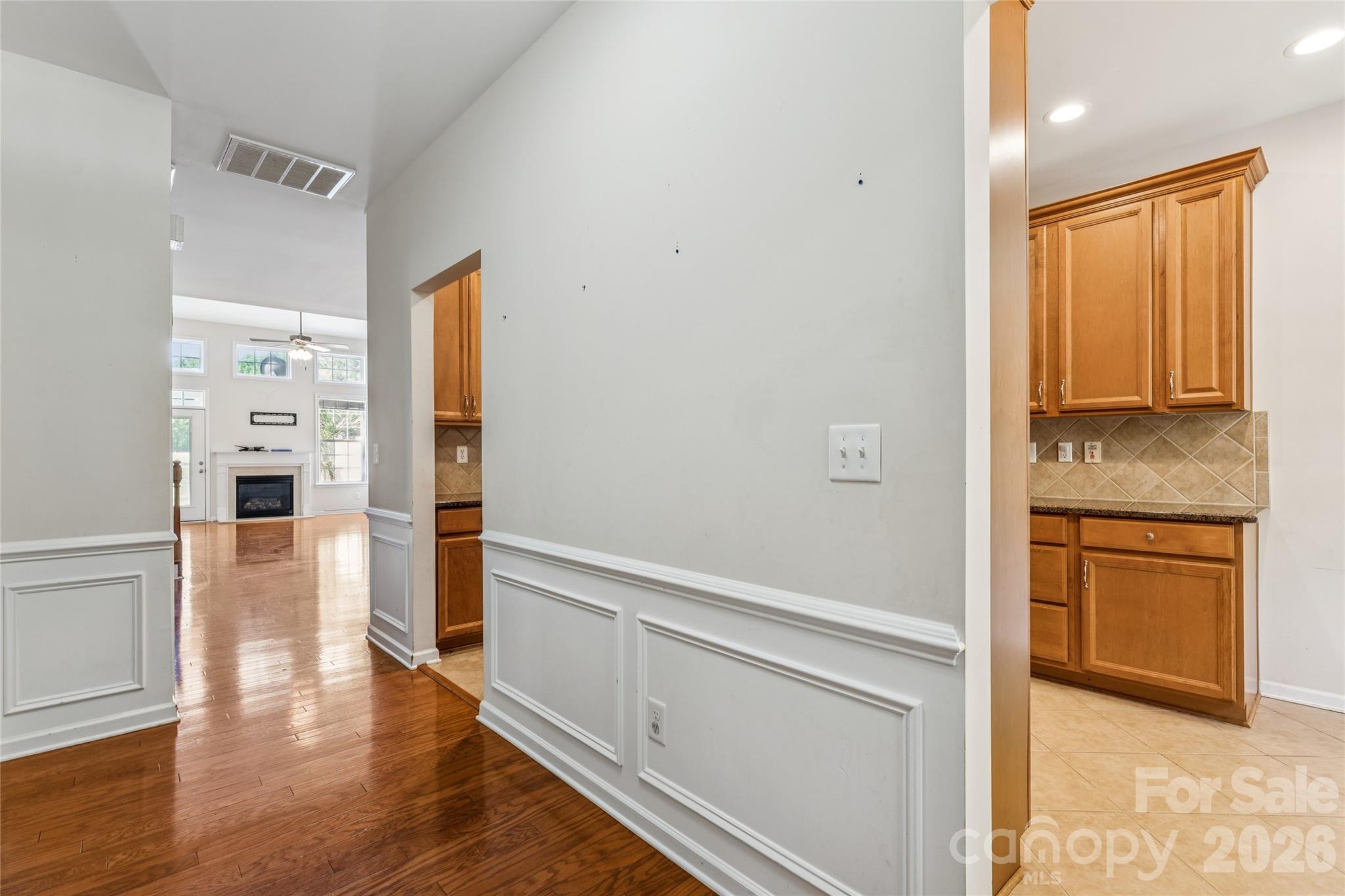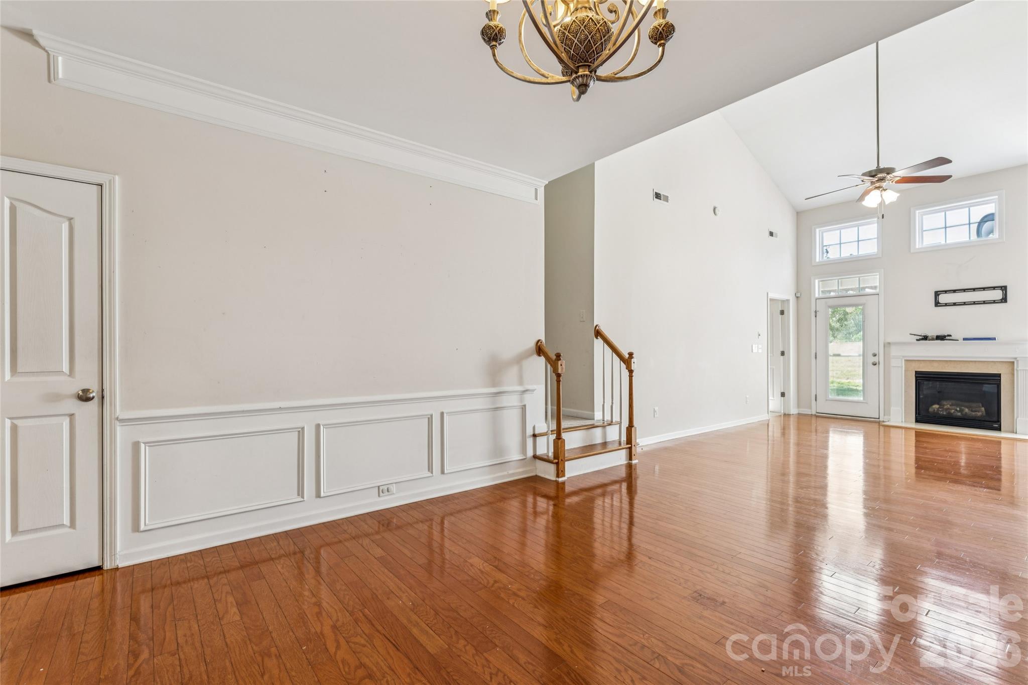 The inviting great room features hardwood floors, 9-foot ceilings, a gas fireplace, vaulted ceiling creating the bright, open feel buyers are looking for right now.
