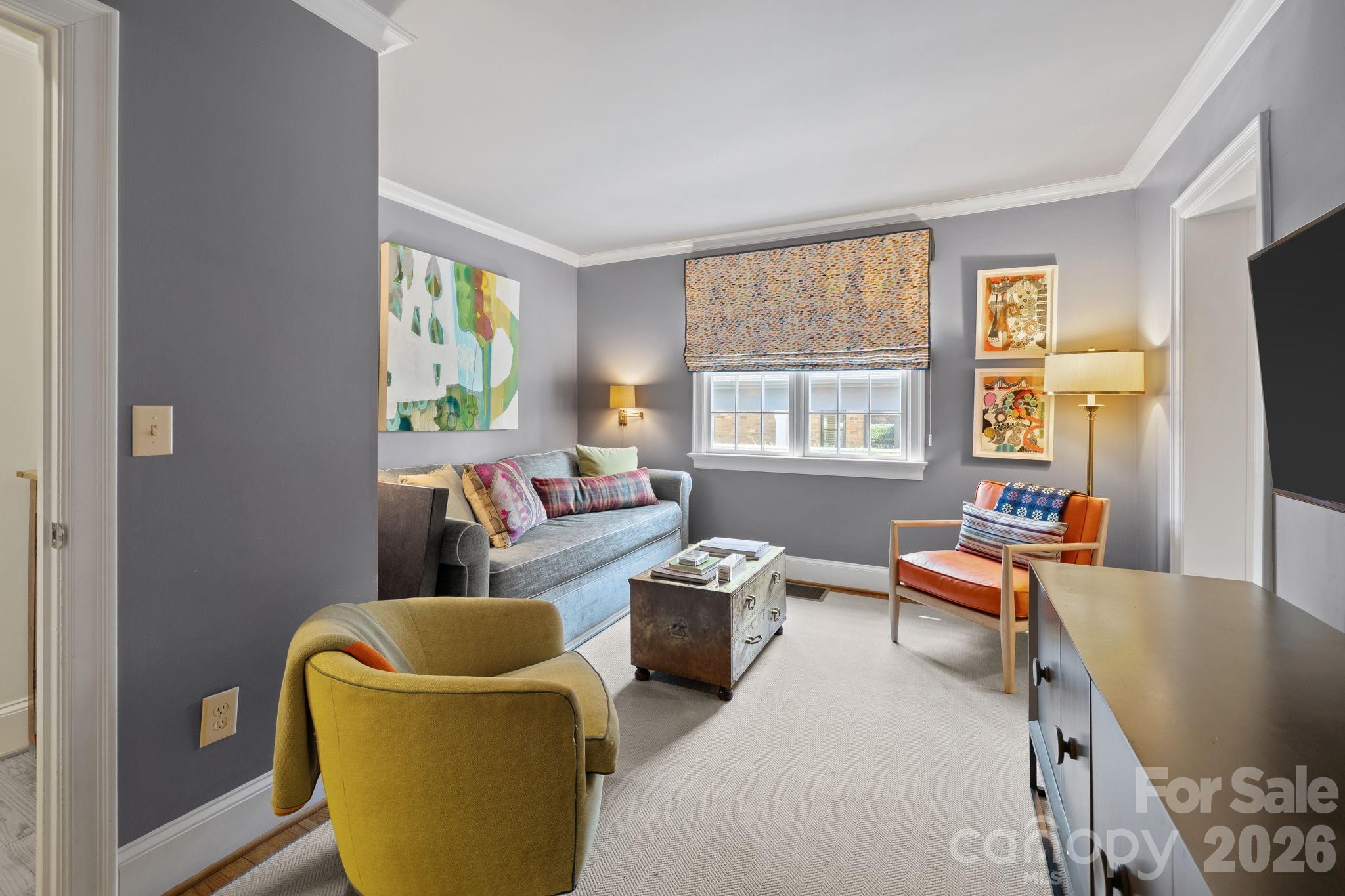 Timeless 5-bedroom, 4-bath home in highly sought-after Myers Park! Thoughtfully designed interiors blend classic charm with modern updates throughout. The updated kitchen opens seamlessly to a breakfast room & spacious family room overlooking the expansive & beautifully landscaped lot with an incredible covered porch, perfect for both everyday living & entertaining. The main level also includes formal dining, office, drop-zone and a private guest suite with en-suite bath. Upstairs, the primary suite offers a fabulous walk-in closet and a spacious, well-appointed bath, along with three additional bedrooms and two full baths. A detached garage with a fully renovated second living quarters above—complete with bedroom, full bath, and separate living area—provides exceptional flexibility for guests, office space, or exercise room. Located in the heart of Myers Park, walking distance to Freedom Park, the Greenway & Selwyn Ave - this is a truly special property!