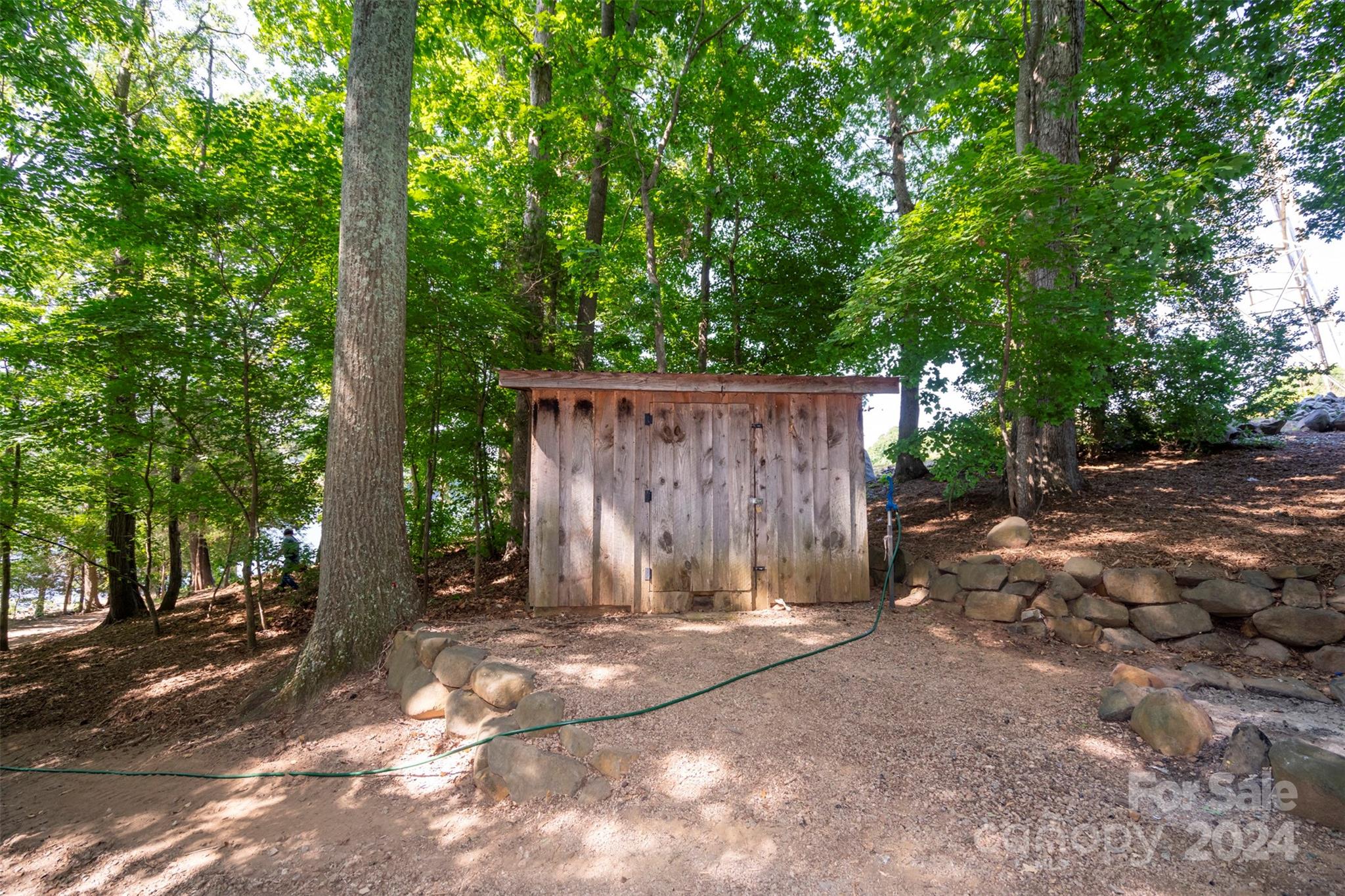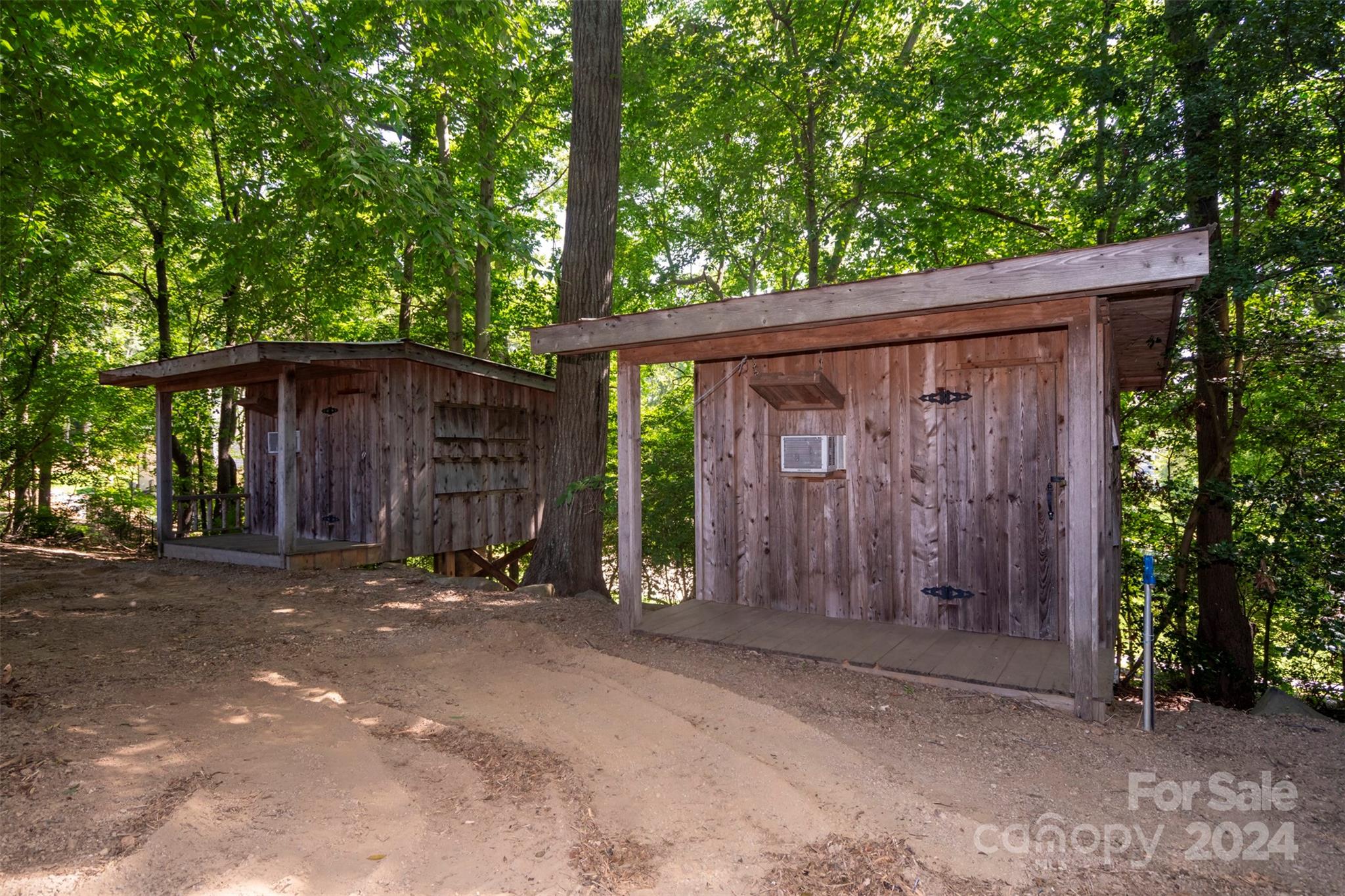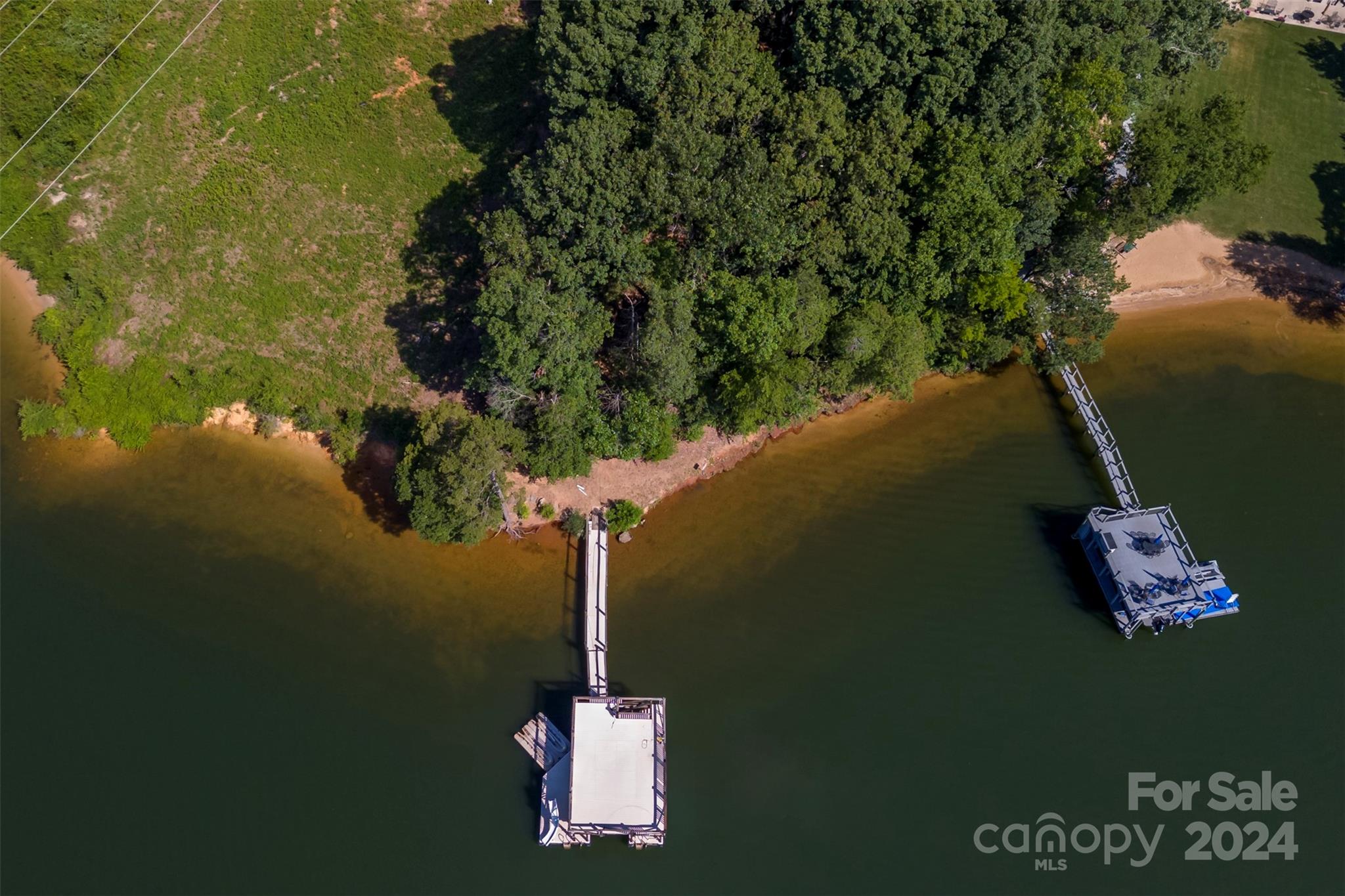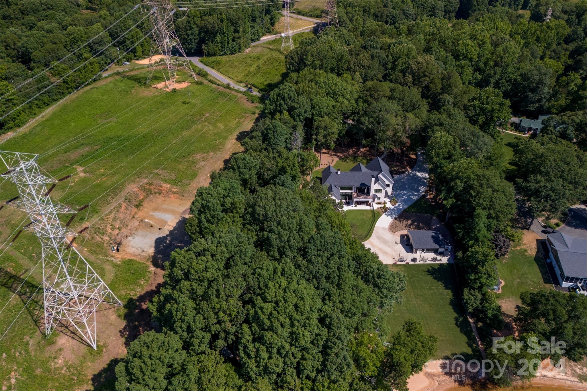 7.31 Acres 400+ feet of water frontage with Main Channel View two tiered pier with jet ski ramp 3 small cabin style buildings with bunk beds (see photos) covered outside kitchen, outside bathroom and shower 1 acre + or- suitable for building See building lay out. 6 + or - acres are under power line Very unique property with many possibilities