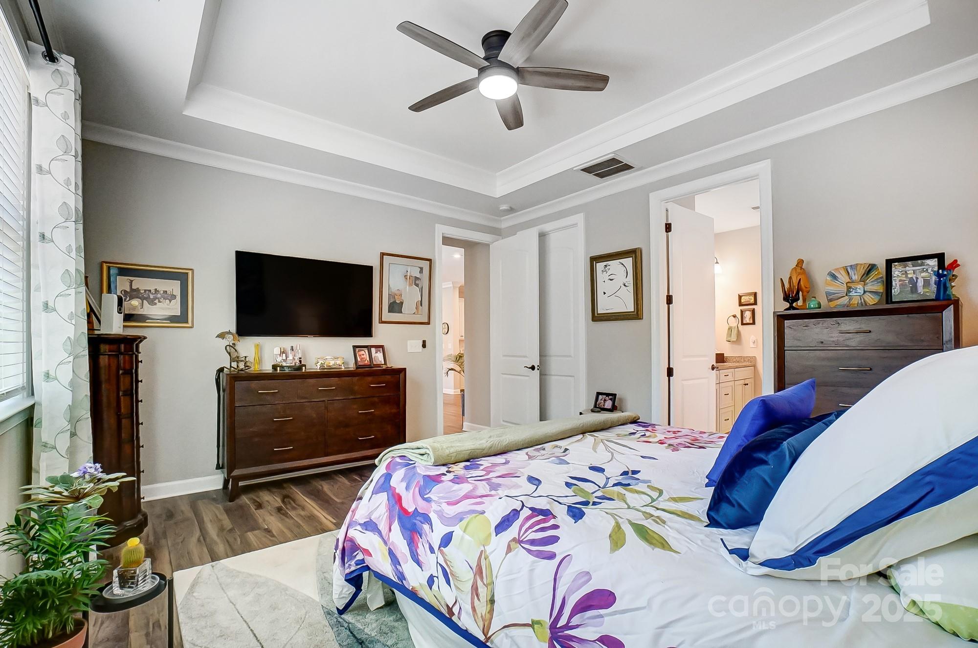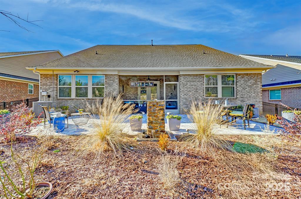 Experience effortless living in this stunning home featuring upgrades you expect in a model home. This FULL-BRICK, low-maintenance ranch features an ideal open-concept layout with huge quartz kitchen island anchoring the living space—The light filled open floor plan with spacious great room, chef's kitchen, butler pantry and dining is perfect for entertaining. The Primary Suite Spa bathroom features a zero entry tile shower, much storage and a linen closet. A second full ensuite with private entrance is ideal for guests or multi-generational living, plus a third bedroom & bathroom offer even more flexibility. Additional highlights include: Stone gas fireplace for cozy evenings, Extensive crown moldings & neutral finishes for a turnkey move, Spacious screened porch for year-round enjoyment, with ceiling fan and speakers, while enjoying the serene trees and water view. Our amenity center features a heated salt water pool, pickle ball court, outdoor dining and lounge with fireplace as well as clubhouse. All of this in a neighborhood known for it's welcoming vibe & easy access to I-485. This is the best home in the neighborhood—perfect for downsizing without compromise. You deserve this!