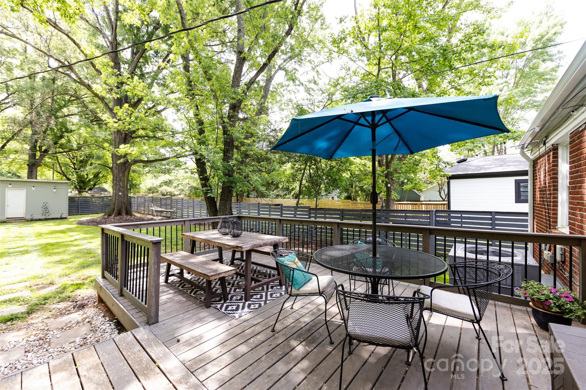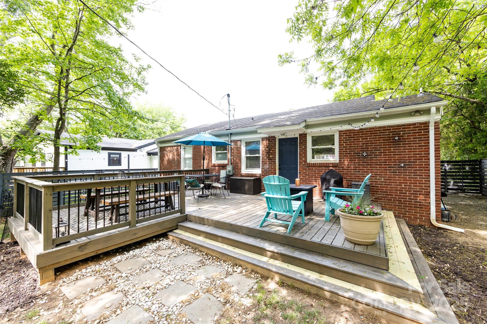 Wonderful Craftsman Bungalow close to Plaza Midwood/Noda area. This lovely 3 bedroom 2 full bathroom 1 story home features an open floor plan with hardwood floors throughout. Relax in the large living room with extra space for a bar or office and views into the kitchen with granite counter tops, stainless steel appliances and a cute corner built in banquette seating. The primary suite features a wood plank ceiling and private bathroom with dual sinks, soaking tub/shower combo and walk in closet. Spacious secondary bedrooms with good closet space. Entertain on the back deck in the huge fenced in yard with mature tress and storage building. Home also had the HVAC replaced in 2024. Great location close to everything. Seller is willing to sell most of the furniture in home and gym equipment in storage building. Brand new electrical panel up in on 5/22/25.