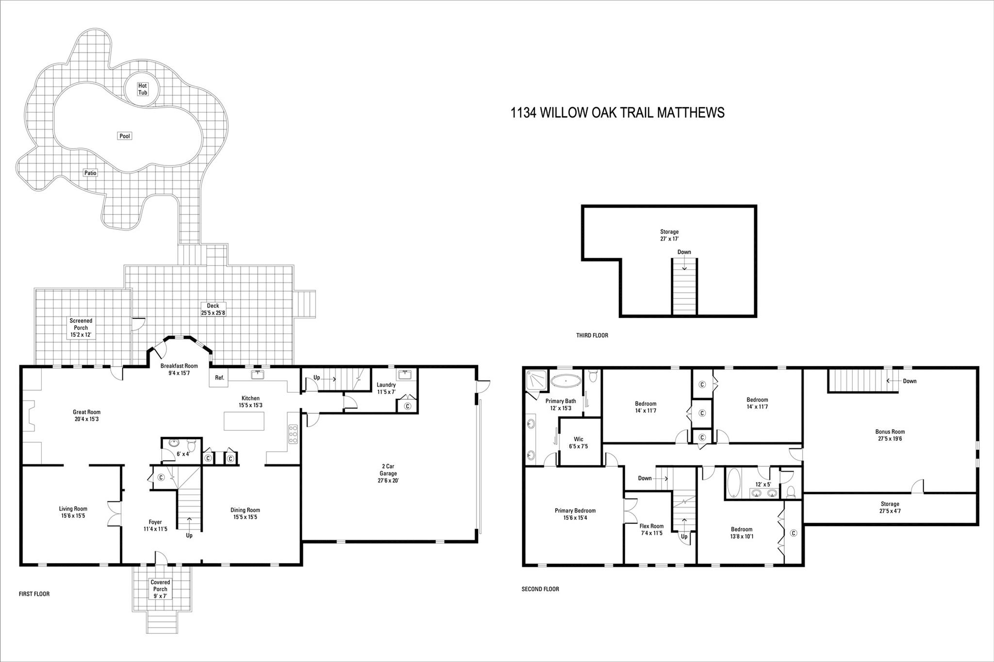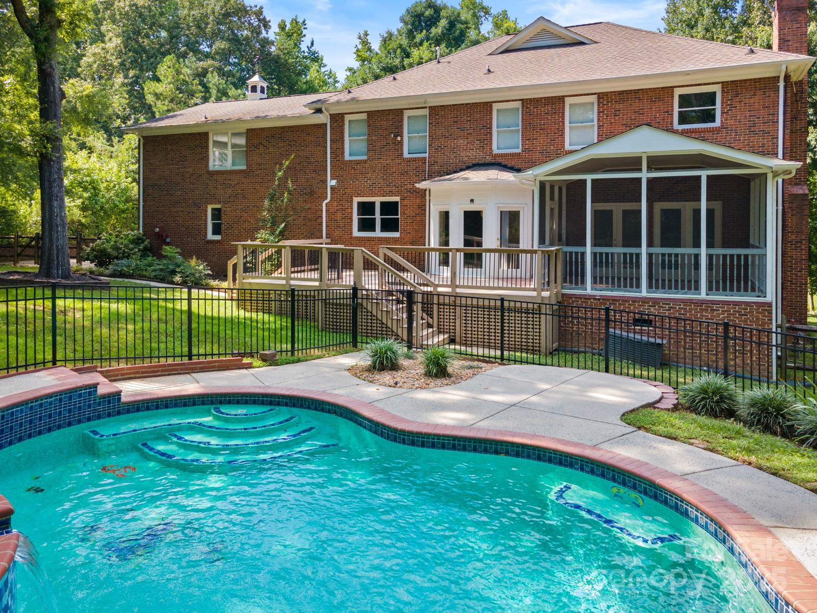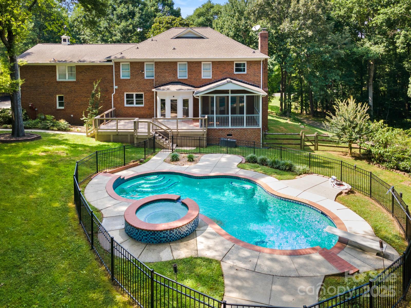 Weddington Schools...This Desirable Colonial Full Brick Matthews Home offers stunning updates throughout. Situated on over an acre w/ a pool, private mature landscaping fully fenced in backyard with a beautiful outdoor living space. This home features 4 bedrooms, a private study off the primary bedroom, two and a half updated bathrooms, a huge bonus room, and a gourmet kitchen overlooking the oversized deck, heated pool & hot tub. In addition this Home includes a formal dining room and living room, a family room with a gas fireplace, a screened in porch w/ beautiful scenic views, hardwood floors throughout, fresh paint, spacious walk up attics, walk in crawl space, an oversized 2 car garage. New HVAC, Pool equipment, deep well with new whole house water filtration system and pressure tank. Don't Miss out on this Rare Find in Desirable Willow Oaks Community.