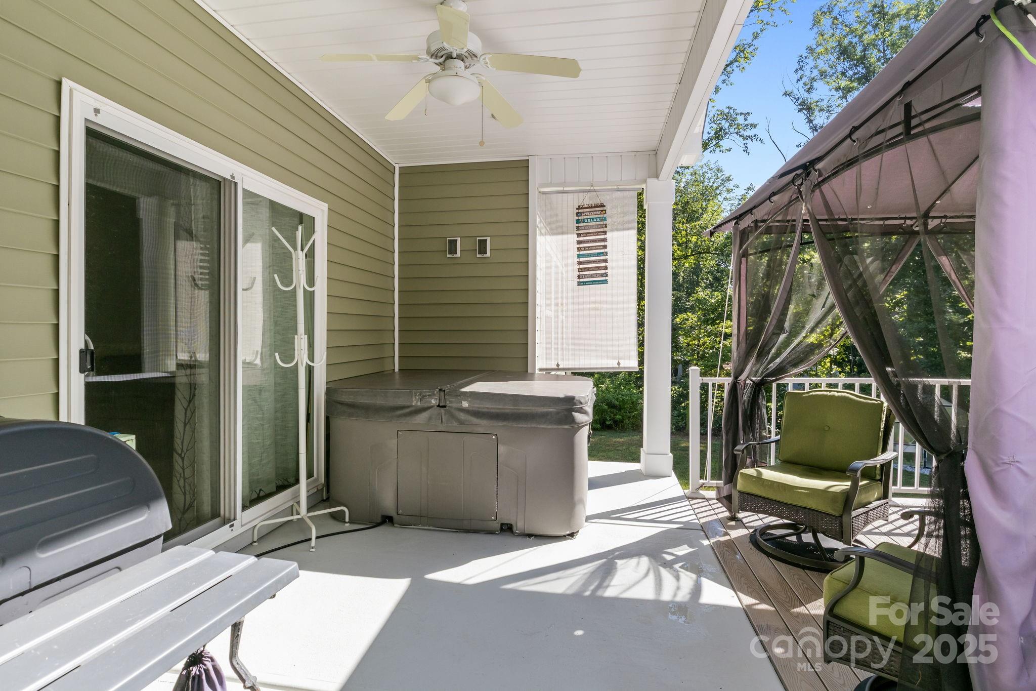 Step outside into your own private sanctuary featuring a hot tub, gazebo, and a self-watering greenhouse—perfect for year-round gardening. Three storage sheds provide plenty of room for tools and gear. Relax or entertain on the Trex decking, with craftsman-style ceiling fans on both the front porch and back deck, offering comfort in every season.