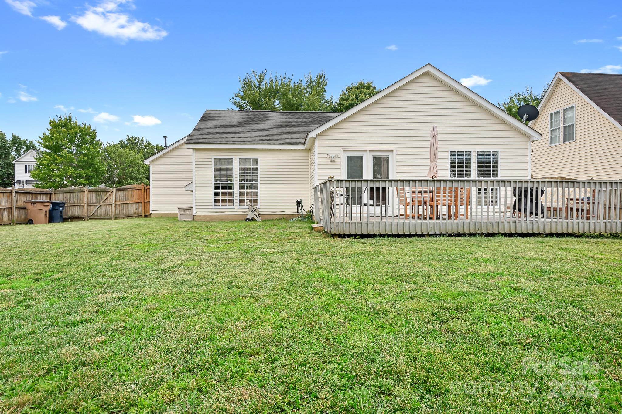 Welcome to this adorable 3-bedroom, 2 full bath home on a corner lot featuring a cozy living room with a fireplace and gas logs—perfect for relaxing evenings. The kitchen includes a new garbage disposal, refrigerator, electric range and dishwasher while the dining room opens to the large deck overlooking a fully fenced backyard, ideal for pets, play, or gatherings. A storage building provides extra space for tools or hobbies. Inside, the home comes equipped with three mounted TVs—one in the living room (complete with sound bar), one in the primary suite, and one in the guest bedroom—offering convenience and entertainment in every corner. Washer and dryer also conveys. This well-maintained home is move-in ready and full of charm—don’t miss out!