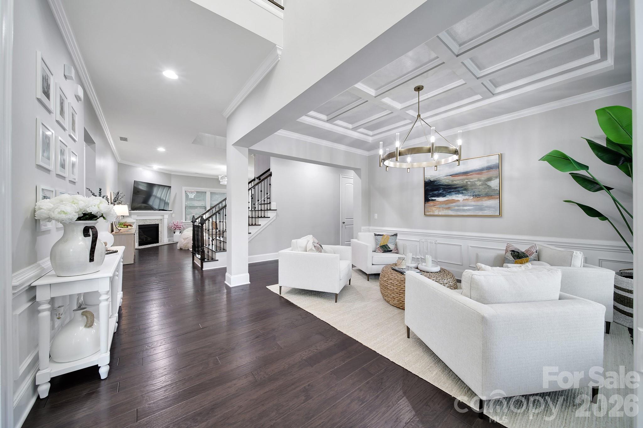 Get ready to be impressed by this stunning all-brick home featuring designer-level finishes in the highly sought-after Brayden community. This 5-bedroom, 4-bath residence offers over 4,400 square feet of beautifully curated living space, showcasing elegant upgrades, modern lighting, and exceptional attention to detail throughout, along with a 3-car garage. From the moment you enter, you’re welcomed by an open-concept layout filled with natural light, highlighted by upgraded 5” hardwood floors that span the main level and extend into the upper hallways. Crown molding throughout the main living areas and a striking coffered ceiling in the dining room—currently styled as a sitting room—add a touch of timeless sophistication. The gourmet kitchen serves as the heart of the home, featuring a spacious quartz island, 5-burner gas cooktop, wall oven, stainless steel appliances, butler’s pantry, and walk-in pantry—perfect for everyday living and effortless entertaining. The kitchen flows seamlessly into the inviting great room with a cozy gas fireplace and a bright breakfast area overlooking the backyard. The main level also includes a private office with French doors, a formal dining space, and a guest suite with a full bath—ideal for visitors. Upstairs, retreat to the luxurious primary suite complete with a sitting area, expansive walk-in closet, and spa-inspired bath featuring a soaking tub, beautifully tiled shower, and dual vanities. Three additional bedrooms are located on the upper level, including one with a private en-suite bath—perfect for guests or teens—while the remaining two share a well-appointed bath with separate vanities for added convenience. An oversized bonus room provides the perfect setting for movie nights, a playroom, or additional living space. The home’s well-planned layout offers both functionality and flow, ideal for everyday living and entertaining alike. Residents of Brayden enjoy exceptional amenities, including a clubhouse, pool, scenic walking trails, playgrounds, and picturesque ponds. Ideally located near top-rated Fort Mill schools and just minutes from shopping, dining, Baxter Village, Kingsley, Earth Fare, and major highways, this home offers the perfect blend of luxury, lifestyle, and location.