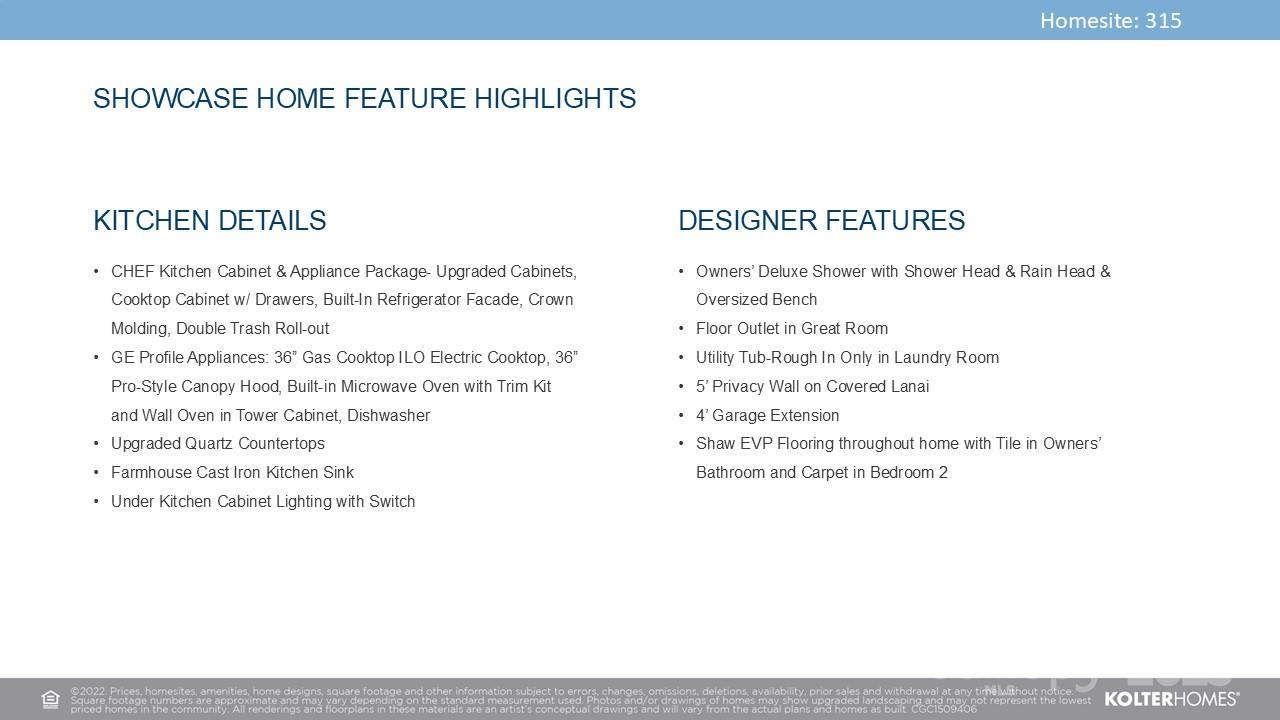 **NEW CONSTRUCTION** This 2 Bedroom, 2 Bath home with a versatile Flex Room and a spacious 2-Car garage is located just a short stroll from the community’s Amenity Center, picturesque nature trails, and a future Community Garden. Inside, the Owner’s Bathroom offers a luxurious daily experience with a rain head shower, standard head, and an oversized bench. The gourmet kitchen is a showpiece, fitted with quartz countertops, upgraded cabinetry, GE Profile appliances, a gas cooktop, and a farmhouse cast iron sink that adds a charming touch. Complete with under-cabinet lighting and a built-in refrigerator facade for sleek symmetry. The extended garage offers extra space for hobbies or storage, and the covered lanai has a 5-foot privacy wall inviting quiet moments outdoors. The backyard opens to a peaceful common area with no direct rear neighbors and newly planted trees that frame a natural, elevated landscape behind the home, enhancing privacy.