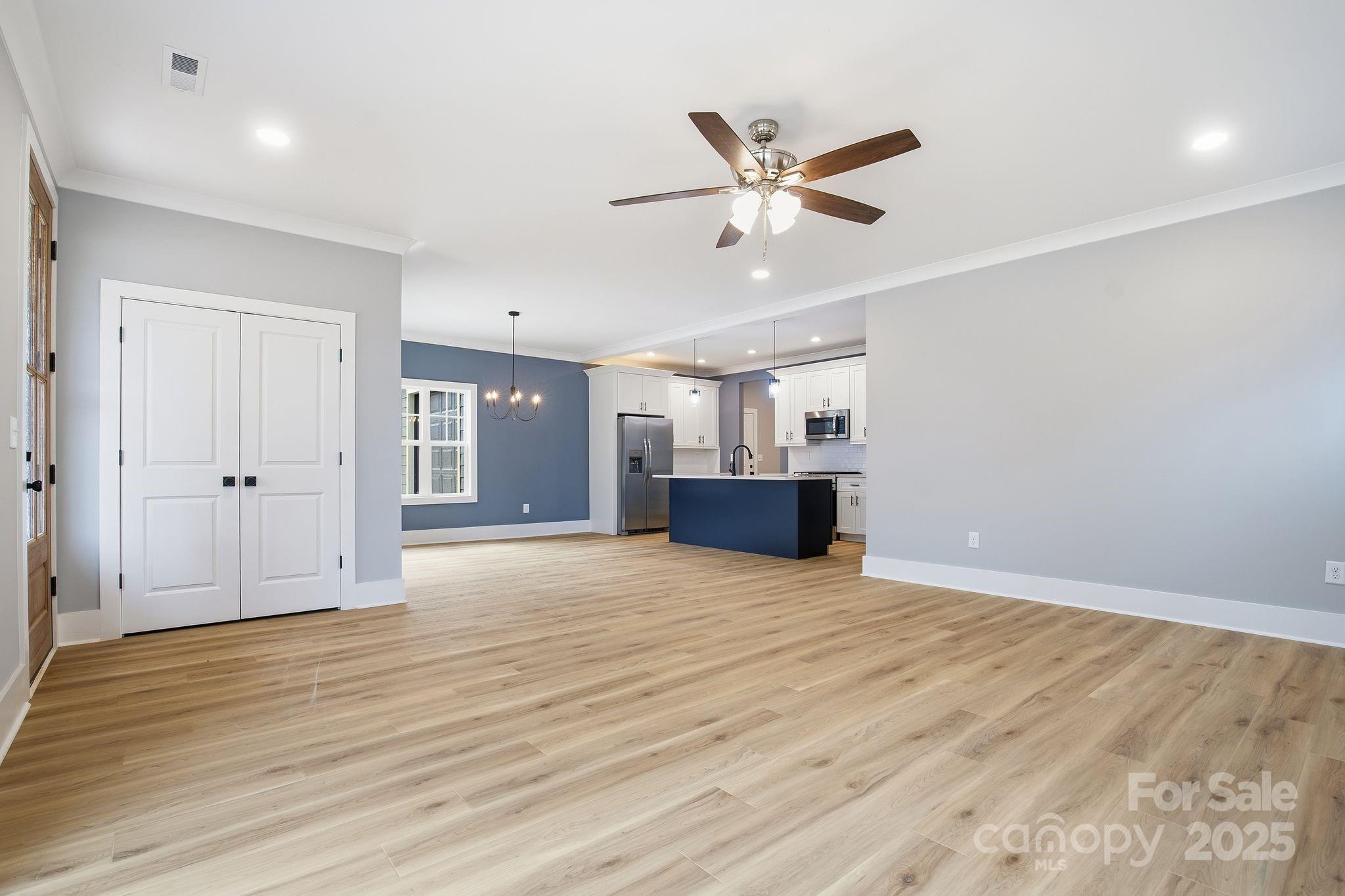 An open-concept layout that lives larger than its footprint. The family room, dining area, and kitchen flow seamlessly together—ideal for entertaining or everyday living. A cozy fireplace anchors the living room, while the kitchen features a spacious island. Perfect for casual dining and gathering.