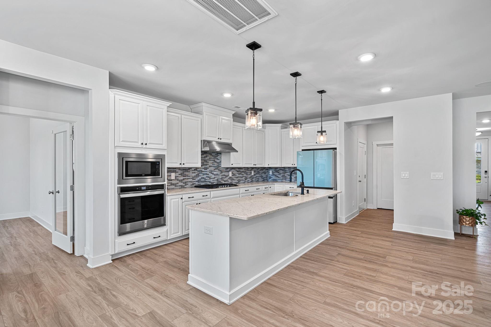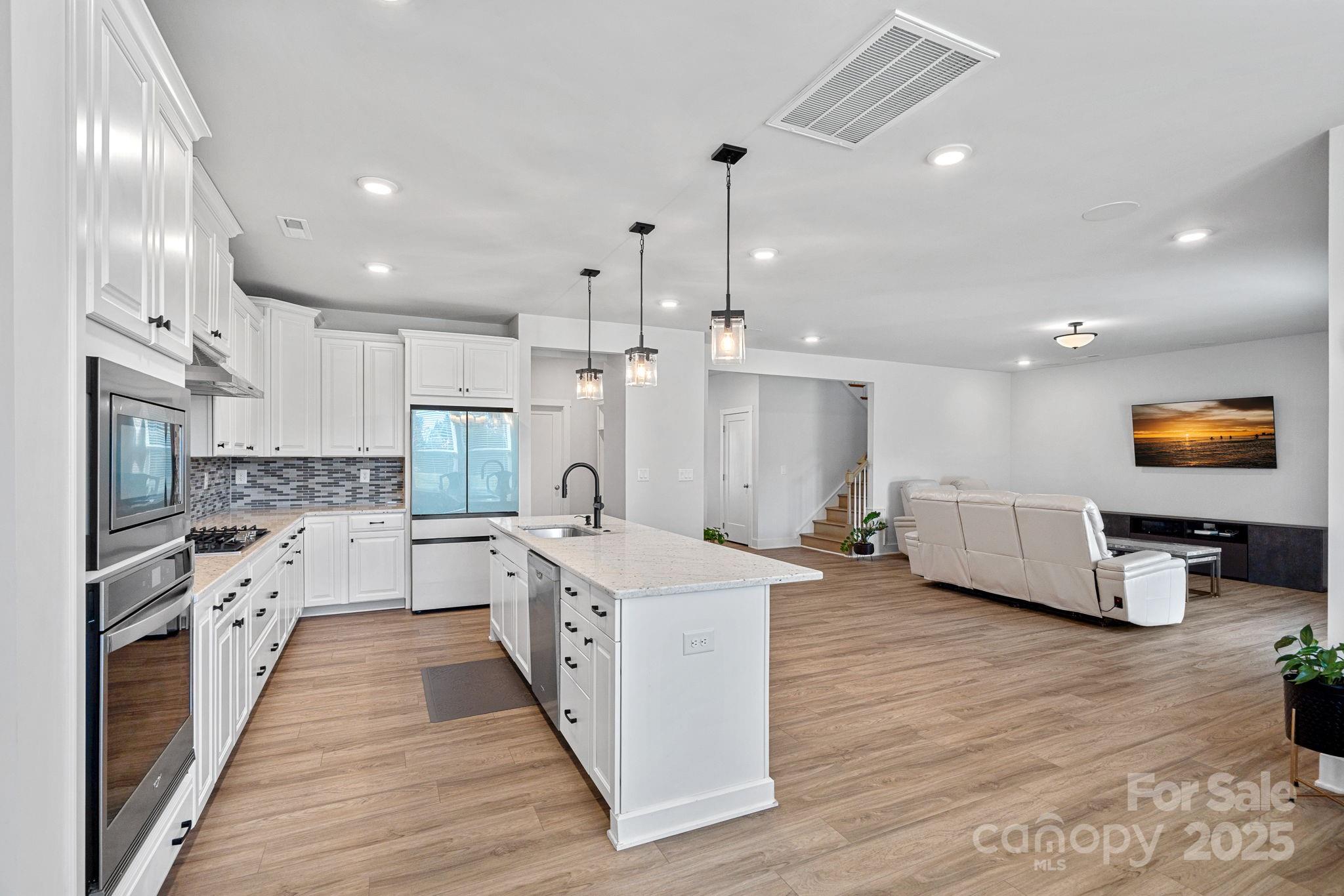 This beautifully crafted home offers a versatile main-level in-law suite—perfect for guests or multigenerational living. The elegant primary bedroom features a tray ceiling, dual walk-in closets, and a spa-like en-suite with a soaking tub and separate shower. The chef’s kitchen is a true centerpiece, boasting stainless steel appliances, an oversized island, and a built-in wine cooler—ideal for entertaining. The laundry room is conveniently located on the second floor for added functionality. Enjoy movie nights with the built-in 5.1 surround sound system, which conveys with the home. Step out back to a covered patio—perfect for relaxing or hosting guests. Located just minutes from Ballantyne, this home seamlessly blends comfort, style, and convenience.