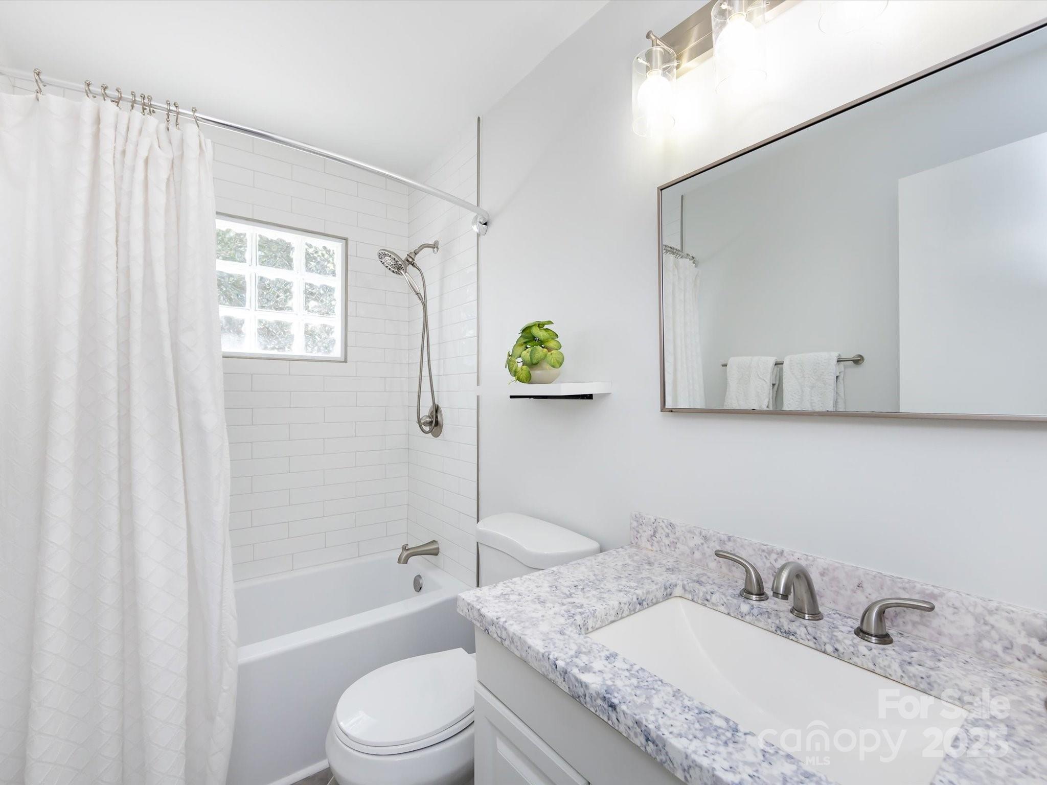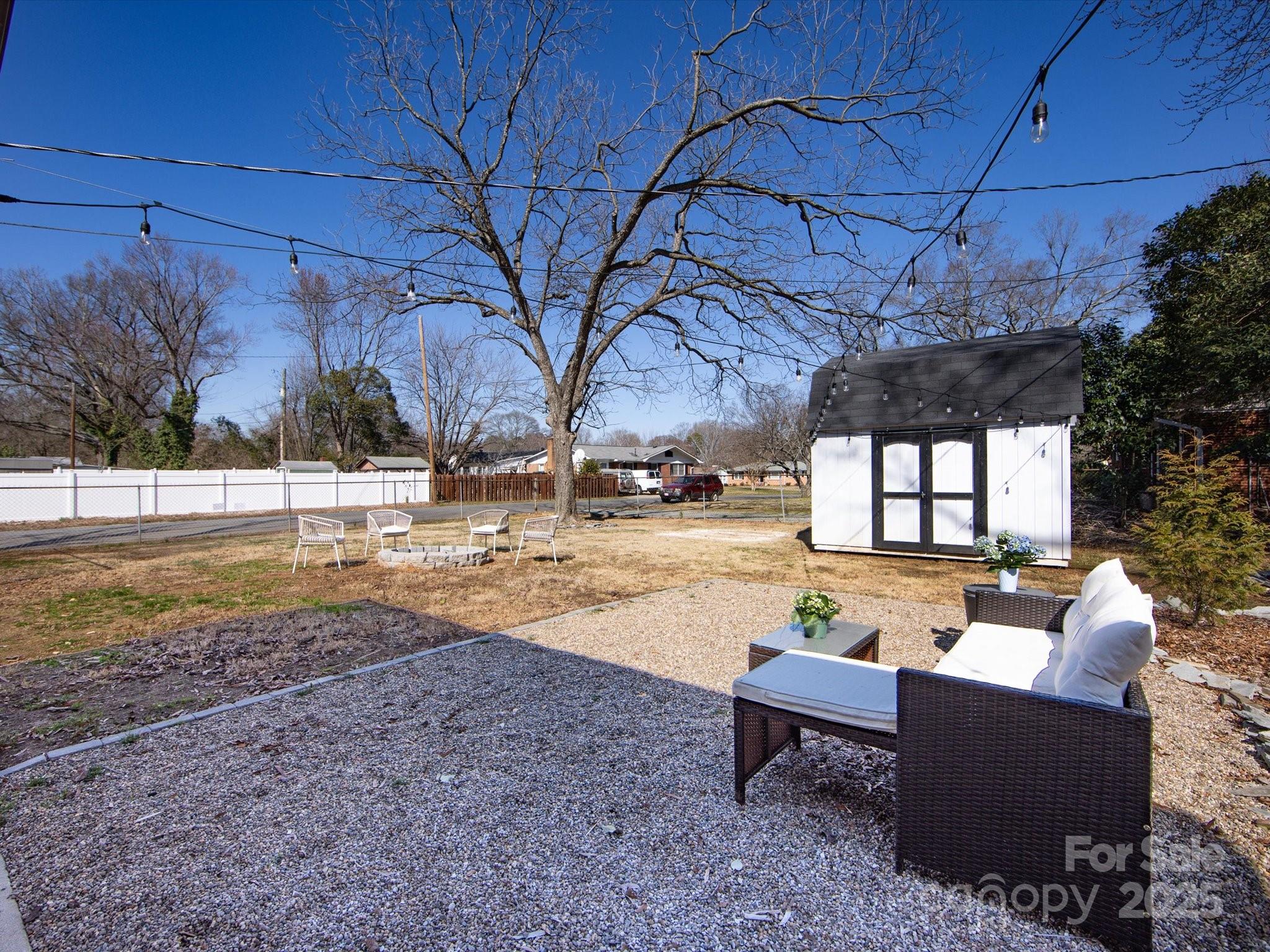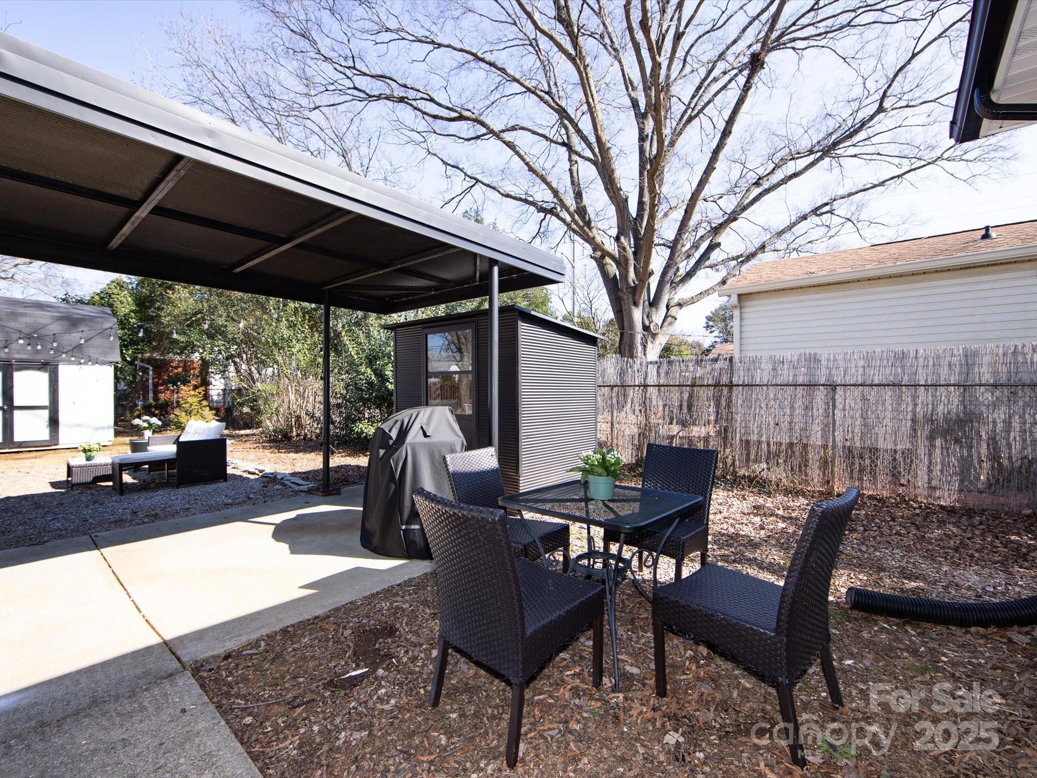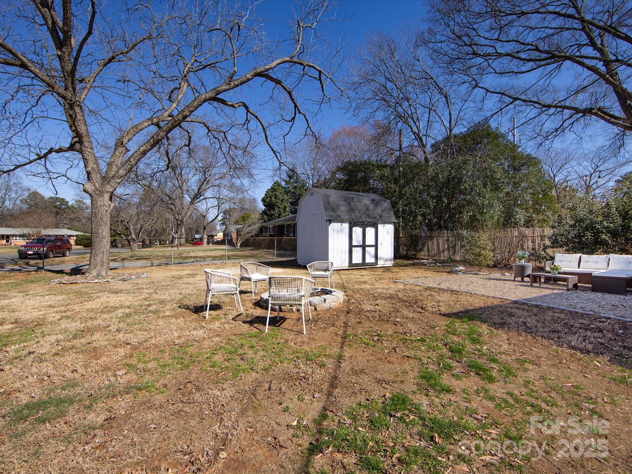 Newly Updated Ranch Home! Gorgeous painted brick exterior with stylish black finishes. Open floor plan with a renovated kitchen. Painted cabinets, tiled floor & backsplash, SS appliances, and granite counters. Separate laundry room. Three spacious bedrooms with one having an en-suite bathroom. Hall bathroom has a brand new tiled shower with new bath fixtures. Stylish vanity with a new mirror, lighting, and fan. Screened-in porch with an updated ceiling and painted floor. Incredible large and flat backyard that is fully fenced-in. String light covered area for entertaining, convenient car port, fire pit, and large storage shed. Extra parking on the driveway and ample street parking for visitors. New Roof (2025). Incredible location that is minutes away from 74, Uptown, Plaza Midwood, Cotswold Retail, Matthews, and Costco. Great value for a move-in ready home that is near the city.