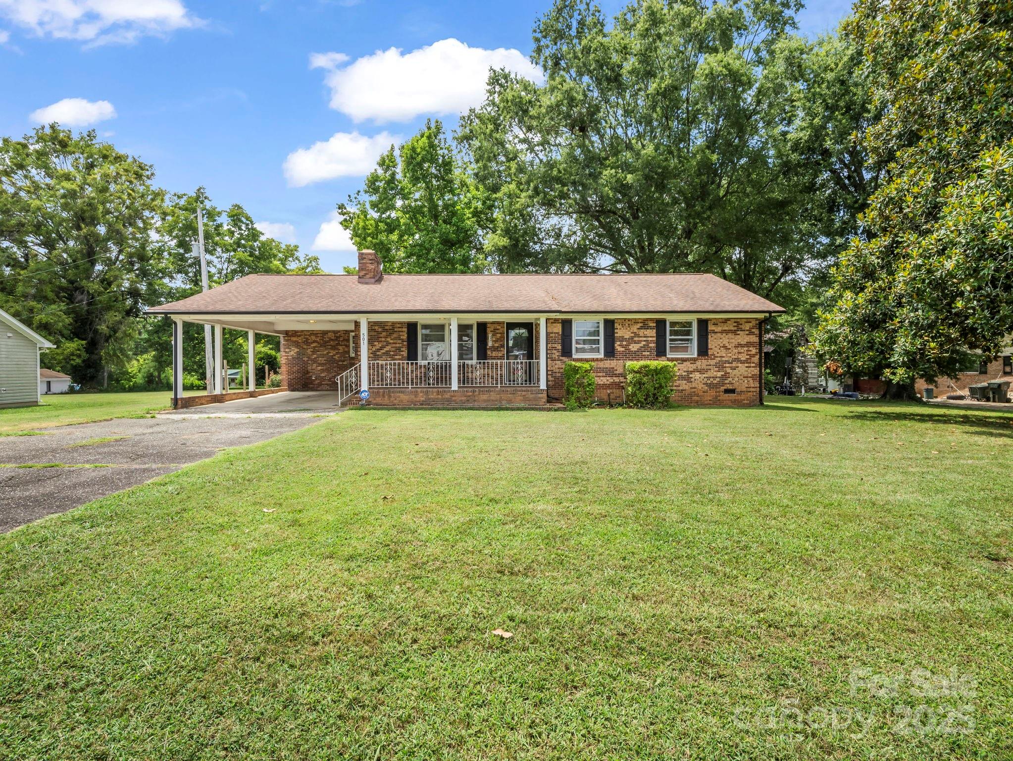Well-kept full brick home offering 3 bedrooms and 1.5 baths, nestled in a quiet setting with thoughtful updates throughout. Enjoy the convenience of a newly installed walk-in shower, a spacious laundry room with abundant storage and a utility sink, and a clean, well-maintained crawl space. The kitchen comes fully equipped with appliances, making move-in a breeze. Relax on the covered front porch or take advantage of the single carport with multiple driveway spaces for guests. A handy storage building in the backyard adds even more value to this solid, easy-to-maintain home. Convenient location just off Hwy 150 thoroughfare and 274 intersection.