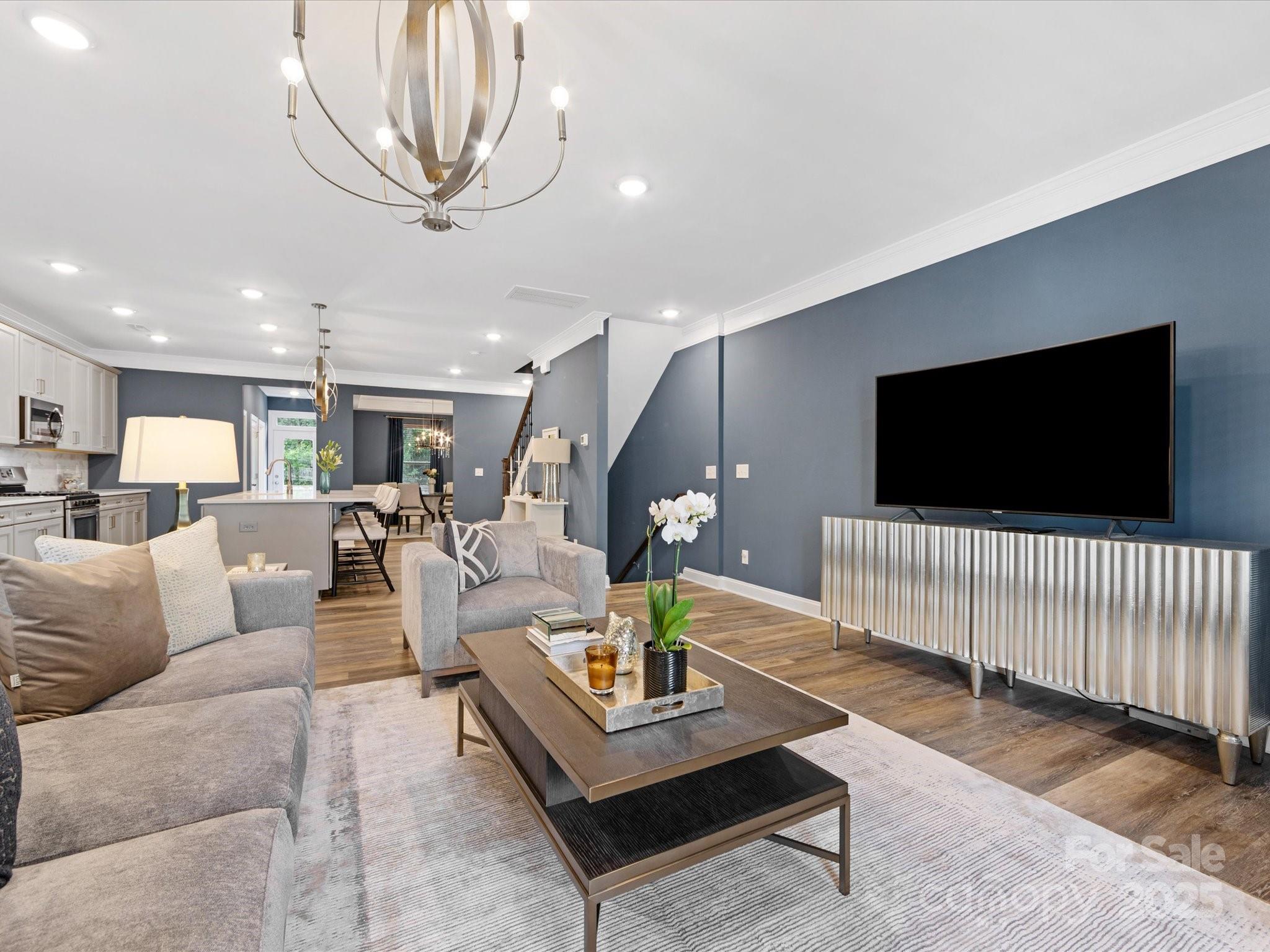 Beautifully designed three-story townhome in the heart of Research Park area. Featuring 4 bedrooms, 3.5 baths. Expansive floor plan lives like a single-family residence with the ease of townhome living. You are welcomed by a bright, open foyer adorned with elegant crown molding. The first-floor private guest suite w/full bath/walk-in closet, offers flexible use as a den, office or in-law suite. The second level showcases a seamless open Kitchen, dining, family room layout. Whether relaxing or entertaining, the spacious second-story deck overlooking lush, peaceful greenery, is your own private retreat in the city. Upstairs on the third level, you’ll find three additional bedrooms, including a generous primary suite, all offering abundant natural light and large closet spaces throughout.Perfect for multigenerational living or working from home, this townhome adapts to your lifestyle with ease. Walk to Trader Joe’s, Starbucks, Chipotle, Godavari, upcoming Shipley’s Donuts.