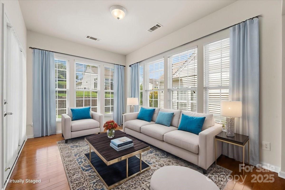 Immaculate, Well-Maintained, Copper Ridge home in Sun City Carolina Lakes that shows like a model! Natural light shines through the windows, which gleams off of the pre-finished wood flooring! Enjoy morning coffee from the comfort of the spacious sunroom! The kitchen features SS appliances, granite countertops, warm tile backsplash, & an angled breakfast bar that overlooks the spacious great room. The primary bedroom sits in the back of the home w/ an ensuite bathroom that offers a glass enclosed shower, dual sink vanity, sitting area, & a spacious walk-in closet with shelving. The guest bedroom & full hallway bathroom are perfect for overnight guests! There is also an office at the front of the home, which can be used for working from home, as a den, or as a hobby room. Enjoy your evening wine downs from the covered patio with extended paver patio out back. Additional storage in attic accessible via attic pull down in garage.