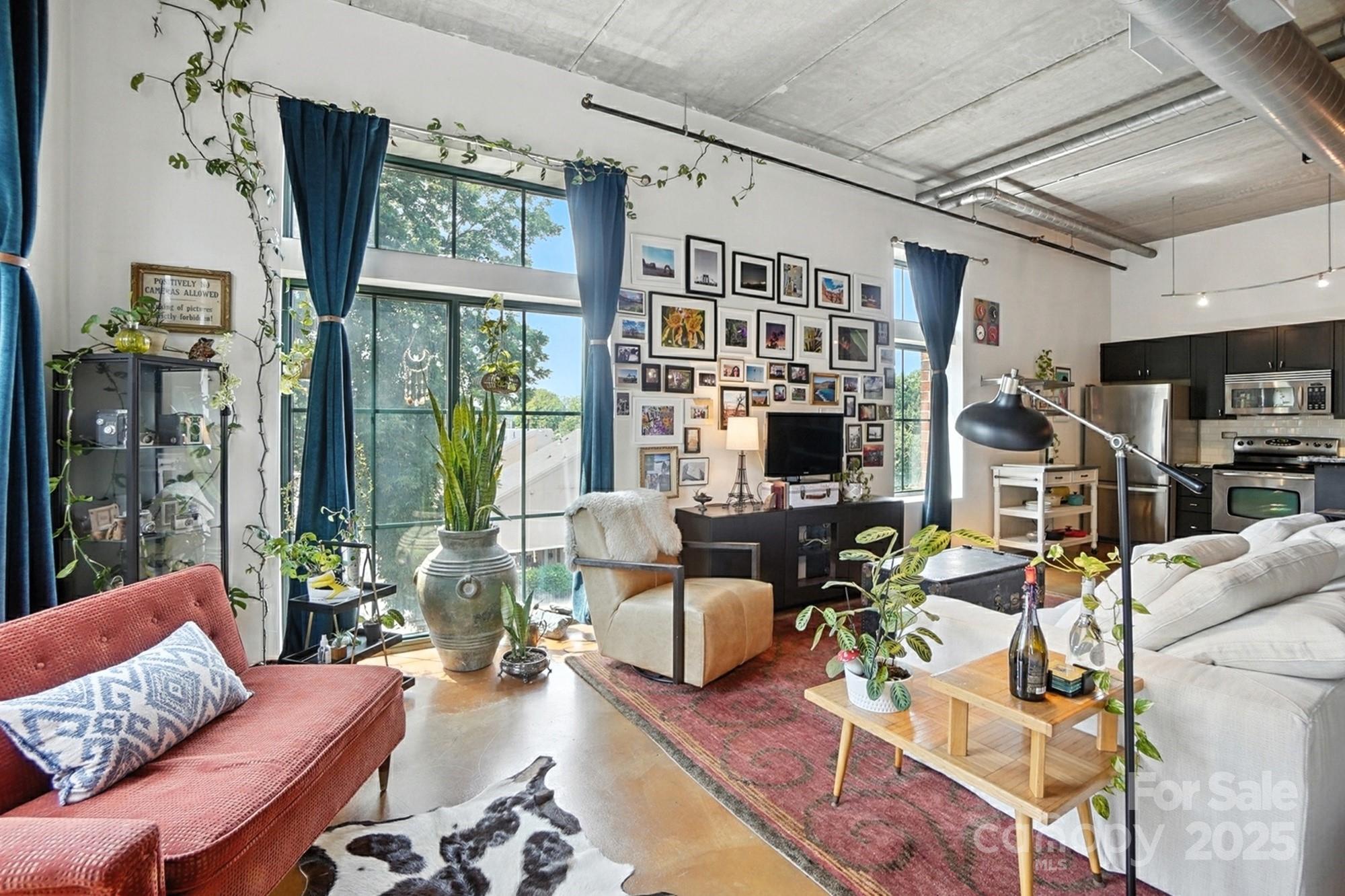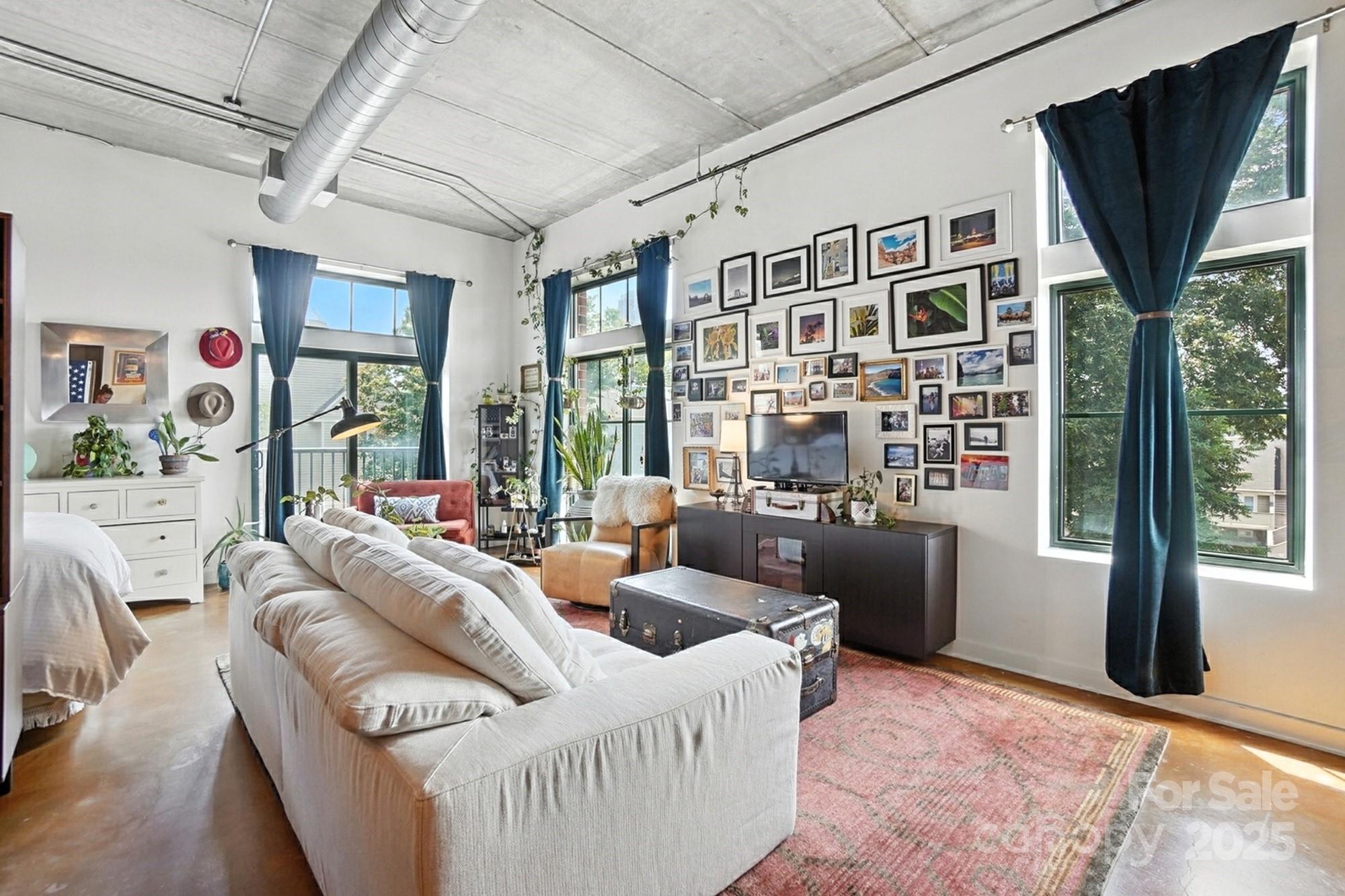 Seller is offering a 5K credit at closing to help lower the buyer's interest rate. Beautiful industrial-style condo w/ stunning skyline views! This 3rd-floor unit, situated on the southwest corner of the building, features windows along two walls for excellent natural lighting. The interior boasts impressive 13-foot ceilings with exposed brick walls and ductwork, complemented by polished concrete floors for easy maintenance.