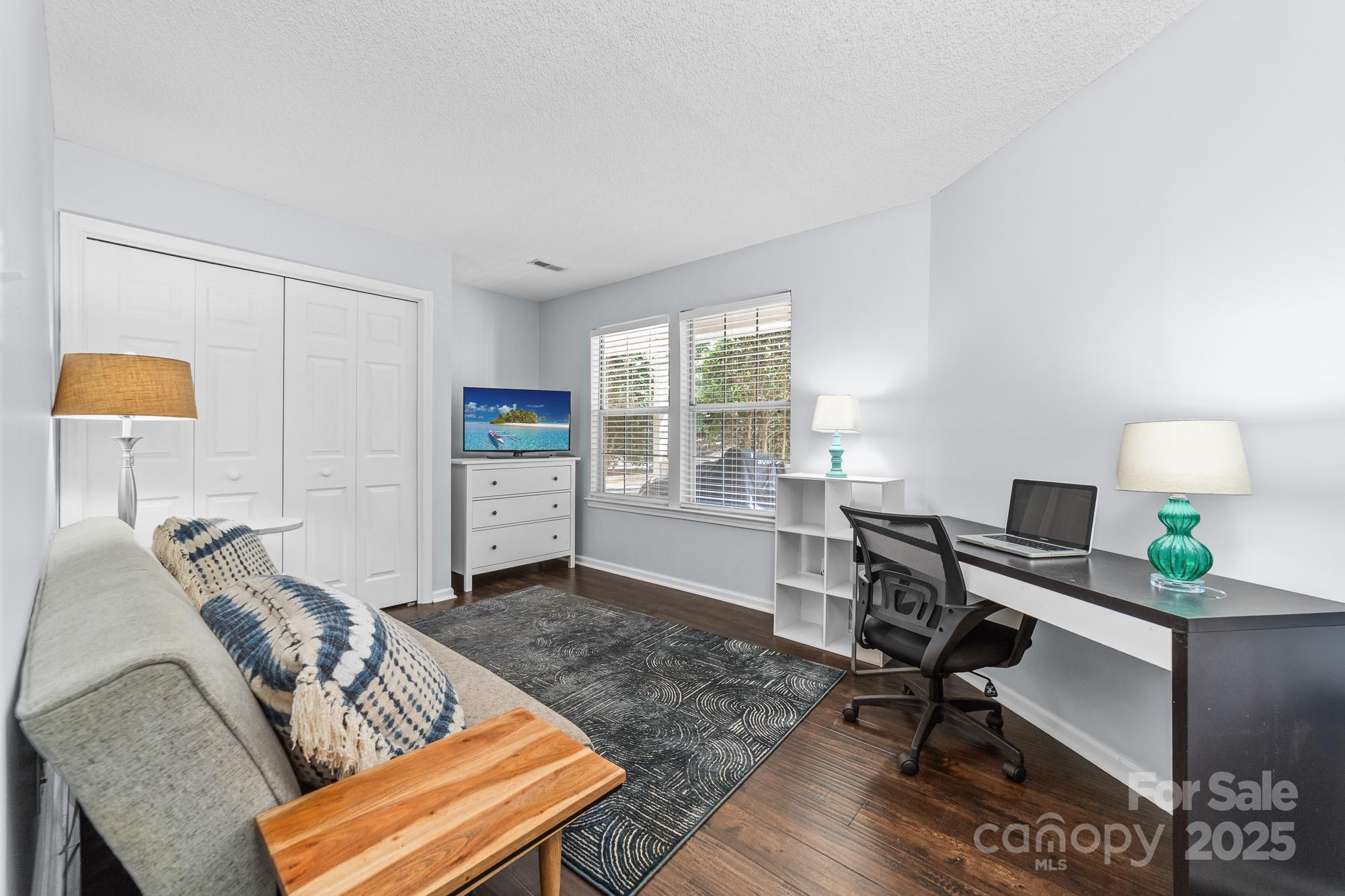Experience the tranquil atmosphere and natural wooded views from your 2-bedroom, 1-bathroom condo in Bennington Woods. You'll enjoy easy access to the Little Sugar Creek Greenway, as well as being close to the premier shopping and dining options in the South Park area. The unit has been updated and is freshly painted, making it move-in ready. If you need a home office, guest space, or a flexible room, the secondary bedroom is ideal for that purpose. Step outside to your covered rear deck, which includes an outdoor storage closet—the perfect place to relax and unwind. The neighborhood offers a swimming pool and direct access to the Greenway Trail for walking, running, and biking. The HOA fee includes water and trash services.