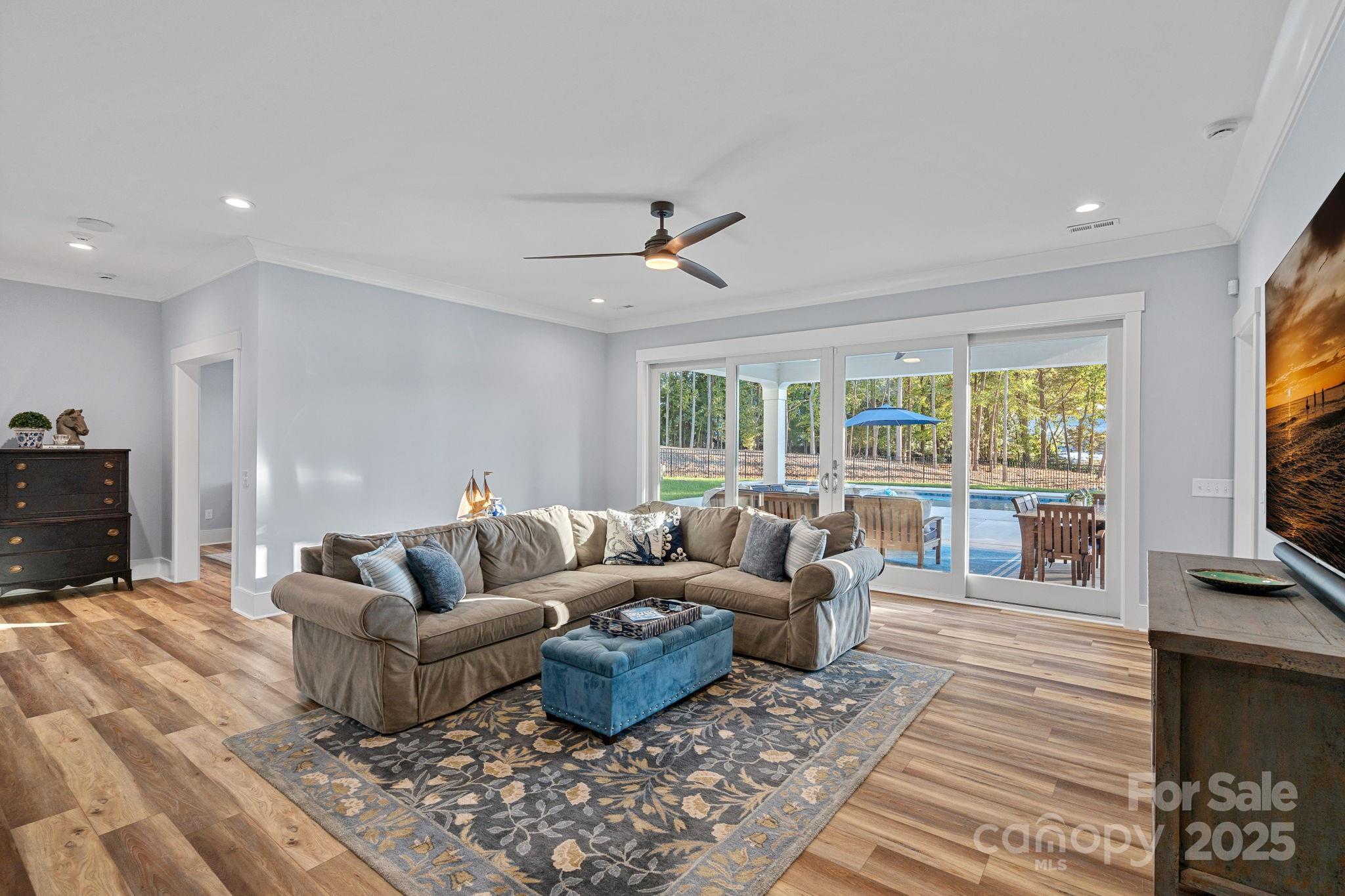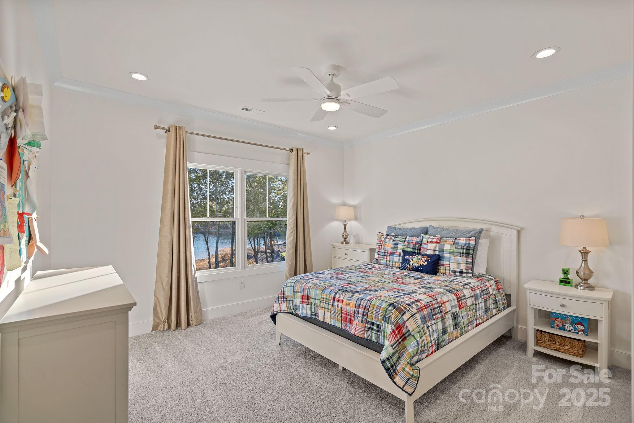 Main-Level Primary Suite offers a Spa-inspired bath with dual vanities, walk-in shower, and custom walk-in closet with built-in shelving and center island. 5 bedrooms, 4 full baths, 2 half baths. Upper level with 3 bedrooms, 2 baths, and 2 bonus rooms. Lake level features additional living area, office, gym/rec room, guest suite, and covered walk-out porch. Hardboard siding exterior, architectural shingle & metal roof accents, hardwoods, custom tile, designer lighting, built-ins, coffered ceilings, and extensive storage with walk-in attic and basement areas. Zoned HVAC, dual tankless water heaters, two Generac generators, smart-home integration, laundry chute serving all levels, and oversized 3-car garage with epoxy flooring and keypad entry. Access to Trump National Golf Club Charlotte including golf, tennis, fitness center, dining, pool, playgrounds, and walking trails. HOA-managed neighborhood with sidewalks, streetlights, and enhanced security features. This estate delivers an unmatched combination of craftsmanship, functionality, and lakefront living in one of Lake Norman’s most sought-after communities.