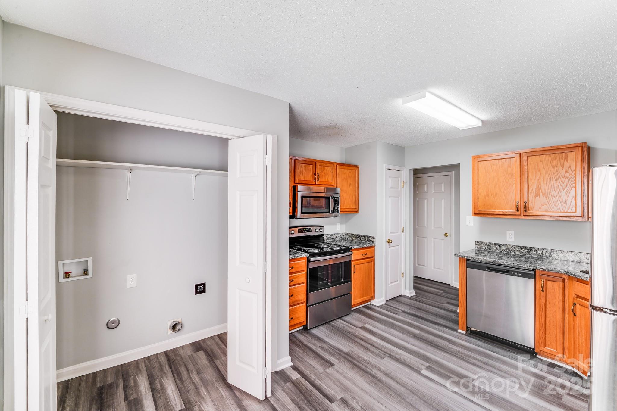 Introducing a light-filled home in a convenient Charlotte location. This 2-story home features 3 beds and 2.5 baths. Its large windows allow sunlight to beam throughout, creating an inviting and airy atmosphere. The kitchen is equipped with granite countertops, stainless steel appliances, and plenty of cabinets for storage. The spacious primary suite features a walk-in closet and an ensuite bath with a dual vanity.