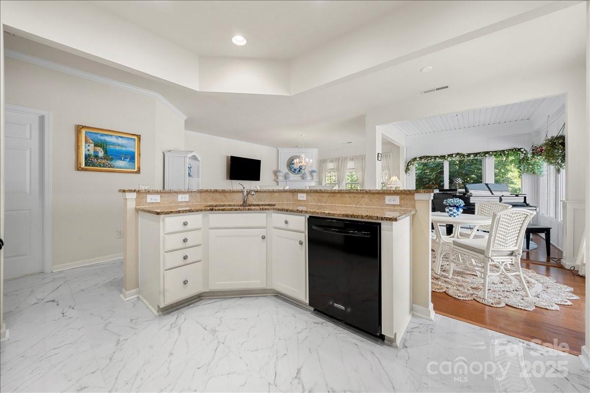 Fall in love with this charming ranch home in the highly desired Bel Air community of Carolina Lakes in Indian Land. SC Thoughtfully designed and beautifully maintained, this 2-bedroom, 2-bath gem includes a versatile office with elegant French doors—ideal for a guest room or creative space. From the custom moldings and wainscoting to the graceful tray ceilings, every detail exudes warmth and character. The updated kitchen shines with granite countertops, porcelain tile, recessed lighting, and freshly painted cabinets. Gather in the spacious great room by the marble gas fireplace or relax in the bright sunroom area overlooking a private, beautifully landscaped garden with a custom brick paver patio and mature fig tree. Nestled among lush woods yet minutes from top-rated schools, shopping, and dining—this home offers the perfect blend of comfort, style, and serenity. TowneBank 2-1 rate buy-down available for qualified buyers!