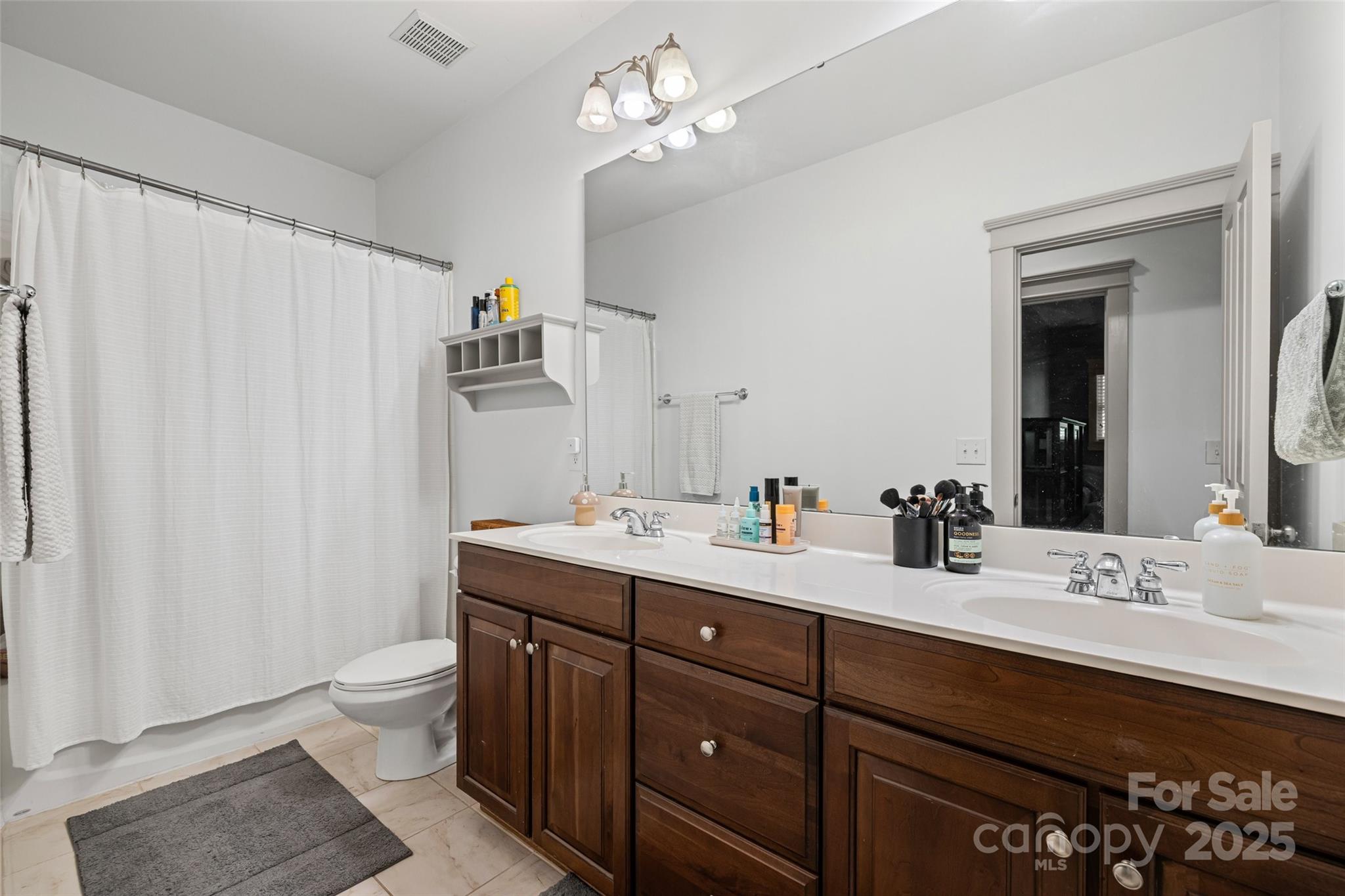 Upstairs are four bedrooms (one without a closet), a full bath with double sinks, and a large bonus room that can be used as a playroom, media room, home gym, or flex space.
