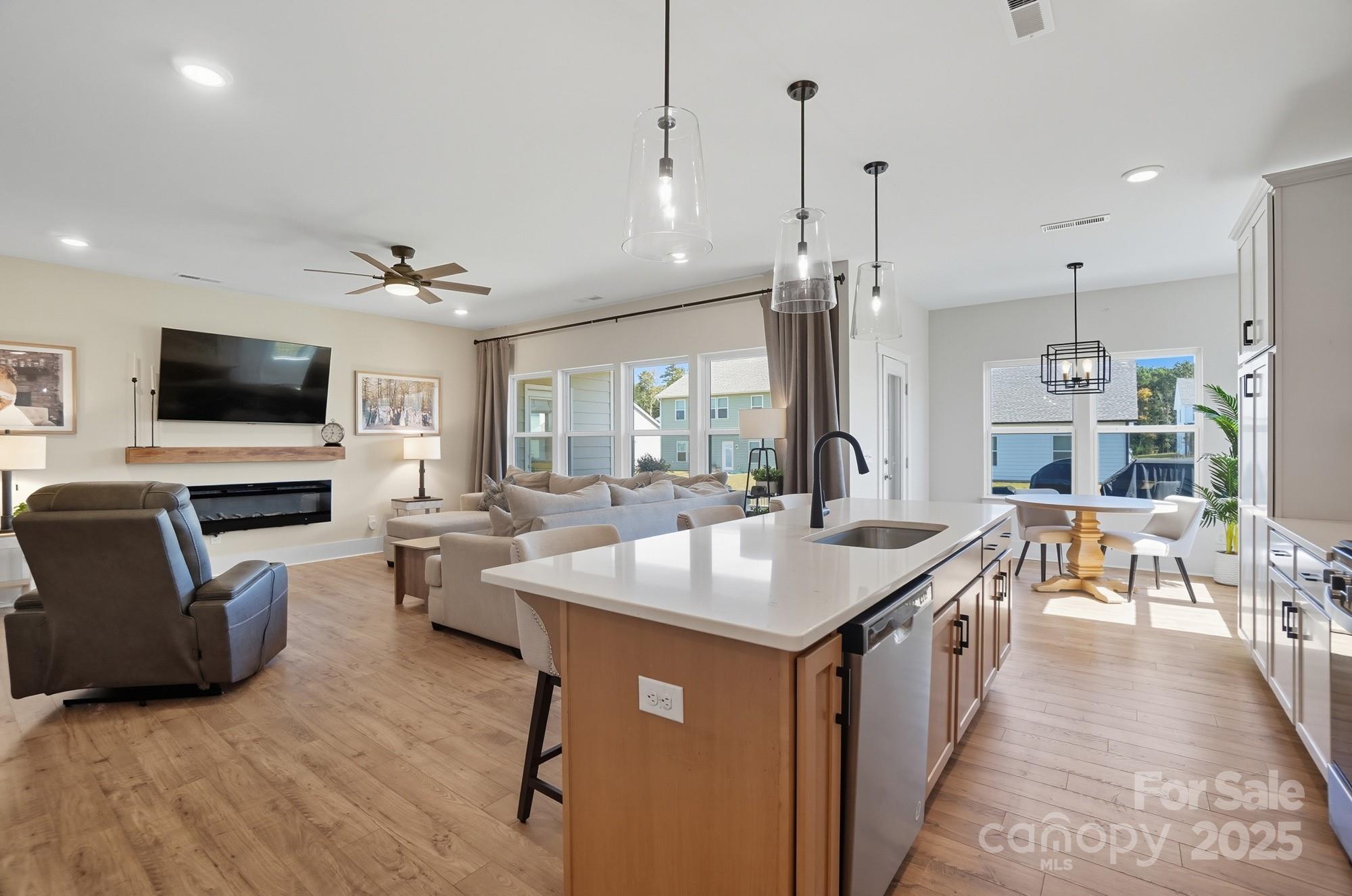 Welcome to Stonebridge Fairways, where resort-style living and holiday gatherings come together beautifully! This stunning 2-year-old home offers the ease of single-story living and an open, airy layout perfect for entertaining this season. Picture your guests gathered around the oversized kitchen island, laughter filling the air as dinner simmers on the stove. Cozy up by the fireplace for movie nights or host festive celebrations that flow seamlessly from the kitchen to the spacious living area. The primary suite is your peaceful retreat after the festivities, complete with a sunlit sitting room ideal for morning coffee or quiet reflection. Step outside to a fenced backyard ready for games, pets, or a holiday cookout, and enjoy the convenience of a widened driveway and 3-car garage for visiting guests. With world-class community amenities - pool, cabana, tennis and pickleball courts, fitness center, and one of the Top 100 golf courses in the Carolinas - this neighborhood shines year-round. Located in sought-after Union County schools and just 25 minutes from Uptown Charlotte, this home is move-in ready so you can celebrate the holidays in style. Schedule your showing today and make this season one to remember!