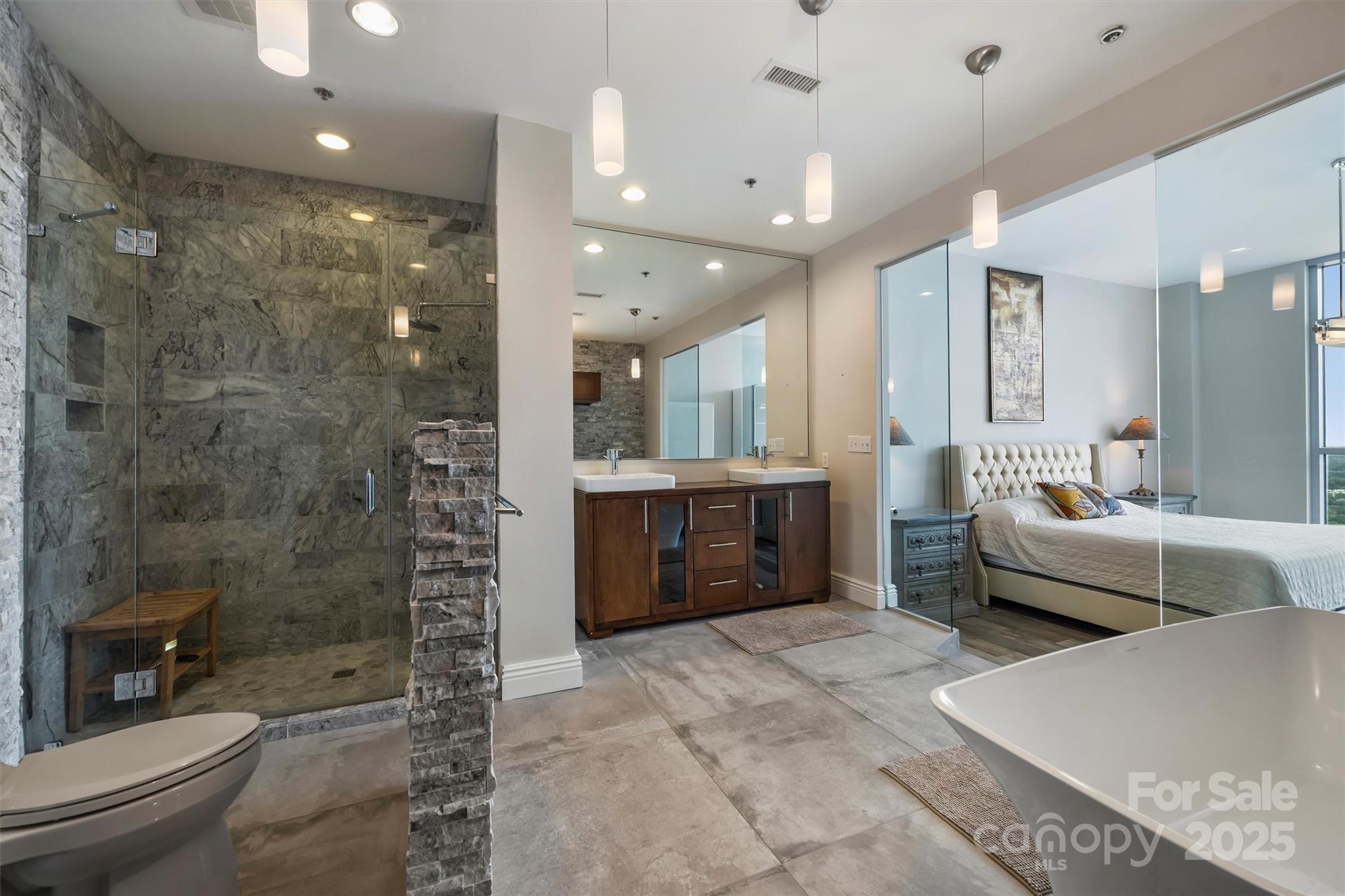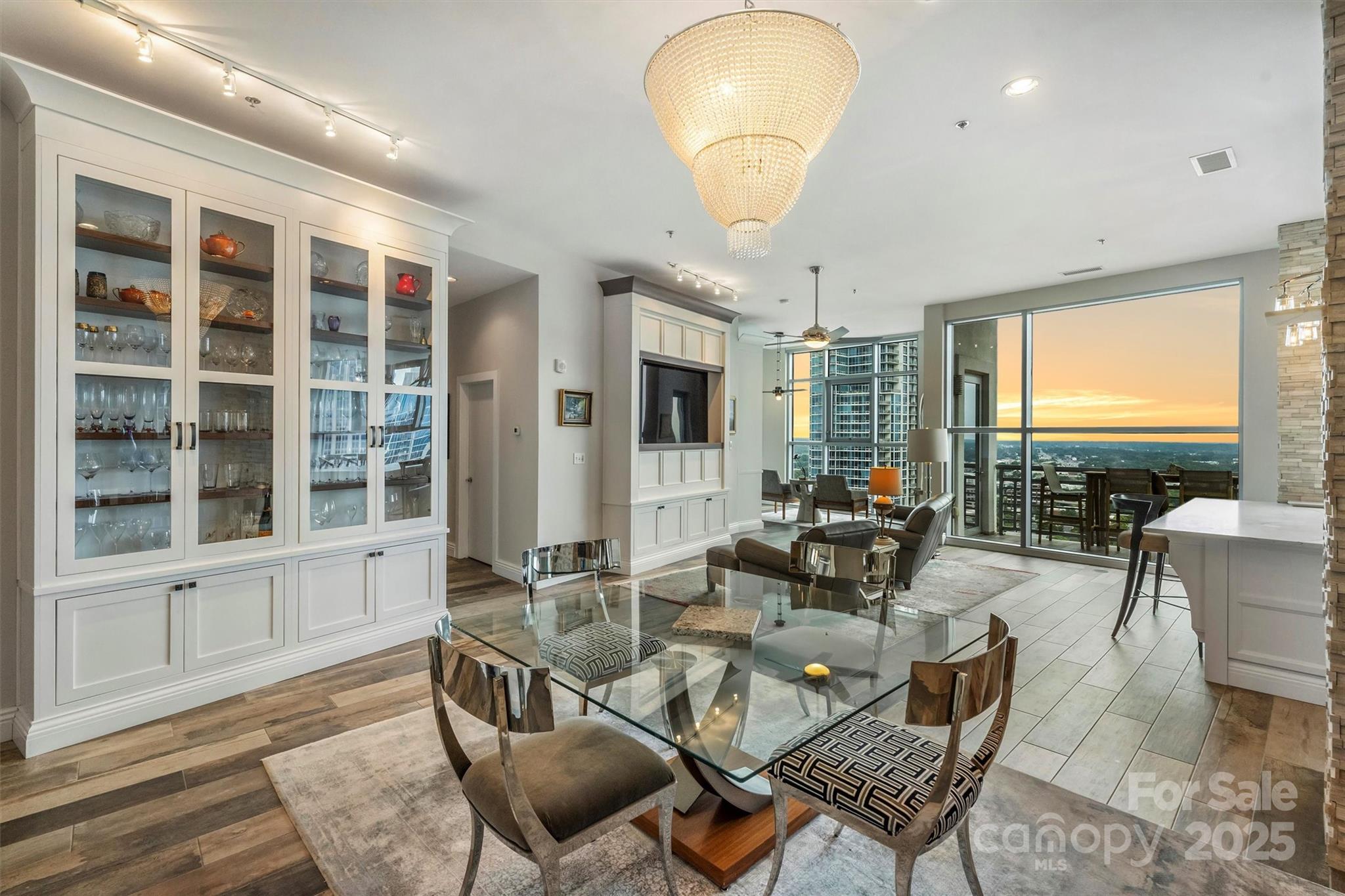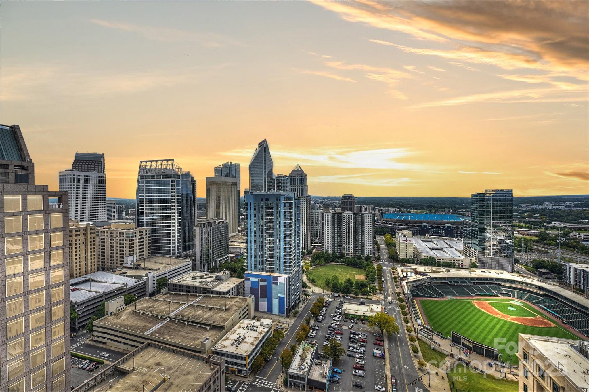 Perched on the 27th floor, this condo offers a rare 270-degree panoramic view that captures the Charlotte skyline, the mountains to the north, and direct sightlines to Truist Field and Bank of America Stadium to the south. Featuring soaring ceilings and floor-to-ceiling windows, this 4-bedroom, 5 full-bath residence was designed for both everyday luxury living and elevated entertaining. With designer finishes and fixtures that were curated throughout with no detail overlooked this residence seamlessly blends modern luxury with architectural sophistication—an offering that is truly irreplaceable in Charlotte’s current market. There are two expansive balconies, a primary suite with marble-clad spa bathroom, custom personal gym, and a chef’s kitchen with dual islands, Wolf and Sub-Zero appliances, custom cabinetry, quartz and granite countertops. This condo also offers FIVE deeded, secure parking spaces and an additional private storage room.