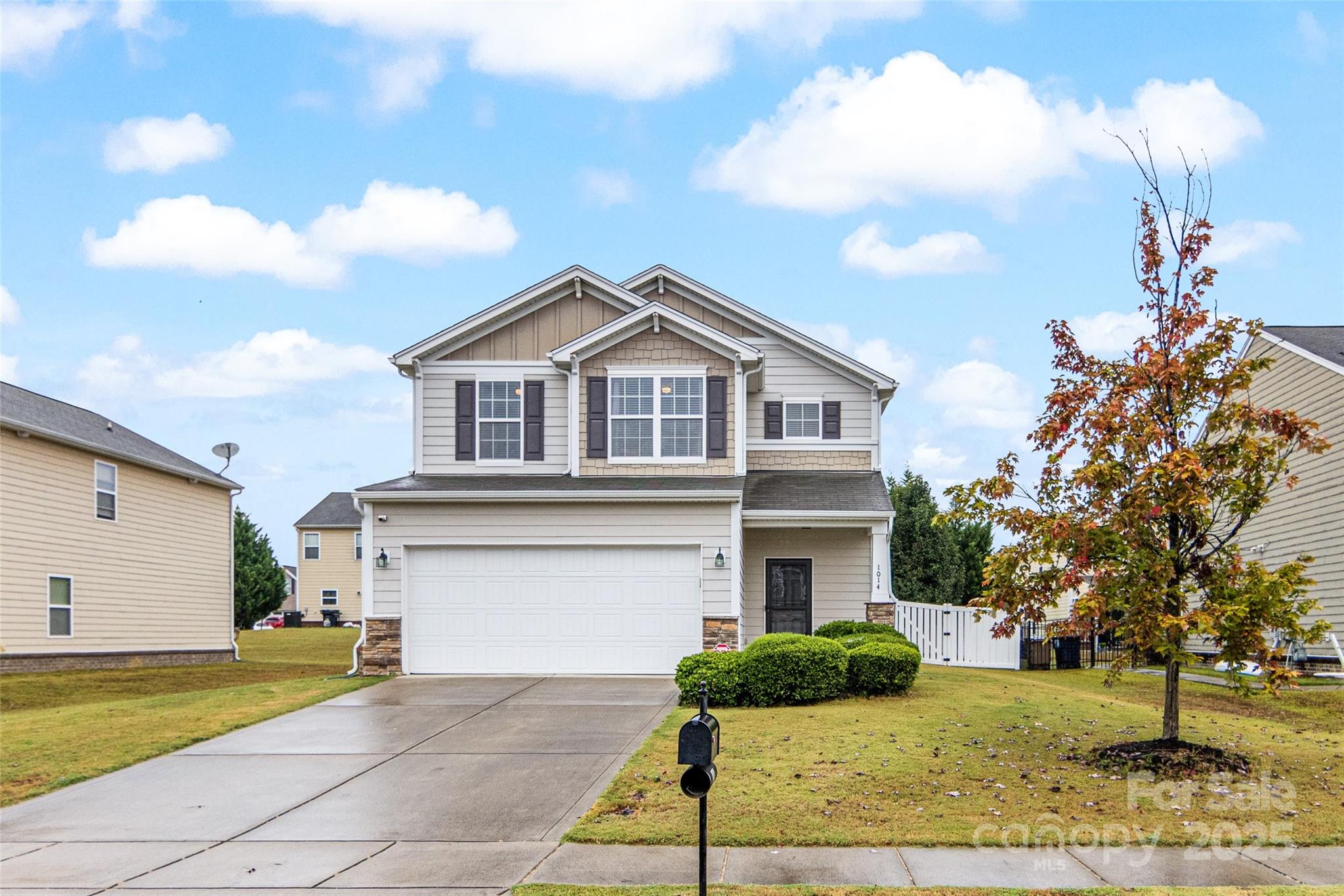 Rarely on the market, this is your chance for a sought after 3-bedroom home in Fieldstone Farms. Welcome to 1014 Garden Web Rd, this fantastic community includes a pool, clubhouse, playground and sports field. This updated and well-maintained home features a bright transitional floorplan with luxury vinyl plank flooring throughout the first and second floors. The open layout is perfect for modern living with seamless flow between living, dining and kitchen spaces. The dining room showcases an accent wall and new light fixture. Upstairs, the spacious primary suite with designer paint includes an updated primary bath with tile surround in the oversized shower, dual vanity with updated mirror, lighting and LVP flooring. The two secondary bedrooms and hall bath are all conveniently located off of a multi-purpose large loft/bonus area. This area is great for a playroom, workout space, home office, the possibilities are endless... Enjoy the private, fenced back yard with a patio-ideal for outdoor entertaining or relaxing. Neutral paint, newer flooring, move-in ready! Come check it out!