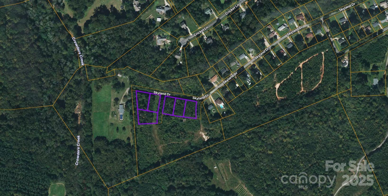 Six adjoining residential lots now available in a quiet cul-de-sac setting on Skyland Drive in Gastonia! These parcels offer a unique opportunity for builders or families looking to create a small community or private estate. Enjoy the privacy of wooded surroundings with Crowders Creek nearby, while still being just minutes from shopping, dining, and I-85 access. Each lot provides space for a single-family home, with nearby neighborhoods showing strong demand and established residences. Whether you’re looking to build your dream home or invest in multiple homesites, these lots provide excellent potential in a growing area of Gaston County. Kindly note that there is no water and an easement for the sewer would be the most realistic approach to gain access to build on property.
