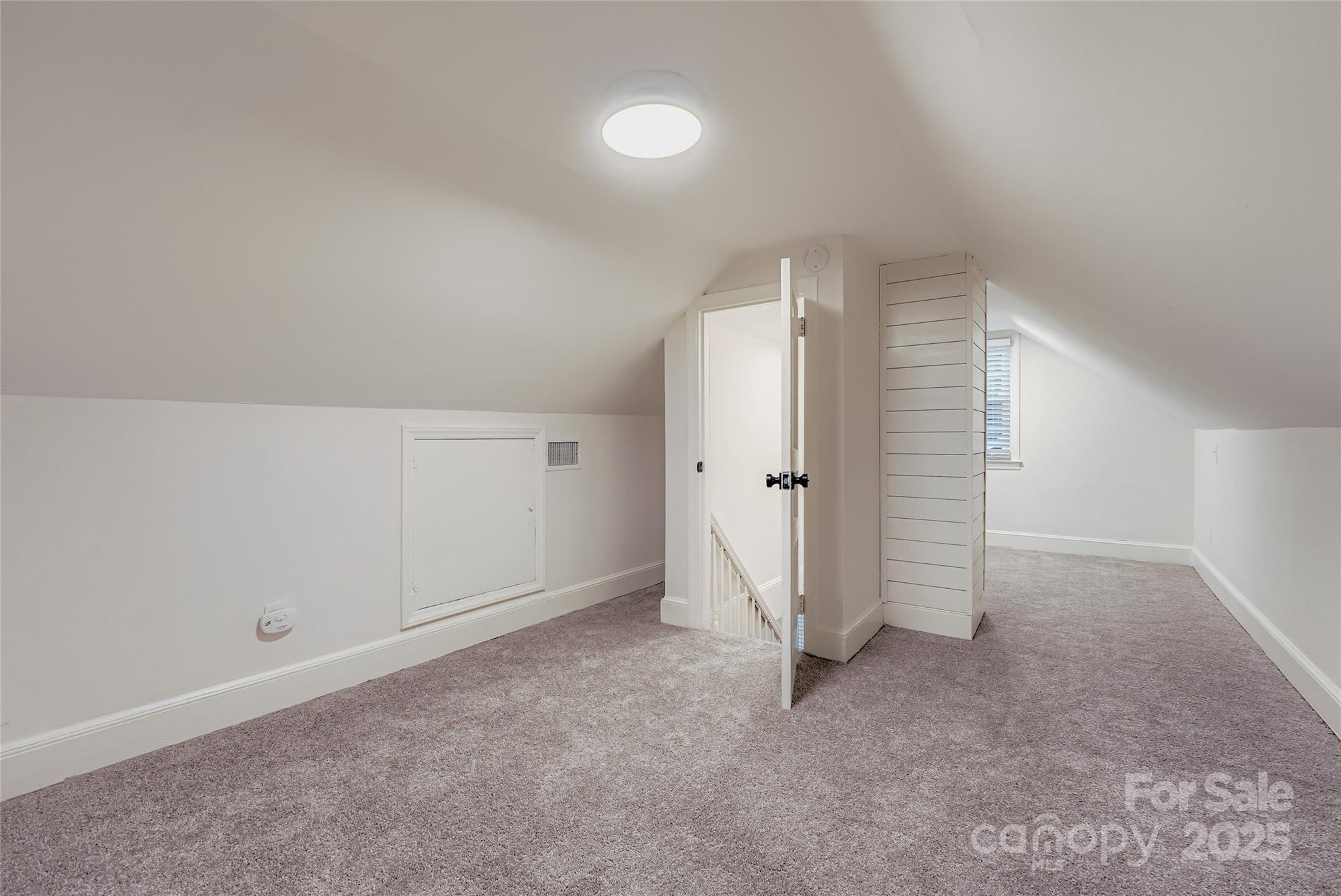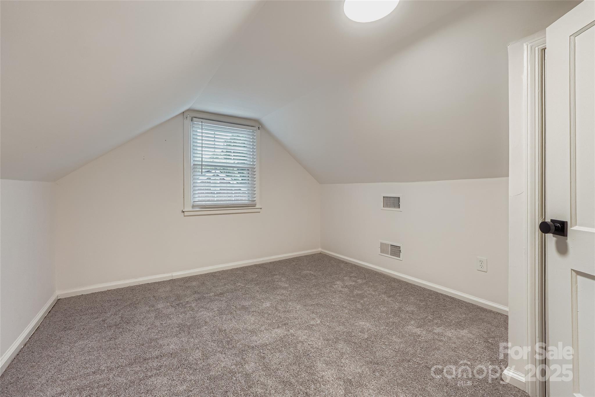 The second level has 377 sq ft of heated & cooled space, used as a bedroom and a bonus room. Your new home has tons of SPACE. Charming Plaza Acres Bungalow Near Plaza Midwood & NoDa! Step onto the charming full-brick front porch, complete with tiled flooring and a classic swing—an ideal spot to savor your morning coffee while overlooking the tree-lined street. Perched above the road, the home offers long, open sightlines and a welcoming vantage point. This 1950s bungalow blends original charm with thoughtful updates, offering hardwood floors on the main level, fresh paint, and new carpet upstairs. Inside, the living room features wood flooring, a wood-burning fireplace, and an archway entry to the bright, sunny dining area, ideal for entertaining. The updated kitchen features quartz countertops, gray cabinetry, a walnut butcher-block island with modern pendant lighting, tile flooring, and two sunny windows. The home features two bedrooms on the main floor: one with a built-in wardrobe, ideal for a nursery or office, and another larger room that was used as a bedroom with a double-door closet. (Note: MLS rules will not allow the Upstairs room to be counted as a bedroom due to the ceiling height.) Additionally, it includes a tiled full bath with a cast-iron tub and a white vanity. A stackable washer/dryer closet offers convenience, while new lighting fixtures throughout add a touch of style. Upstairs, you’ll find a loft and a spacious bedroom with new carpet. The home has a new roof, a newer electrical panel with extra space to serve a future addition, replaced the original ductwork with all-new ductwork downstairs and upstairs, and sealed the crawl space for added comfort and energy-efficient vinyl windows. Enjoy outdoor living with a spacious back patio, a fenced yard perfect for pets, and an oversized storage building ideal for hobbies or projects. The shaded front yard offers cool relief on warm summer days, while the sunny backyard is a gardener’s dream—ready for growing vegetables or creating your own green retreat. Ideally located just two streets over from NODA, less than a mile from the Sugar Creek Light Rail, Divine Barrell Brewing, Great Wagon Road Distilling, Deejai Noodle Bar, Mattie’s Diner, and Food Lion—with a bus stop just 0.1 miles away, and only 0.4 miles from North Charlotte Park’s playground. This home is situated near significant investments along Sugar Creek and the Blue Line Extension, yet far enough away to enjoy a peaceful neighborhood atmosphere. Easy access to I-85, I-77, I-277, Uptown, and the University area makes commuting a breeze. Don’t miss this move-in ready bungalow combining location, updates, and classic character in the heart of one of Charlotte’s most vibrant communities! Note: the second floor has a maximum ceiling height of 6.67 feet. Per NCREC residential square footage guidelines, a ceiling height of at least 7 feet is required (the 377 sq ft of heated & cooled space on the second floor is not added to the total heated sq ft).