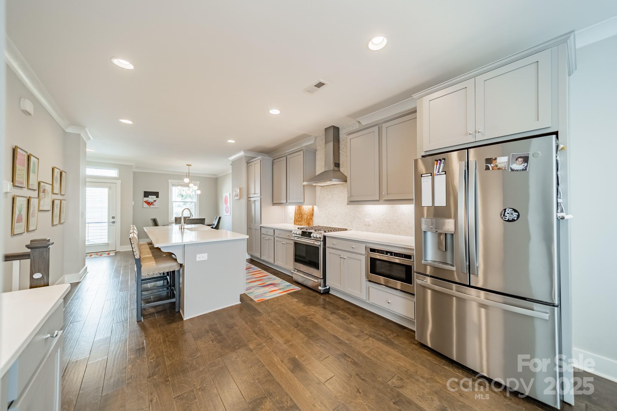 The main level is designed for modern living, showcasing a light-filled open floor plan and a chef-friendly kitchen. The sprawling Quartz countertop island is the heart of the home, offering ample room for cooking, dining, and socializing. Upstairs, the primary bedroom provides a luxurious retreat with a beautifully appointed, spacious en-suite bathroom and generous walk-in closet. Additional features include a 2-car garage and a convenient drop zone, off the garage entry.