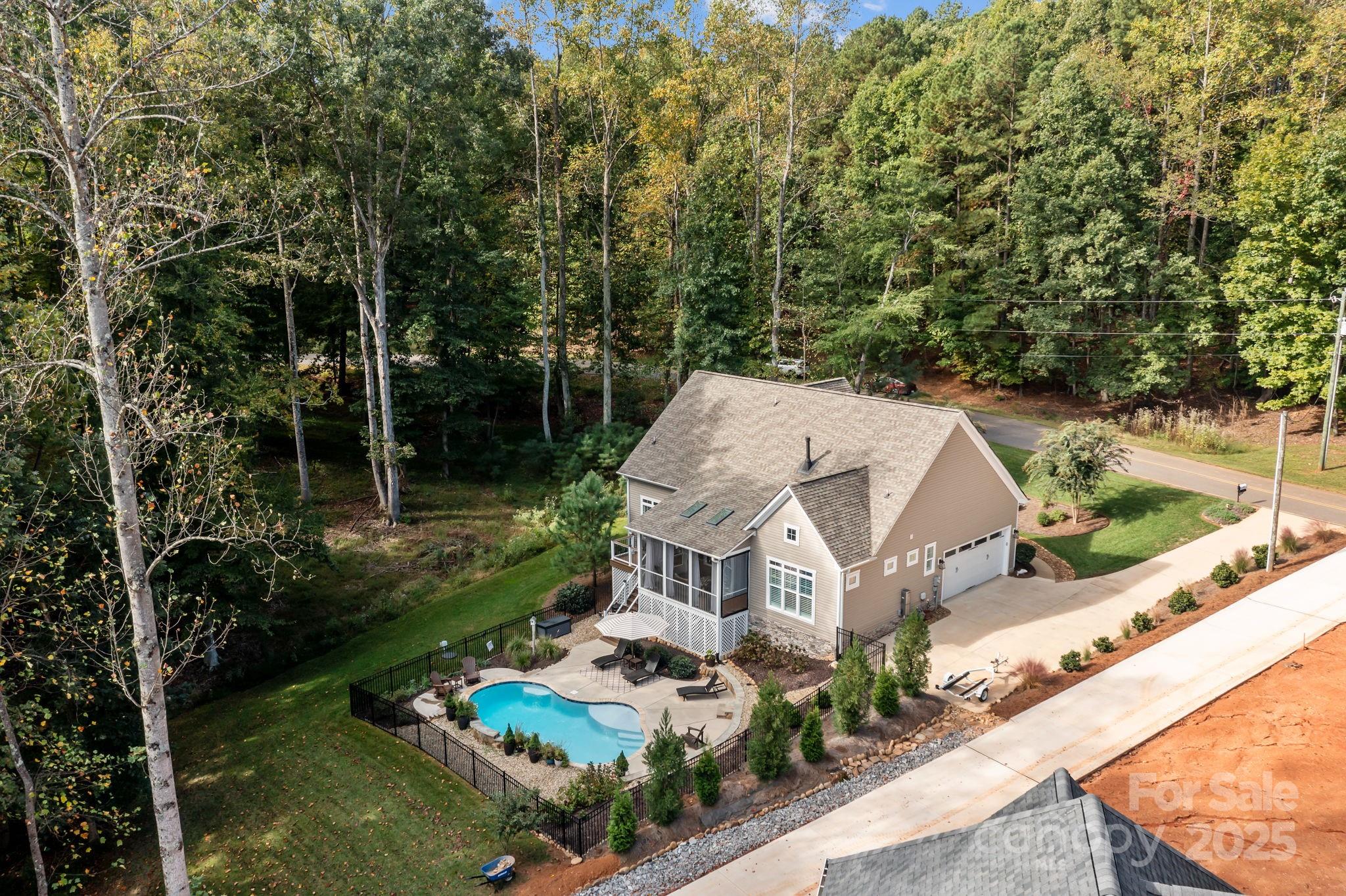 Leave the city behind and discover your peaceful escape in this immaculate 3 bedroom, 3 bath home. Graced by nature's backdrop and the beauty of Lake Norman, this custom-built home features vaulted ceilings and large windows that frame a view of the inground pool with a charming waterfall feature. Imagine yourself relaxing on the back deck or lounging by the pool enjoying the stunning natural landscape and view of the lake. There is space along the backyard shoreline to launch a kayak and float your cares away. Inside, the home offers elegant charm, with a cozy fireplace in the great room, a lovely main level primary suite, as well as a main level guest bedroom and full bath. Off of the welcoming foyer, you will also find a private office. The acre lot offers a blank canvas for a custom garden or perhaps additional outdoor entertaining space. This home is more than just a place to live; it's a quiet promise of a more tranquil life. Come visit today.
