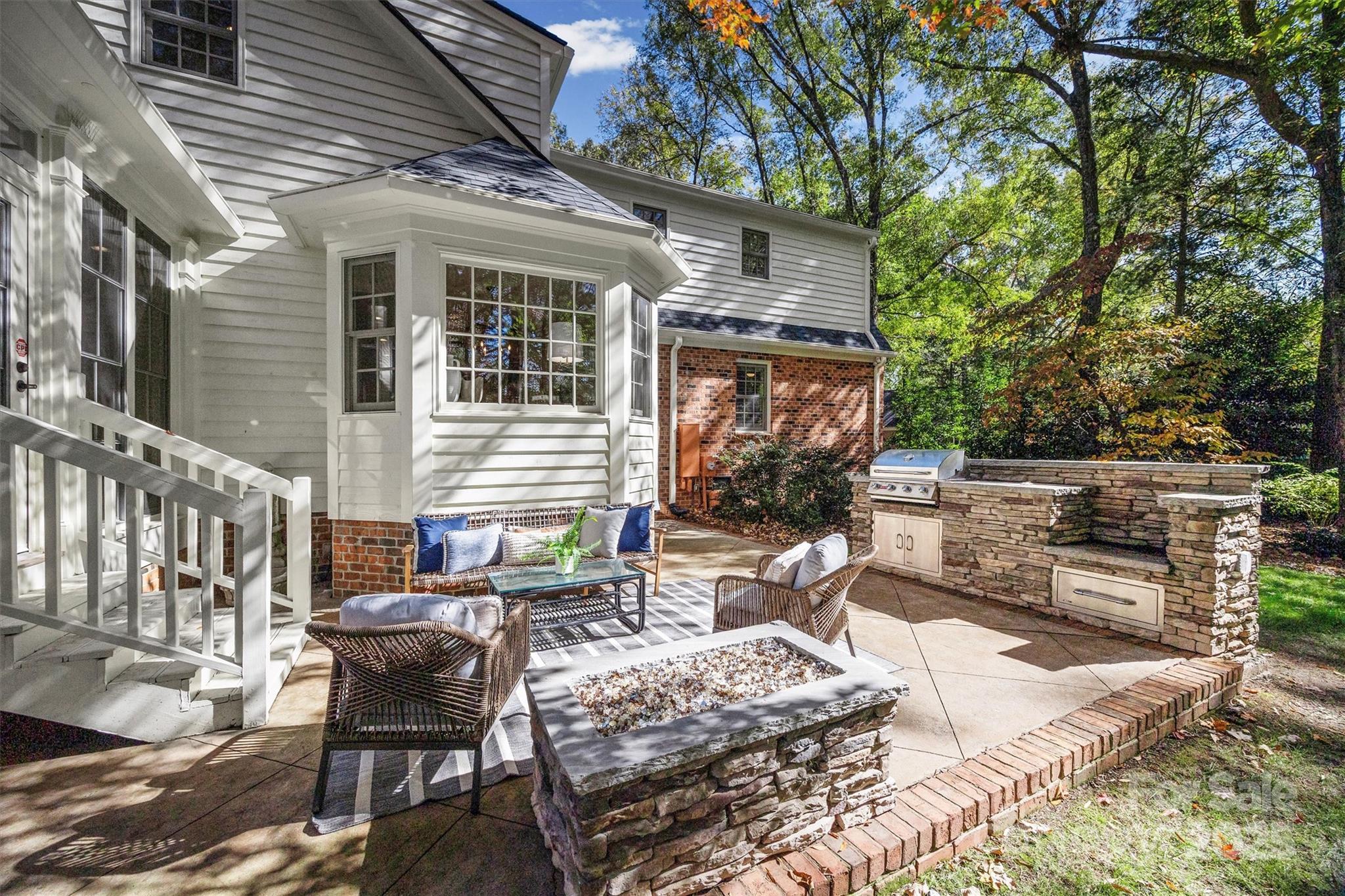 Multiple Offers Received - Please submit Best/Final Offers by 9:00AM Saturday, Nov 8th. Welcome to 5601 McAlpine Farm Road, a gorgeous 5 bed / 3 bath home in desirable Montibello on sprawling corner lot! This beautiful home offers an excellent floor plan with thoughtfully designed living spaces & functional flow for everyday living & entertaining. Heart of pine wood flooring. Formal living and dining rooms. Kitchen remodeled in 2022 by Ashley Delapp Interior Design with quartz countertops, tile backsplash, under cabinet lighting, Cafe gas range, dishwasher, built-in refrigerator & light filled breakfast room. Bar overhang with room for bar stool seating open to beautiful family room with brick surround fireplace and charming Dutch door to covered side porch entry. French doors lead to spacious sunroom with Eze Breeze windows and oak flooring. Mud room with great storage and built-ins with entry from attached two car garage. Bedroom/office and full bathroom on the main level. Large scale addition in 2005 with detached third car garage by Architect : Miller Nicholson and Builder: Kelly McArdle. Spacious primary suite with stunning bathroom updates completed in 2021 with double vanity and large walk-in tile surround shower. Large bonus room with walk in attic space. Three secondary bedrooms. Hall bathroom with double vanity, tile surround shower/tub combo and linen closet. Rear yard patio with outdoor grill station and gas fire pit added in 2020 with professional landscaping. Meticulously maintained and extensive updates include: roof replaced in 2024, new liners and caps installed at both chimneys in Nov 2024, HVAC replaced in 2020/2019, encapsulated crawl space, Jeld-Wen windows in 2005. See NC Seller Disclosure for more information on property. Rug in front upstairs bedroom to remain. Excellent location minutes to Southpark! Move in ready!