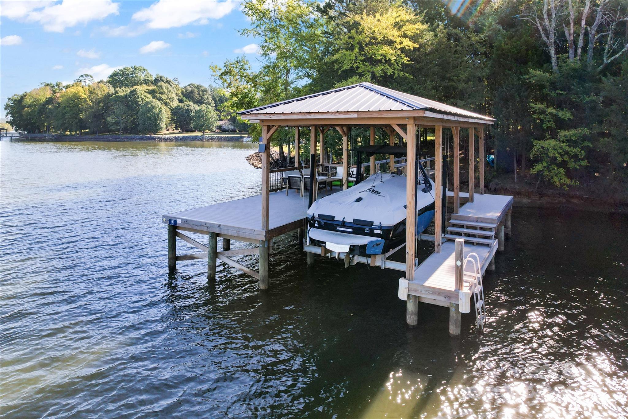 Get ready to be WOWED by this gorgeous, long-range panoramic view lot on Lake Wylie and zoned for TOP ranked Clover schools. Conveniently located off of Charlotte Highway and right over the Buster Boyd bridge, this home is set back so you not only enjoy your private lot but you are tucked away in your own oasis. This big water view lot, is located on a point so you enjoy deep water that is perfect for your recently built dock with cover and entertainment area. The dock was built in 2023 and is fully permitted by Duke Energy and includes the boat lift. The lot is fairly flat and perfect for a basement or slab home. This lot allows you to immediately enjoy your lake access and the no time limit build with NO HOA gives you the flexibilty to build on your schedule. See attachments for survey, Perc Test and Deed Restrictions.