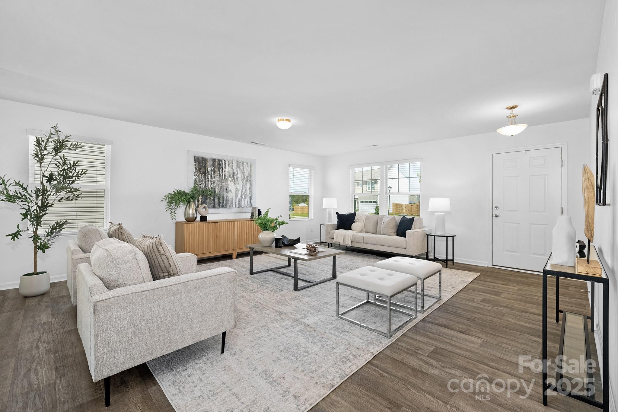 Corner Lot! Step into this spacious home and be welcomed by an expansive open-concept Great Room, ideal for entertaining or relaxing. The oversized L-shaped kitchen offers abundant cabinetry and prep space. A versatile flex room on the main floor provides the perfect spot for a home office, creative studio, or separate lounge area. Upstairs, retreat to the generous Primary Suite featuring a large en-suite bath and walk-in closet. Three additional well-sized bedrooms, a full bath, and a conveniently located laundry room complete the second level, offering comfort and functionality throughout. Home includes kitchen appliances, including refrigerator as well as washer and dryer. Convenient to Lake Norman State Park, Downtown Statesville, Troutman, and Mooresville entertainment, dining, and shopping.