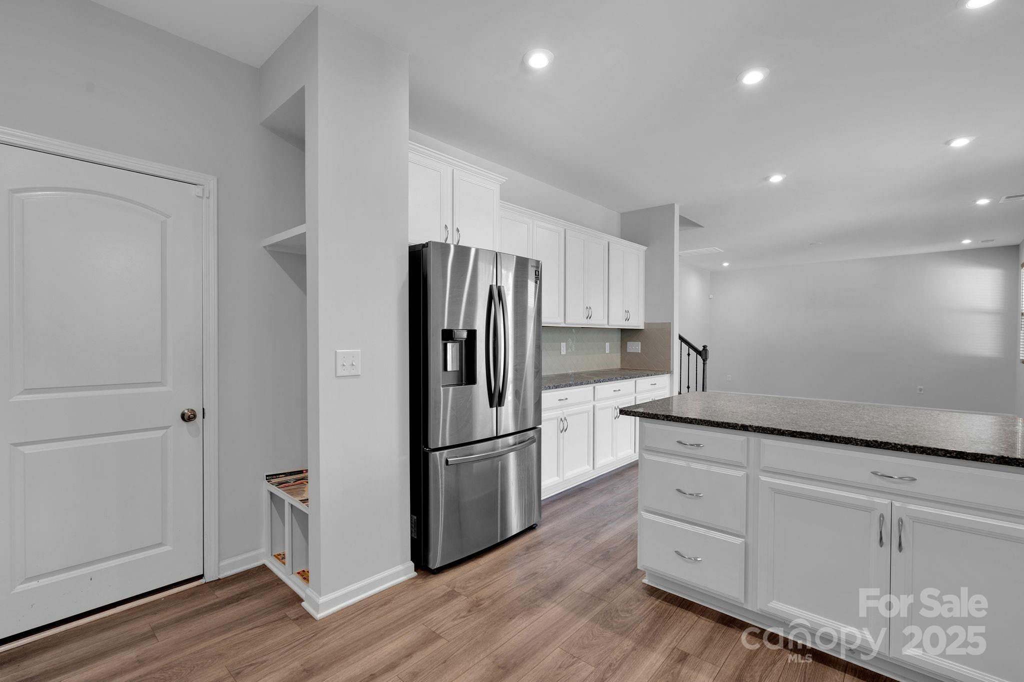 As you continue down the hallway, you'll be greeted with a warm ambiance of light through the large windows. The open-concept layout flows seamlessly into an immaculate kitchen featuring abundant cabinetry, sleek countertops, and a charming island that’s perfect for entertaining or enjoying casual meals.
