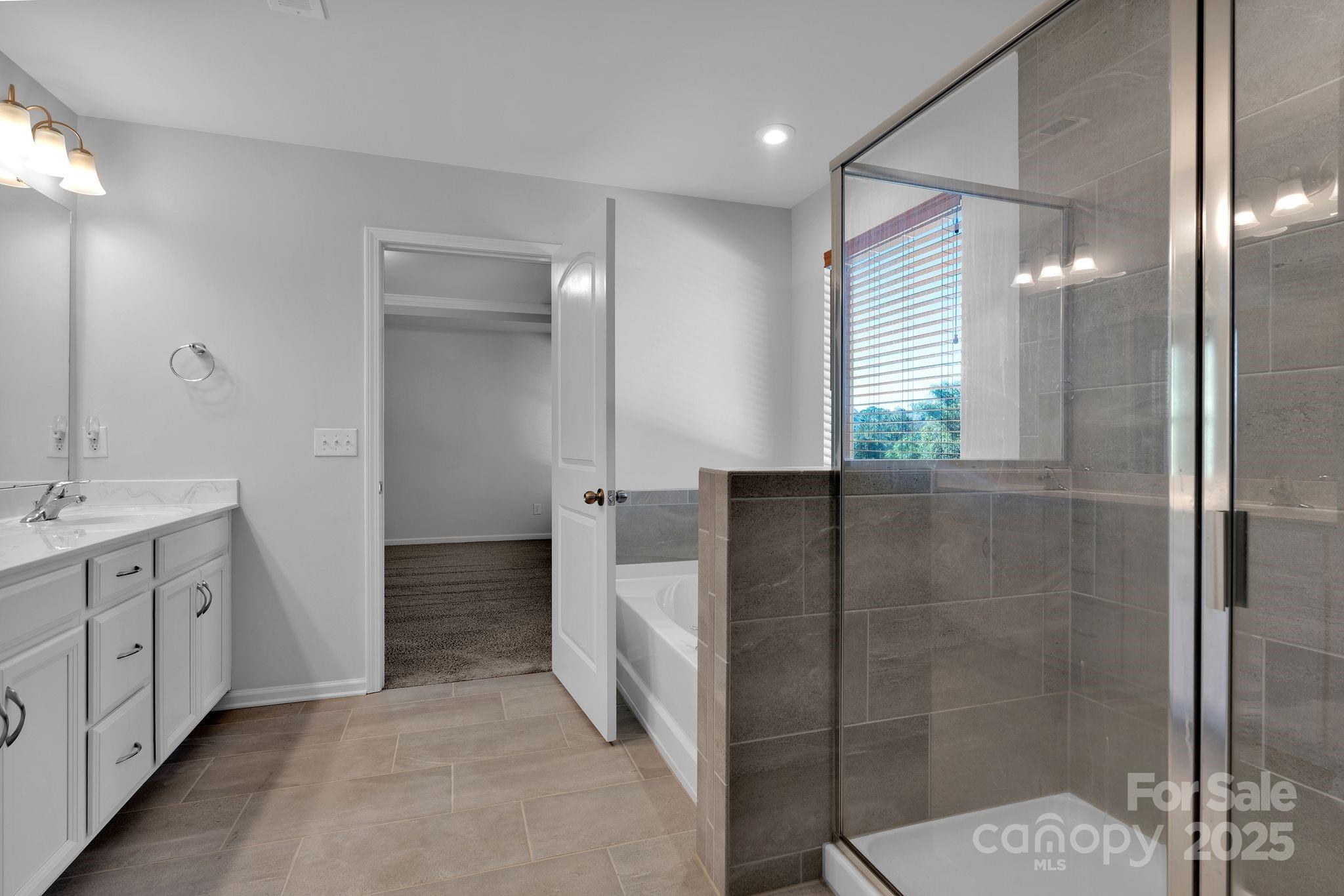 Upstairs, discover an expansive open loft—your personal retreat for relaxing, reading, or movie nights. The primary suite is a sanctuary of its own, with soaring tray ceilings, generous space, and a spa-like ensuite bathroom with attractive tilework and a soothing soaking tub.
