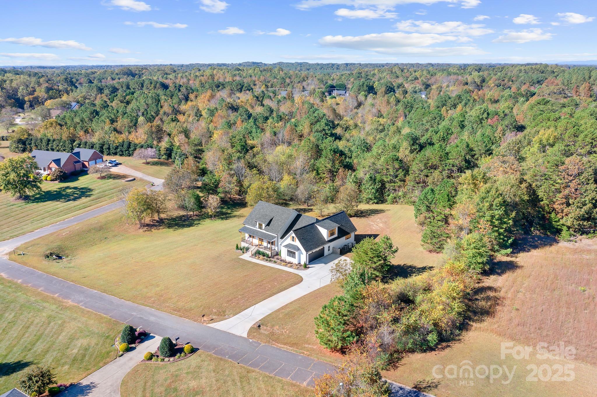 Discover luxury country living in this stunning custom home on 1.56 acres in Dewey Beam Estates. A community composed of large lots and beautiful homes. This home was designed with elegance and comfort in mind and features an open floor plan with vaulted ceilings, mahogany doors, and attractive cedar beams. The brick fireplace, flanked by custom built-in shelving, serves as the focal point of the great room and seamlessly connects to the modern kitchen. Featuring white cabinetry accented with black hardware, spacious center island, large walk-in pantry, and a wood clad range hood, the kitchen offers an inviting space for culinary creativity. A spacious primary suite on the main level serves as a peaceful retreat. Primary bath offers dual sink vanities, walk-in shower, a free standing tub, and a large walk-in closet. The split-bedroom plan with a Jack-and-Jill bath adds convenience for family or guests. A custom drop zone located by the laundry and garage helps keep the home looking tidy. Upstairs is the fourth bedroom with a full bath and a versatile bonus room that offers flexible options for guests, teen suite, home office, or recreation space. provide flexible living options. Enjoy privacy and scenic views from both the front and back porches on this beautiful corner lot. With the home connected to sewer, there is ample room to add a pool in the backyard. Perfectly located just 40 minutes to Charlotte and 15 minutes to Shelby or Lincolnton, this home combines upscale finishes, thoughtful design, and the charm of country living. Don’t miss your chance to make it yours! *Washer and Dryer do not convey