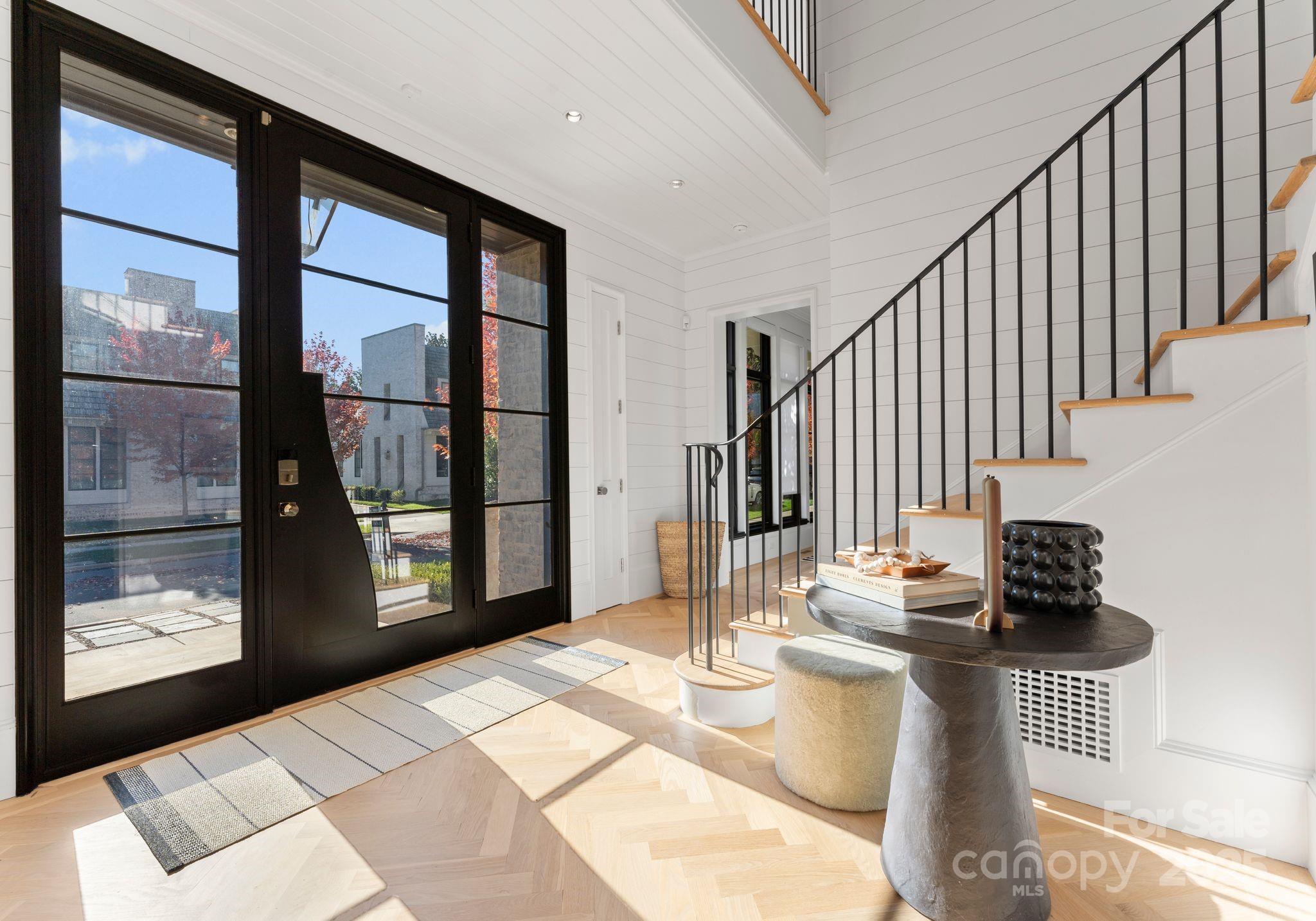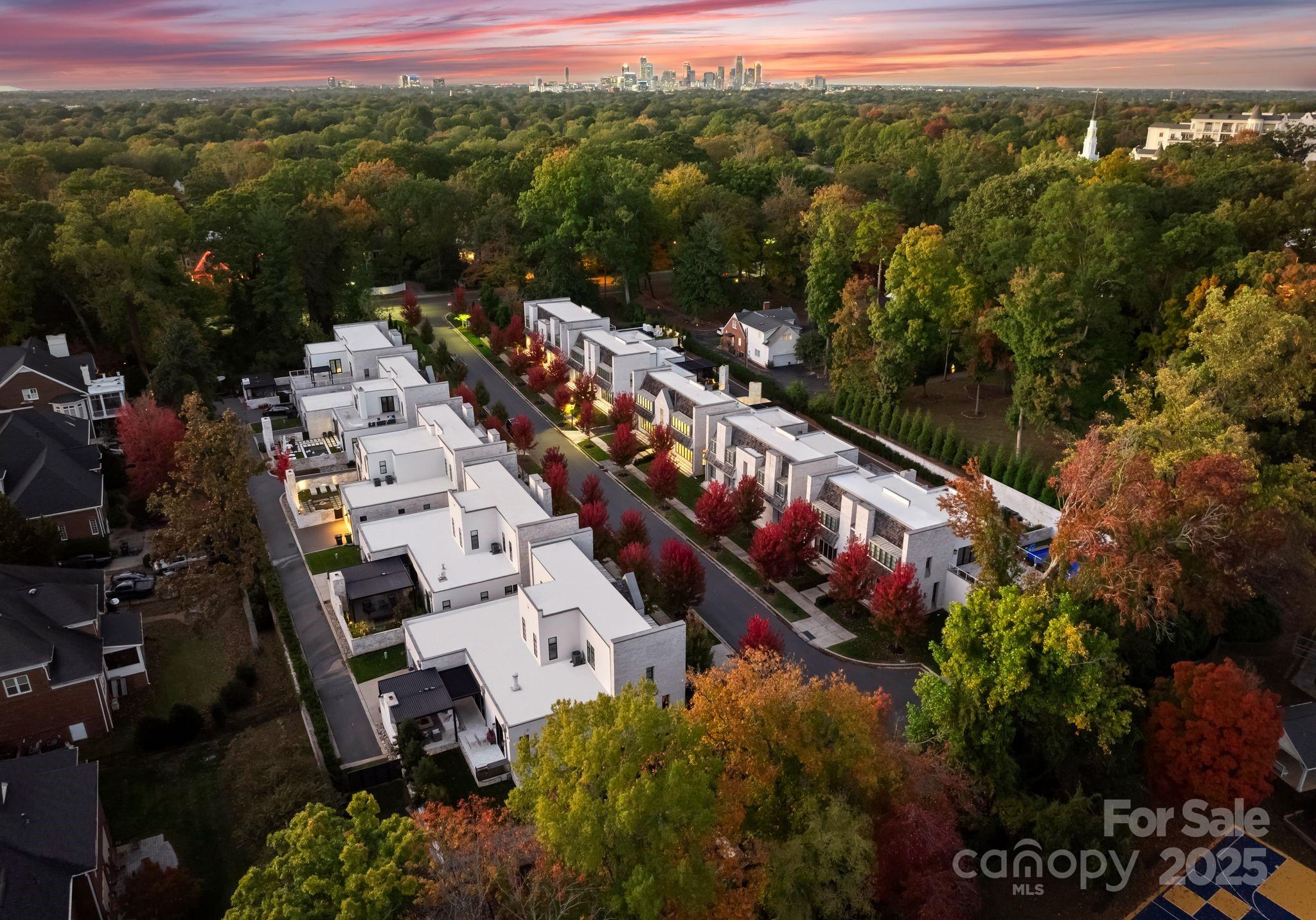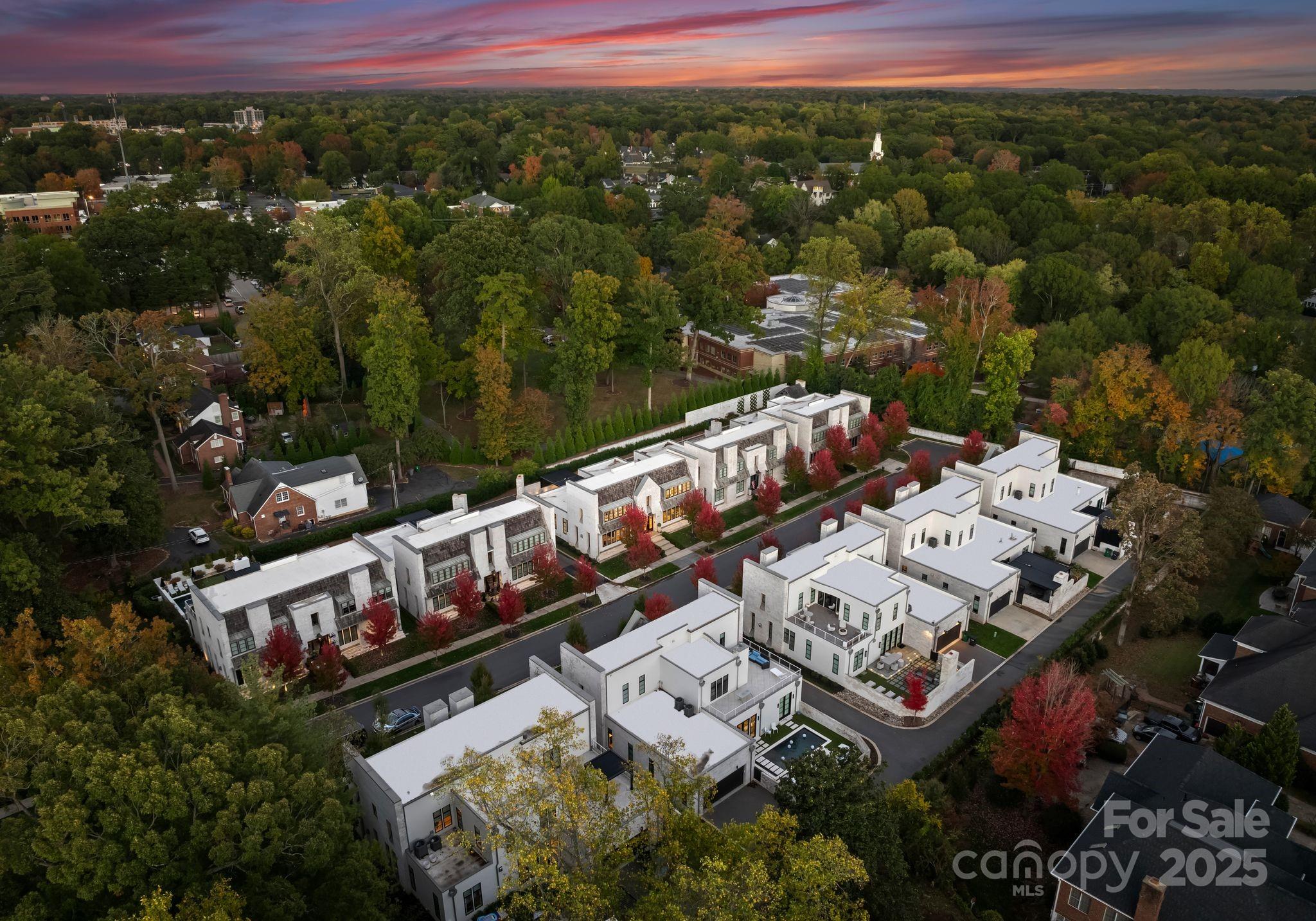 Tucked on a quiet cul-de-sac in one of Charlotte’s most sought-after areas, this residence blends refined luxury with modern comfort just minutes from SouthPark, Myers Park, Eastover, and Uptown. Its prime location offers walkable access to shops, restaurants, and medical facilities, with top public and private schools close by. Situated between Foxcroft and Cotswold, Kenwood Sharon Lane is an exclusive collection of ten custom homes designed by Don Duffy and artfully built by Thomasson Builders. This home showcases impeccable craftsmanship, timeless finishes, and an effortless indoor-outdoor flow. The main level features a grand two-story foyer, 10’ ceilings, a powder room, and a stunning open-concept living and kitchen area. The chef’s kitchen is equipped with Sub-Zero, Wolf, ASKO, and Liebherr appliances, complemented by soft-close drawers, extensive custom cabinetry, and a walk-in pantry. The elegant main-level primary suite offers an expansive spa-inspired bath with dual vanities, heated flooring, a glass walk-in shower, and a freestanding tub, as well as a large custom walk-in closet with built-in shelving and storage. Additional main-level spaces include a butler’s pantry with a coffee bar, display shelving, and two wine refrigerators, an inviting living room with a modern gas fireplace and custom built-ins, a spacious family room, an office or formal sitting room, and a functional drop zone/laundry room with a dog wash and feeding station. Upstairs, two spacious guest suites each feature designer lighting, walk-in closets, and luxurious ensuite baths. Outdoor living is elevated with a covered rear patio featuring an electronically controlled louvered roof, a built-in TEC grill station, an outdoor fireplace, and beautifully landscaped surroundings with full security coverage. A rare turnkey offering in a prime Charlotte location!