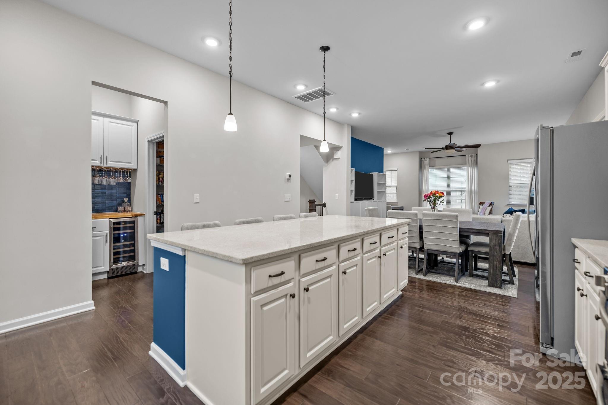 A seamless blend of luxury and convenience, this stunning, light-filled end-unit townhome offers an expansive 2,000+ square feet of beautifully appointed living space, designed for both personal comfort and entertaining family and friends. Soaring 10-foot ceilings enhance the open-concept floor plan, flowing seamlessly from the spacious living and dining areas to the gourmet kitchen. This chef's dream features a large island, elegant 42-inch white cabinets, granite countertops, a stylish tile backsplash, and a suite of stainless-steel appliances, including a gas range with a double oven. A walk-in pantry and a built-in beverage area add convenience and sophistication. Upstairs, the private primary suite with a large walk-in closet offers a luxurious retreat with ensuite bath including double vanity and spacious shower. Three additional generous bedrooms provide versatile space for guests, a dedicated home office, or a personal gym and are complimented with 2.5 additional bathrooms. Need extra storage? Flooring has been put in the attic to expand storage. Step outside to your private, west-facing deck to enjoy tranquil evenings and unforgettable sunsets. Residents also benefit from exclusive access to a community pool with cabanas and a gas grill, perfect for socializing. The attached, rear-facing two-car garage with epoxy floor provides secure and convenient parking. Perfectly located, this home offers immediate walkability to the light rail, connecting you to the vibrant dining, shopping, and entertainment of LoSo and the SouthEnd, and a convenient commute to SouthPark and I-77. Don’t miss this beautiful home, call your real estate agent to arrange a private showing! Listing agent related to seller.