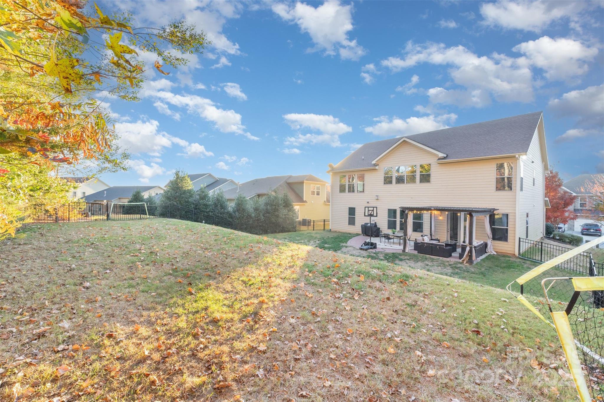 Sophisticated and beautifully maintained, this home blends modern elegance with everyday comfort. Nestled in the sought-after Lake Ridge community with resort-style amenities, active social events, andawar wining schools. Convenient to shopping, dining, I-485, airport, Catawba Park, and Lake Wylie (FUN)- this home offers an exceptional lifestyle in a premier location. The covered front porch and two-story foyer welcome you into bright, open living spaces with hardwood floors and 9-ft ceilings. The gourmet kitchen with white cabinetry, granite counters, stainless appliances, and a spacious island flows seamlessly into the breakfast area and great room with a stunning floor-to-ceiling stacked stone fireplace—perfect for gatherings and entertaining. A main-level bedroom and full bath offer flexibility for guests or office use. Upstairs features a large bonus room with custom barn doors, Jack-and-Jill bath with dual vanities, a private ensuite, and generous bedrooms—all with walk-in closets. The primary suite is a true retreat with tray ceiling and spa-like bath. The oversized epoxy-floored garage with built-ins provides ample storage. Enjoy outdoor living on the extended patio with pergola overlooking a fenced, terraced backyard with a level play area and mature trees—a private retreat ideal for relaxation or play. Welcome home!