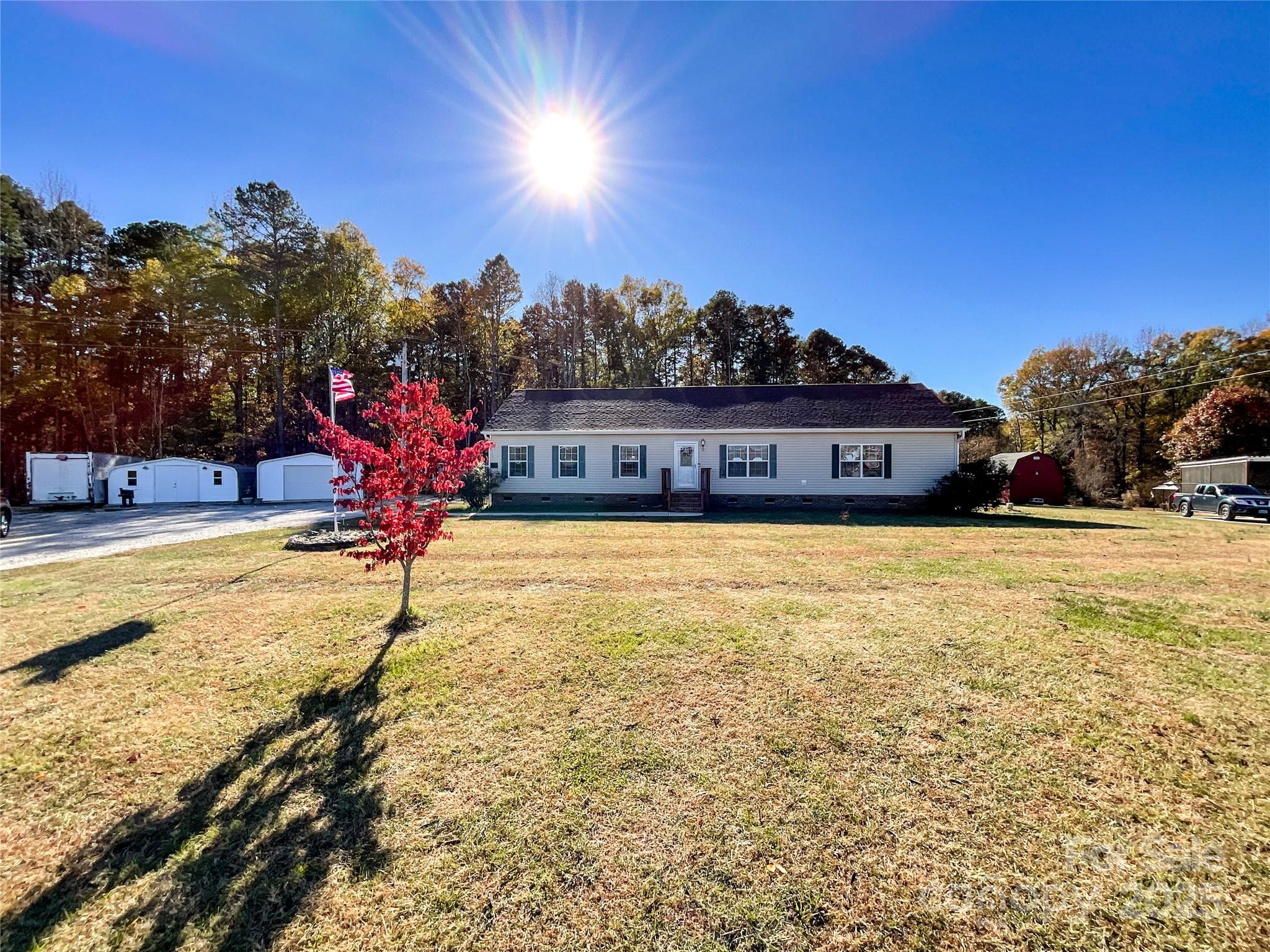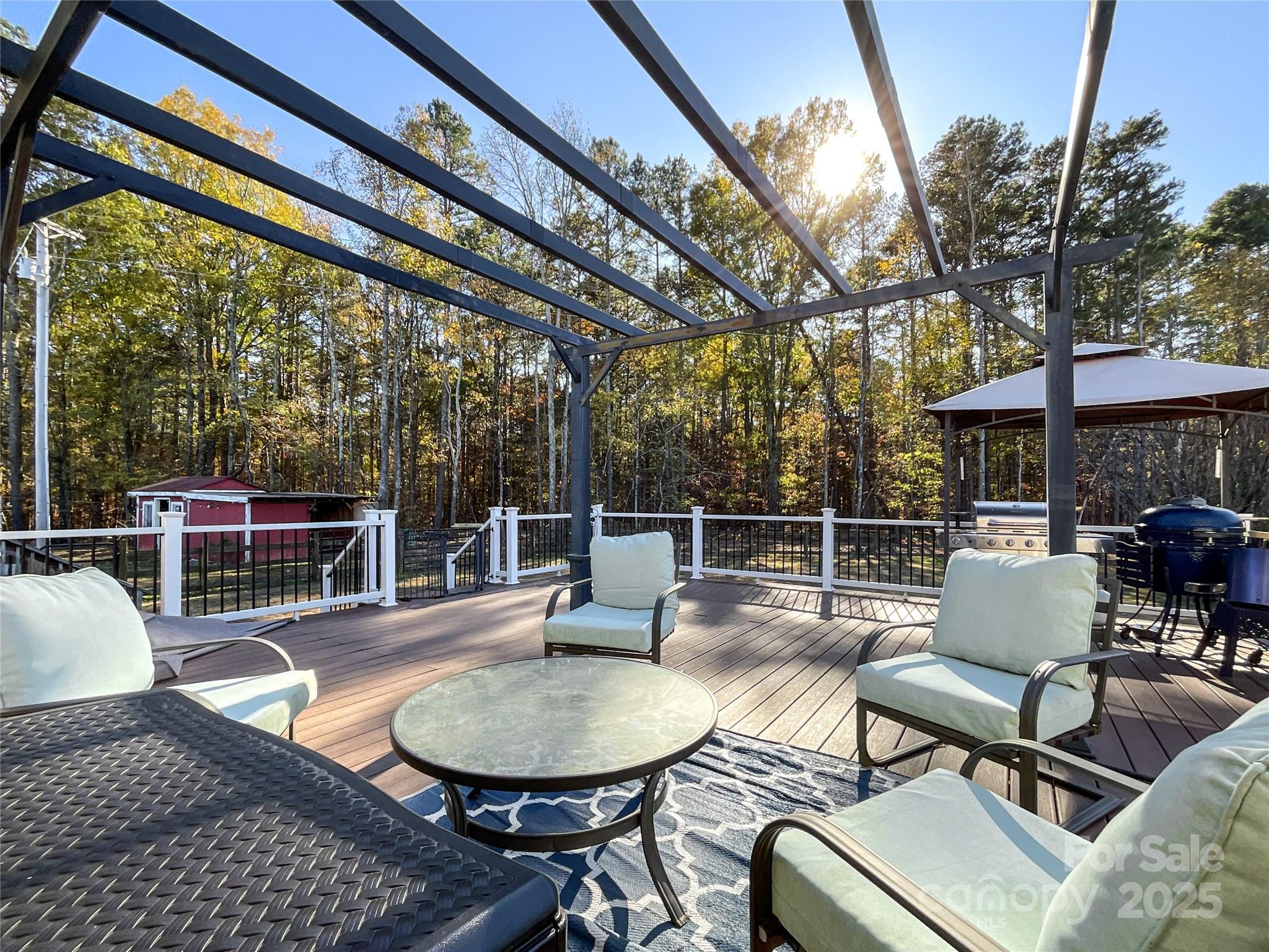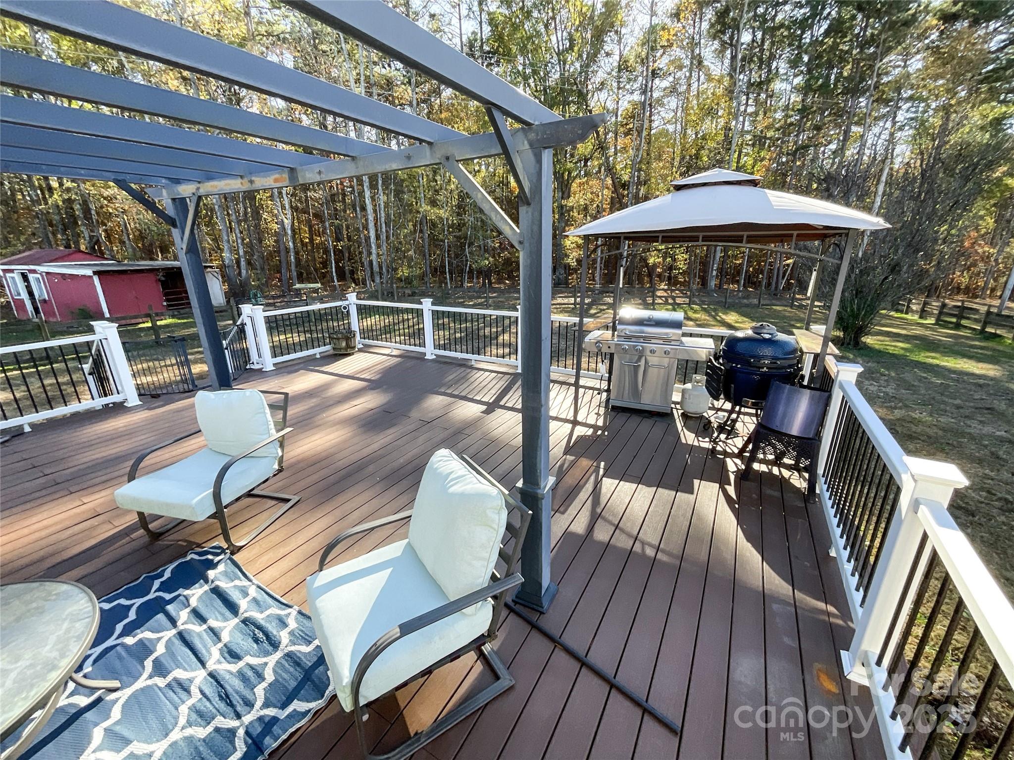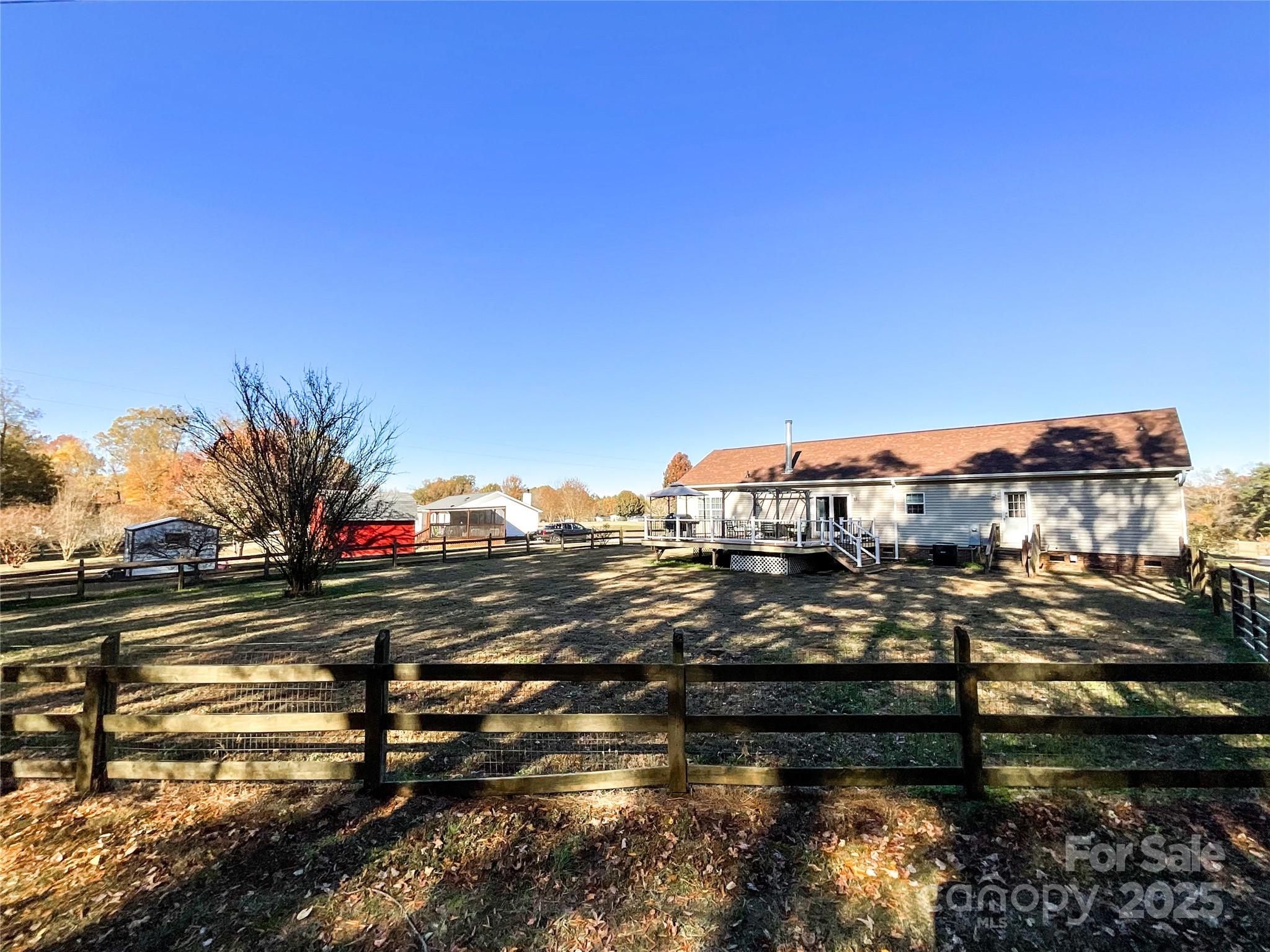 Bring your horses and chickens! This property is set up for horses and chickens with fenced in barn with 3 stables, with attached 2 large chicken coops for fresh farm eggs each morning. In this lovely home you are greeted by a spacious family room with a stunning fireplace. The kitchen features stainless appliances, island and granite counter tops with ample space. The primary bedroom is situated on the opposite side to the home away from the secondary bedrooms lending to a great sense of privacy. In addition you find a spacious 683 sq ft unfinished attic having access with stairway located in the family room for immense storage or endless possibilities such as hobby space or play area. New roof installed Nov. 2025. Large 24x25 ft Trex deck with 2 included Pergola's offering ample room for grilling, gatherings or relaxing coffee in the morning. For Hobbyists or business owner, the property includes a 18x20 ft outbuilding/workshop and a 18x20 ft outbuilding/kitchen offering endless possibilities. This property is more than a home - it is a lifestyle. A rare opportunity for those seeking country living with close access to shopping, dining and live entertainment. Several items do NOT convey including- Washer, Dryer and refrigerator in laundry room, string lights and swing by fire pit (frame to remain), ice machine and freezer in outdoor building. Refrigerator in kitchen, unless buyer would like to make an additional offer on purchasing in addition to the offer to purchase of home. Items to convey with offer to purchase include pergolas on deck and swing by fence. This property contains 2 separate parcels that are being sold together.