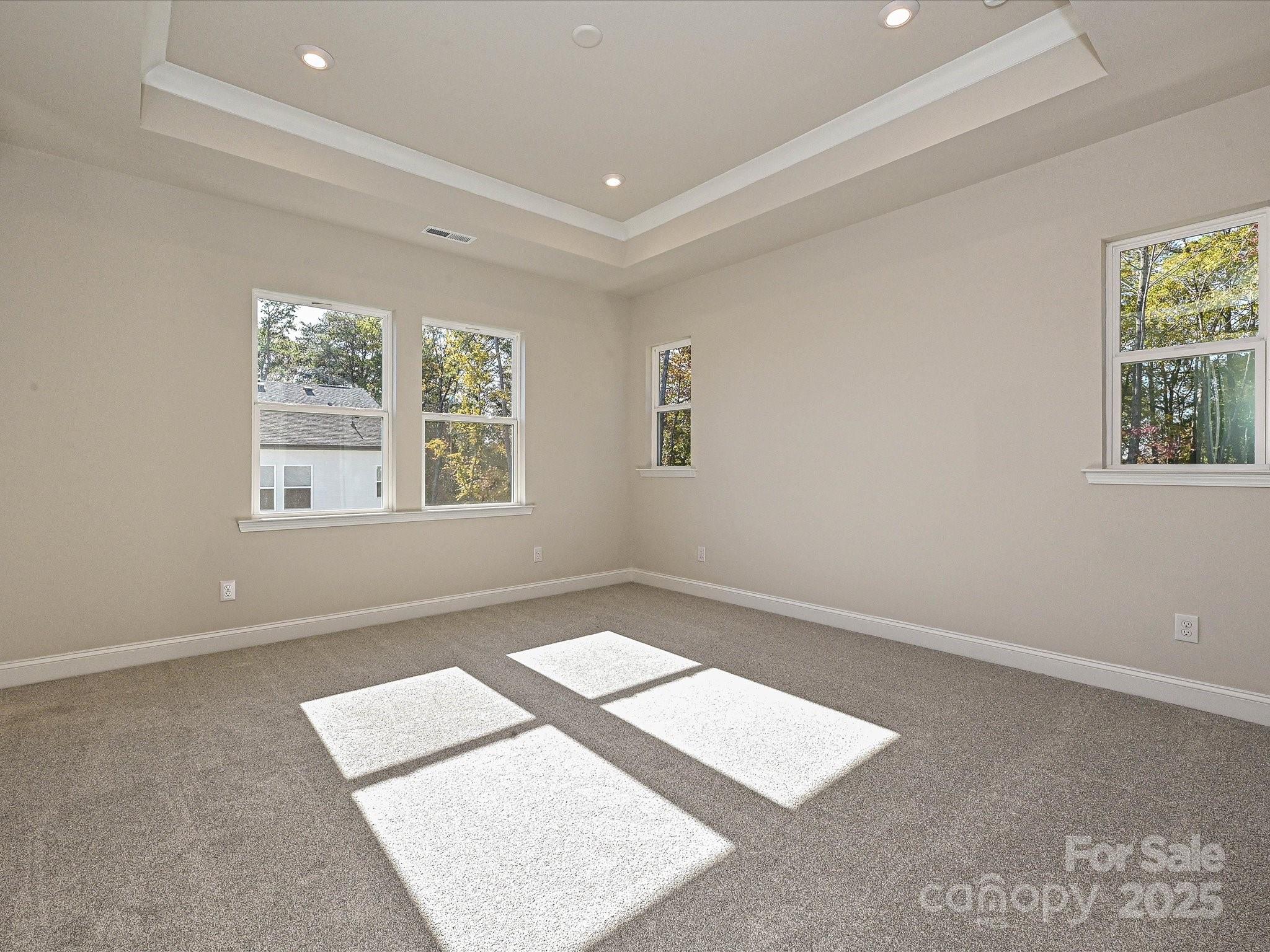 Tray ceiling at primary suite with 9' ceilings and 8' doorways.