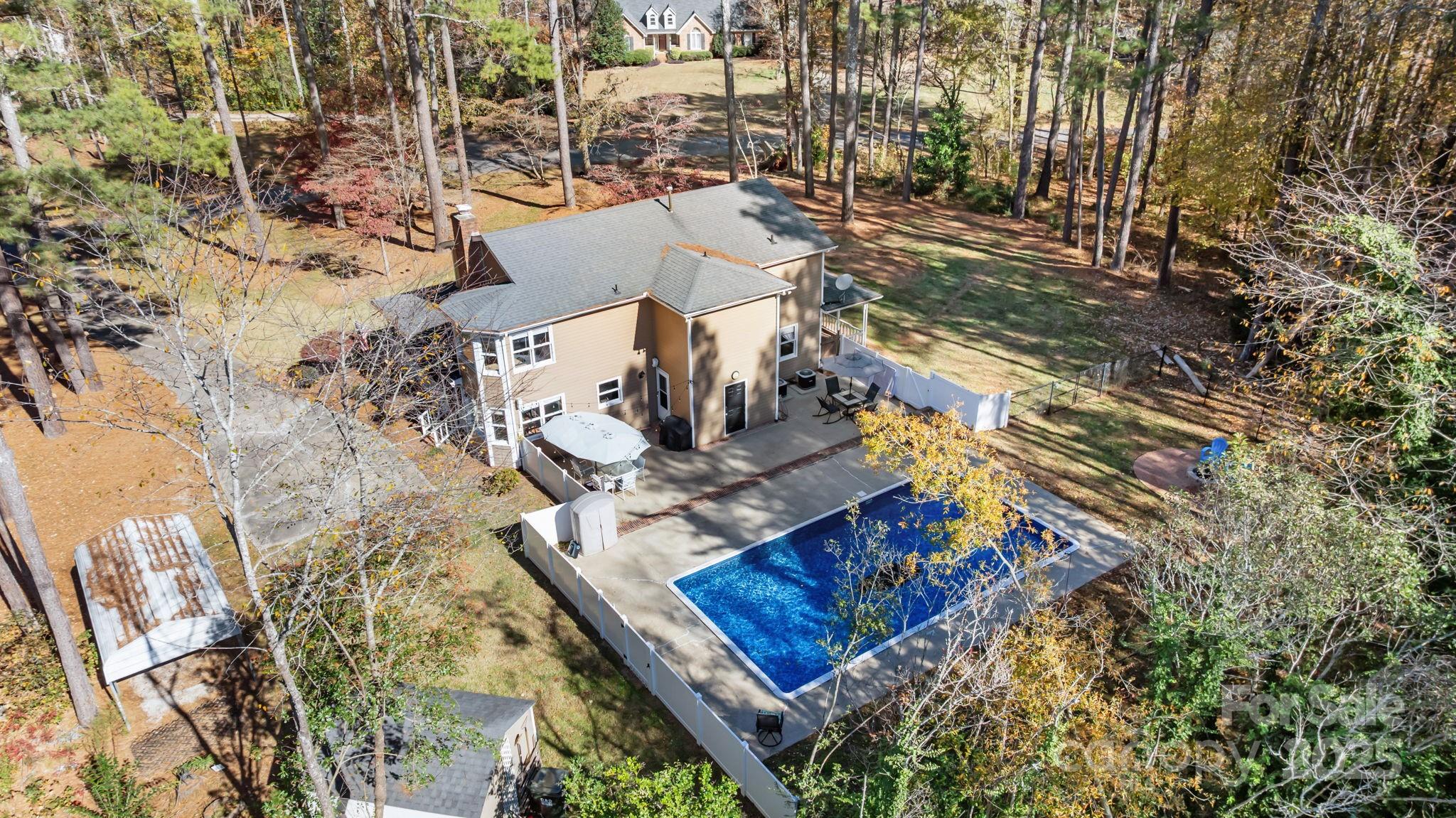 It's not often that the storybook home of your dreams reveals itself, complete with a welcoming wraparound porch, a sprawling front yard, and a shimmering pool that invites leisurely afternoons. This is it! Rich, deep layers of style and warmth flow throughout, creating an ambiance that beckons visitors, neighbors, and the laughter of holiday gatherings. On the main level, the large welcoming foyer opens up to the expansive parlor, and cozy sitting area. The light-filled den which opens gracefully to the kitchen and breakfast room, ensures a harmonious flow for entertaining and cherished moments. A thoughtfully placed half bath, laundry area, and storage room seamlessly connects to the backyard. As you ascend to the second floor you will discover four inviting bedrooms and two full baths, including a primary suite bathed in abundant natural light—an ideal retreat for daydreaming of your next adventure now that you’ve discovered your dream home. The absence of carpet enhances the airy ambiance, while new wide plank flooring adorns the upstairs, effortlessly blending comfort with sophistication. In the backyard, a spacious shed behind the carport stands ready to house all your gardening treasures. Here, you can surrender to the serenity of the outdoors, basking in the tranquility of the large pool, all within the secure embrace of a fenced yard, perfect for your cherished furry companions. Embark on a new chapter where your dream home transcends imagination and becomes a cherished reality. Perfectly situated in a peaceful neighborhood, this home is just 15 minutes from Allison Creek, historic downtown Rock Hill, the Giordana Velodrome, Ebenezer Park on Lake Wylie, Glencairn Gardens, and so much more—offering easy access to outdoor recreation, local dining, and the vibrant charm of Rock Hill.
