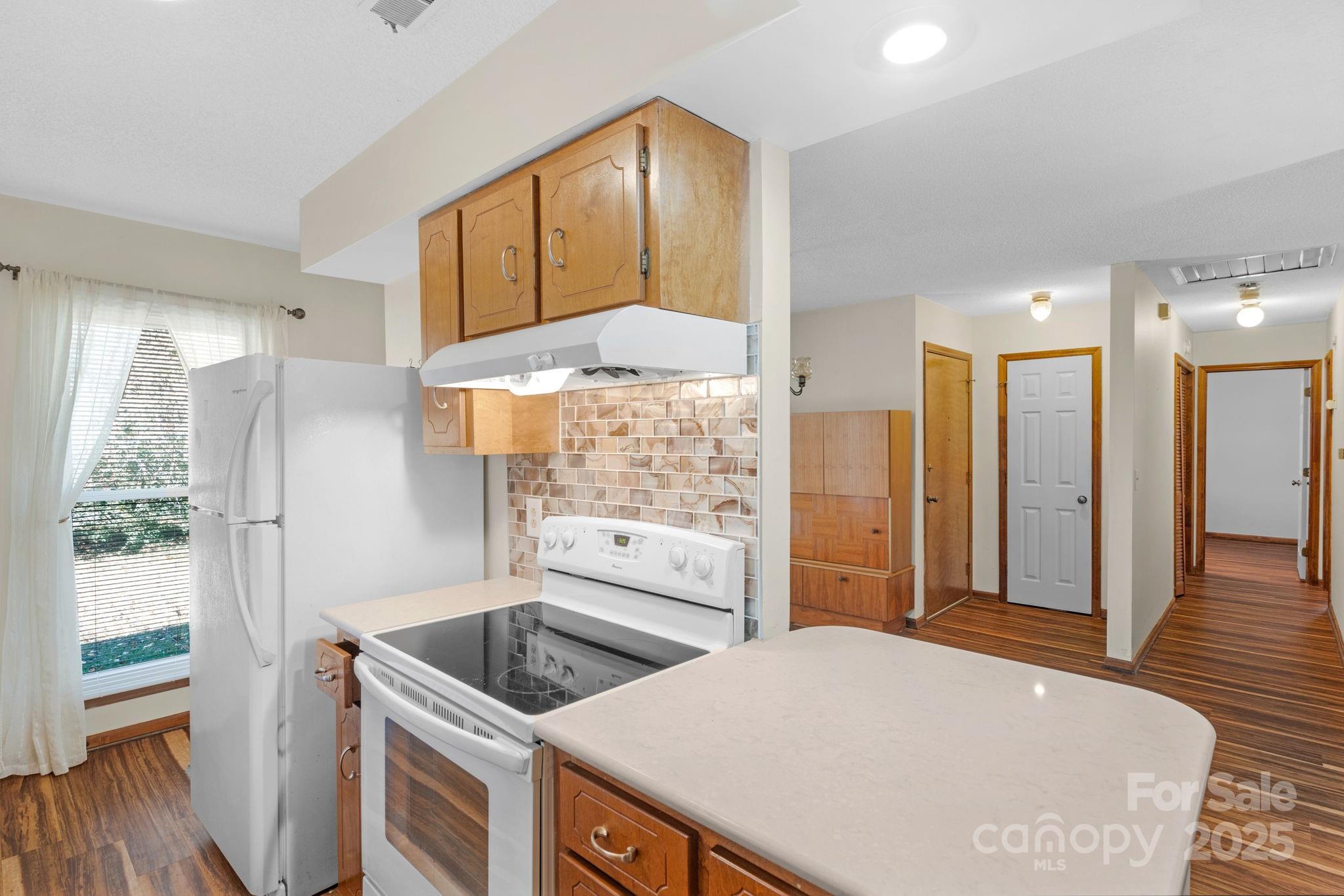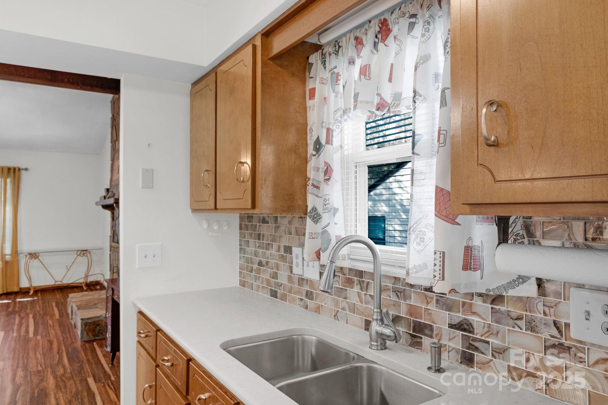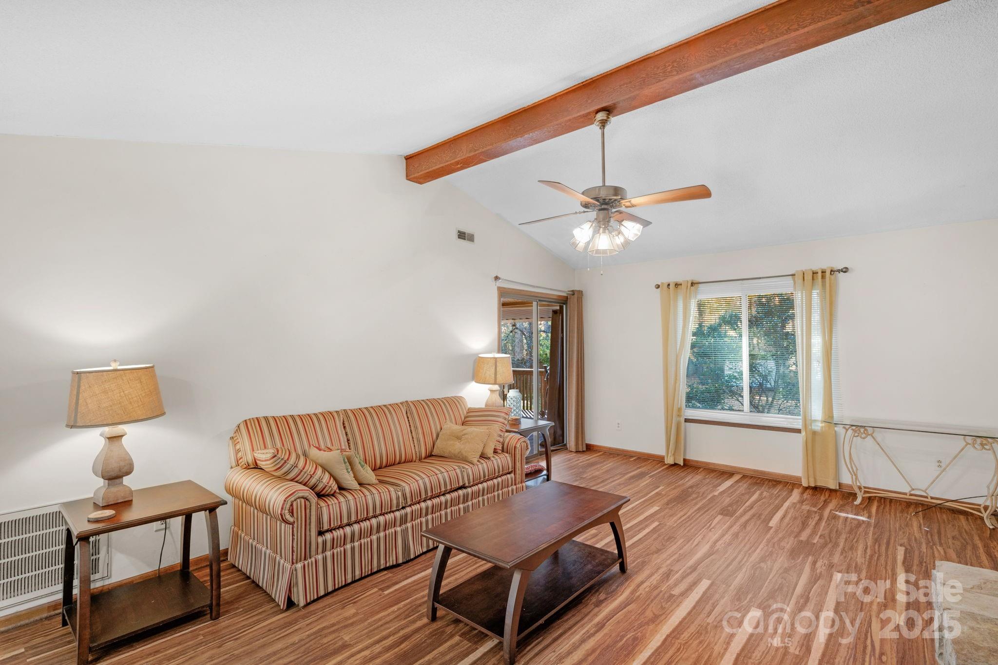 The kitchen features updated countertops and a modern backsplash, while LVP flooring extends throughout the home for a clean, durable, and stylish finish. The primary bedroom includes its own vanity area in the bath and opens to the deck, an inviting spot to enjoy morning coffee or unwind in the evening.
