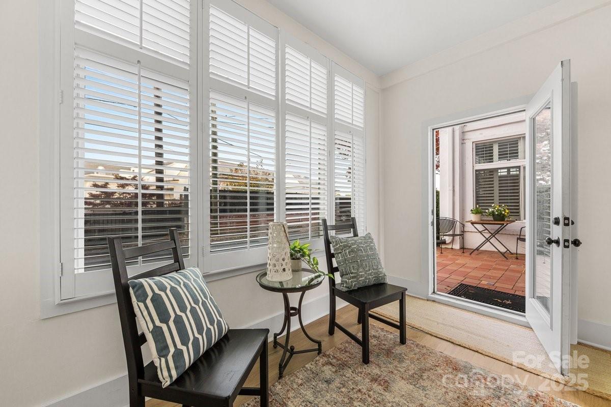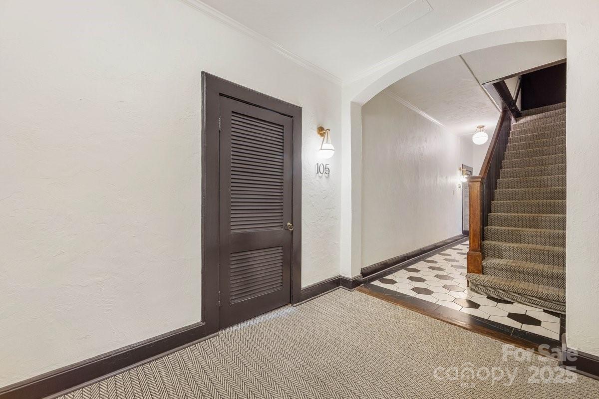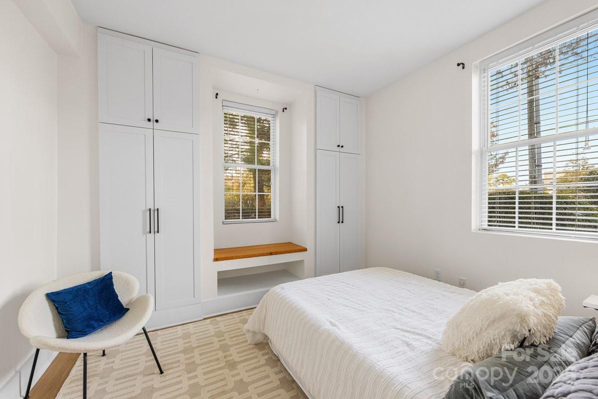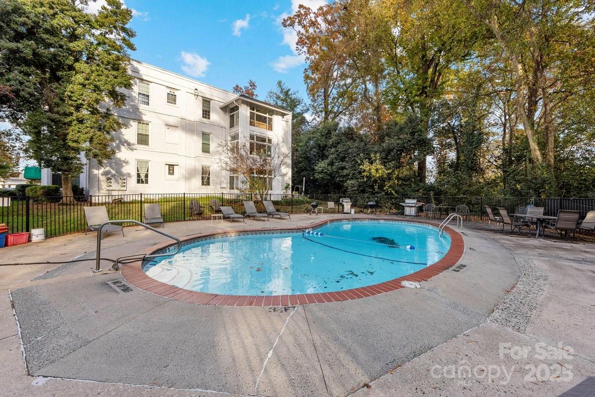 Totally remodeled END unit with high ceilings and natural window light!! In the heart of Myers Park and located right next door to Myers Park Country Club. Over 50K in renovations in 2024 ……..New honed Quartz countertops in the Kitchen, SS Appliances, new sink and fixtures, new LVP flooring throughout. Bathroom has new enlarged shower, new vanity, new lights, new floors--gorgeous. Primary Bedroom has great new storage spaces on the walls. Living area provides living space as well as a dining area. Wonderful Sunroom off the Living Area with NEW Plantation Shutters. This unit is totally unique in that it has an exterior Patio that is so private. Walking distance to Freedom Park, Queens University, Selwyn Pub, Harris Teeter, Reid's and so much more. The condo is also accessible through the front secured entrance lobby as well. High ceilings give you a sense of volume and extensive built-in shelving and storage throughout. The condo has its own washdryer located inside the unit. There is a beautiful community in-ground pool. Water is included in the HOA Fees. Location, Location, Location!!!!! Don't miss it.