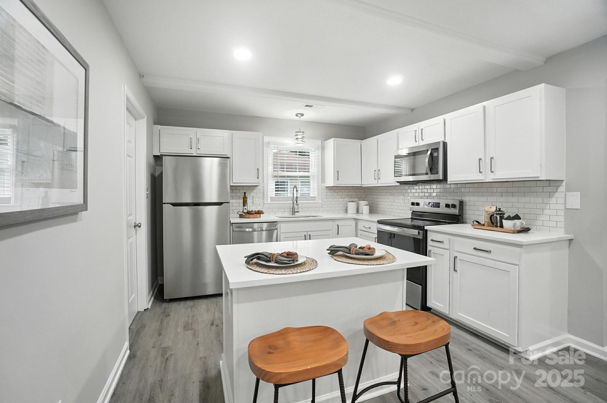 Turnkey 3BR/2BA home in Charlotte’s sought-after Eastbrook Woods community! Originally 1.5 baths, this property was professionally converted to 2 full bathrooms with city-approved permits, adding significant value and functionality. Fully renovated, this home features a modern kitchen with quartz countertops, stainless steel appliances, shaker cabinets, and a bright open floor plan. Updated baths include designer tile, matte-black fixtures, and modern vanities. New LVP flooring and fresh paint throughout provide a clean, move-in-ready finish.