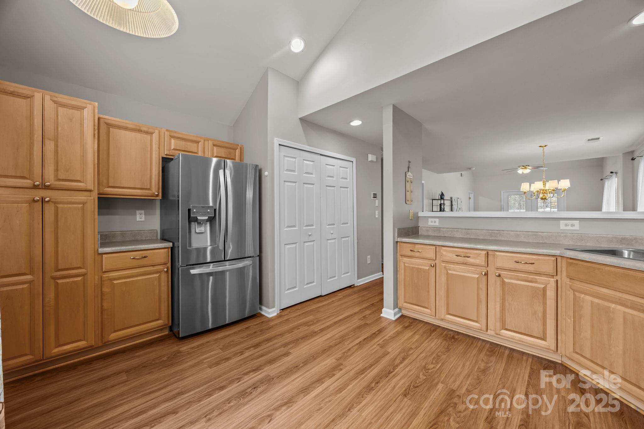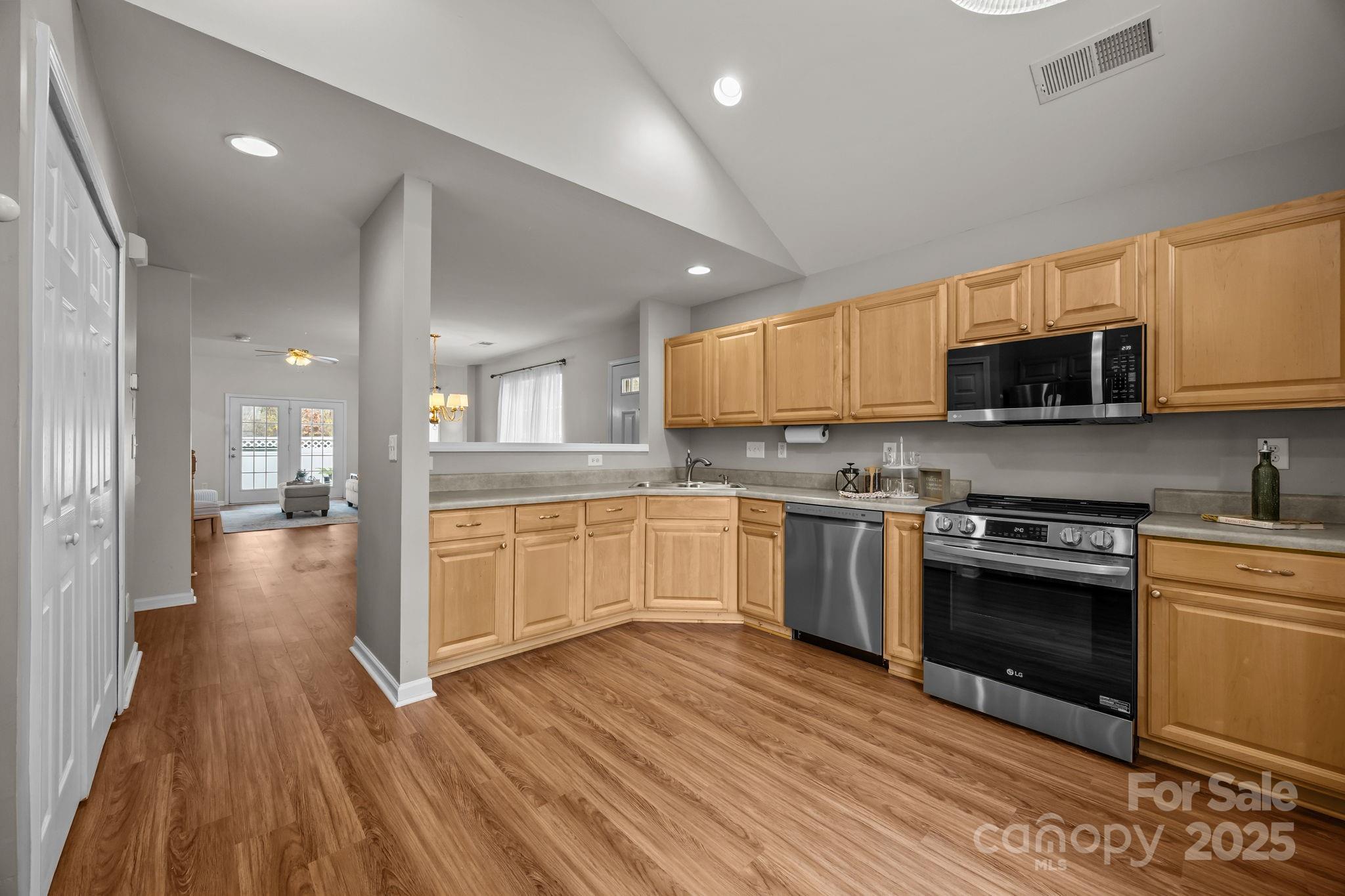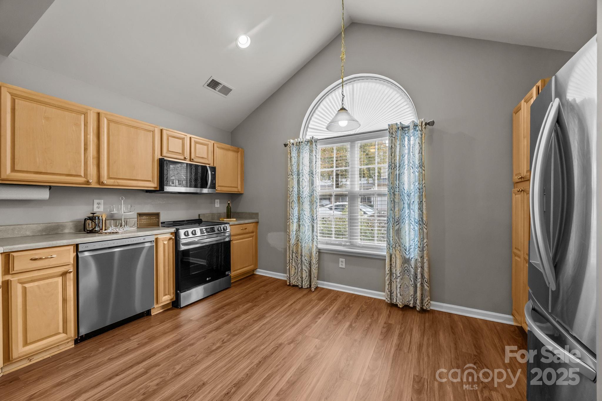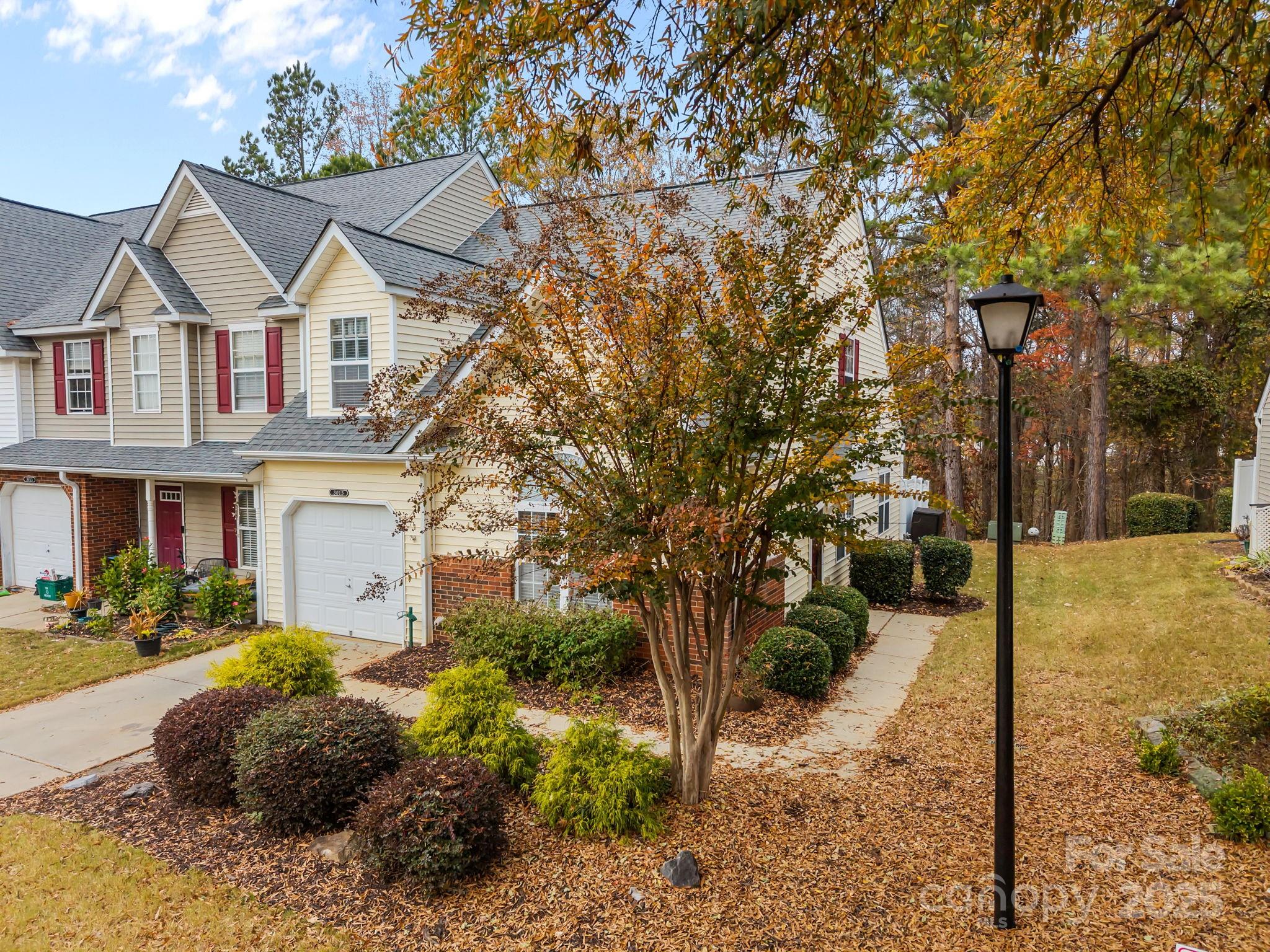 This light and bright END-unit townhome sits on a quiet street and is move-in ready! Backing up to peaceful woods for added privacy, this home features LVP flooring throughout the entire first floor and brand-new carpet upstairs. Enjoy a fresh, neutral color palette and an open floor plan that flows into a spacious kitchen with stainless steel appliances, vaulted ceiling, and abundant natural light.
