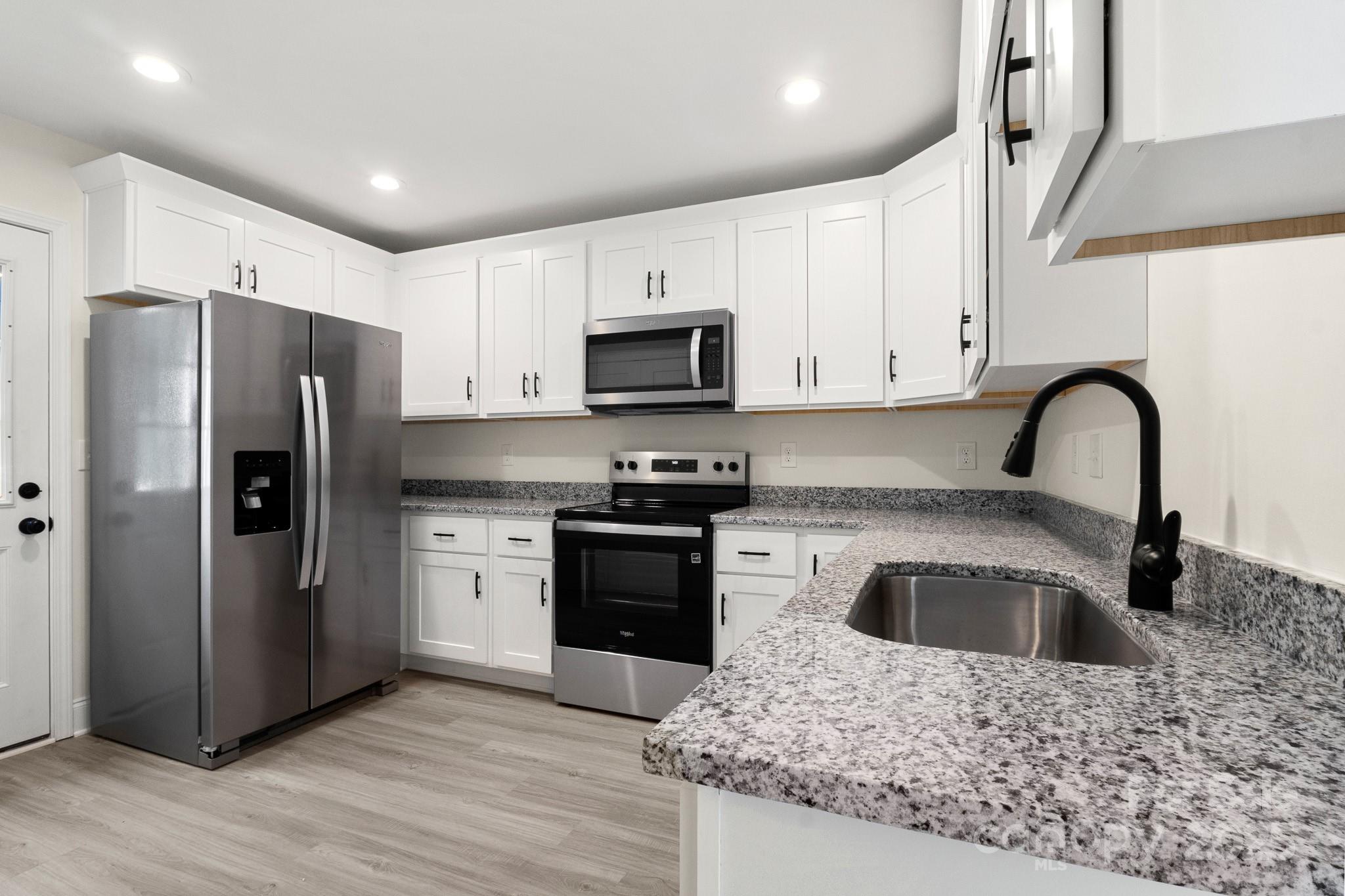 HOME IS UNDER CONSTRUCTION-BE CAREFUL. Beautiful front porch to enjoy your morning Coffee! Walk onto Designer NEW LVP flooring throughout. Spacious Great Room & Dining Area perfect for entertaining! Kitchen is AWESOME w/white shaker cabinets, granite countertops, and NEW SS Appliances! Primary Suite is a DREAM featuring DUAL walk-in closets, Dual granite vanity, and a huge garden tub/shower combo! 3 Guest Bedrooms are good size and all feature standard closets. The additional full bath in the hallway features a w/single granite vanity and tub/shower combo. 4th Bedroom is small but perfect for a home office or gaming room for the Kids! Parking is dependent upon final grade. It will either be concrete driveway or concrete parking pad. This space will be big enough for 2 cars to park! This home will have a Patio or Deck, it depends on Final Grade. Come see this one today!
