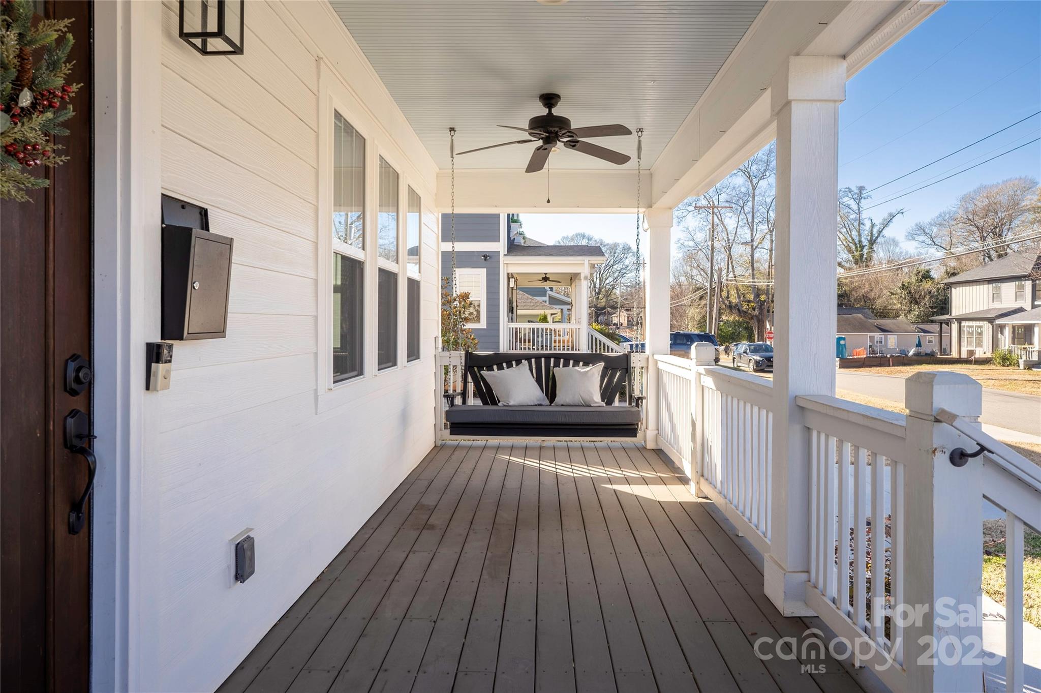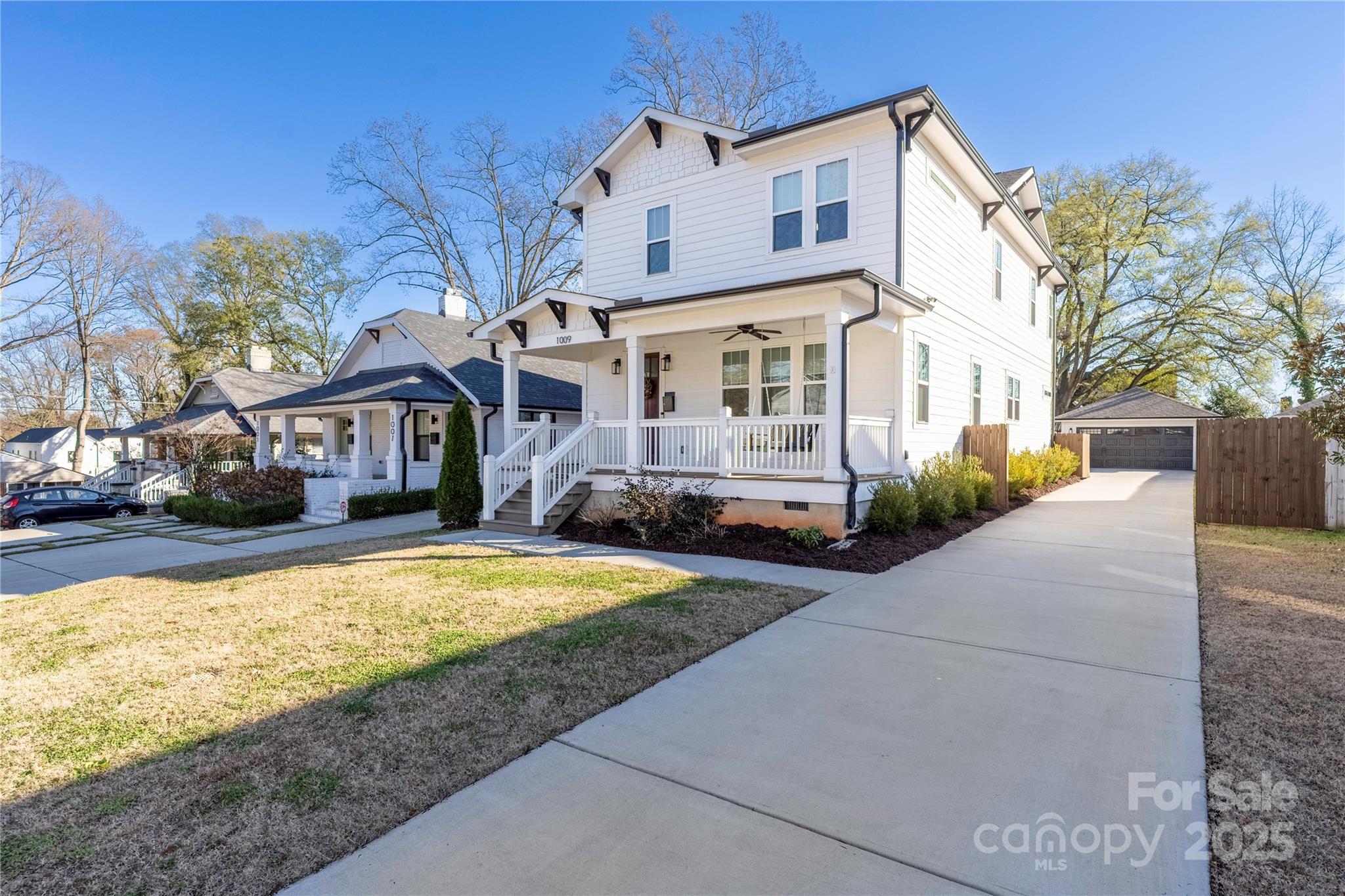 Welcome home to a picture-perfect Southern front porch, complete with a charming porch swing, that opens into a light-filled, open-concept layout. Inside, you’ll find 9-foot ceilings, site-finished hardwoods throughout the main level, and custom blinds that add both style and privacy. The chef’s kitchen is designed for cooking and gathering, featuring quartz countertops, a deep farmhouse sink, stainless steel appliances, a pot filler, and soft-close cabinetry. The spacious living room centers around a gas fireplace with a beautiful mantle and includes a cozy built-in window bench with custom cushions—an ideal spot for reading or relaxing. Upstairs, a flexible loft provides the perfect space for a home office, workout area, or bonus lounge. The oversized primary suite offers a true retreat with a freestanding soaking tub, an oversized rain shower, dual vanities, and a fully custom walk-in closet. Outside is your private backyard oasis, complete with a full privacy fence, a large deck for entertaining, and a paved patio perfect for dining or lounging. Situated in the rapidly growing Enderly Park/Wesley Heights corridor, you’ll be moments away from trendy new restaurants, local coffee shops, breweries, greenway access, and all the energy and skyline views of Uptown Charlotte. This home truly blends modern comfort with unbeatable location.