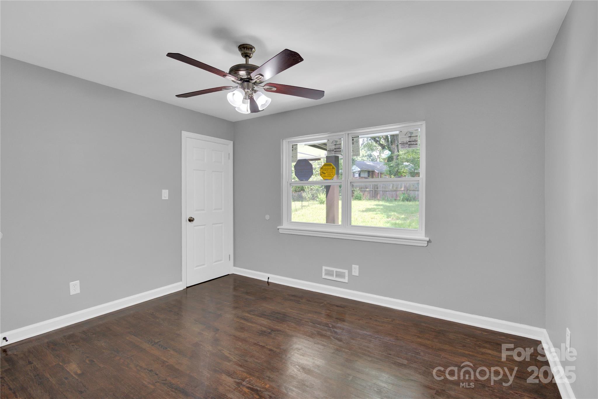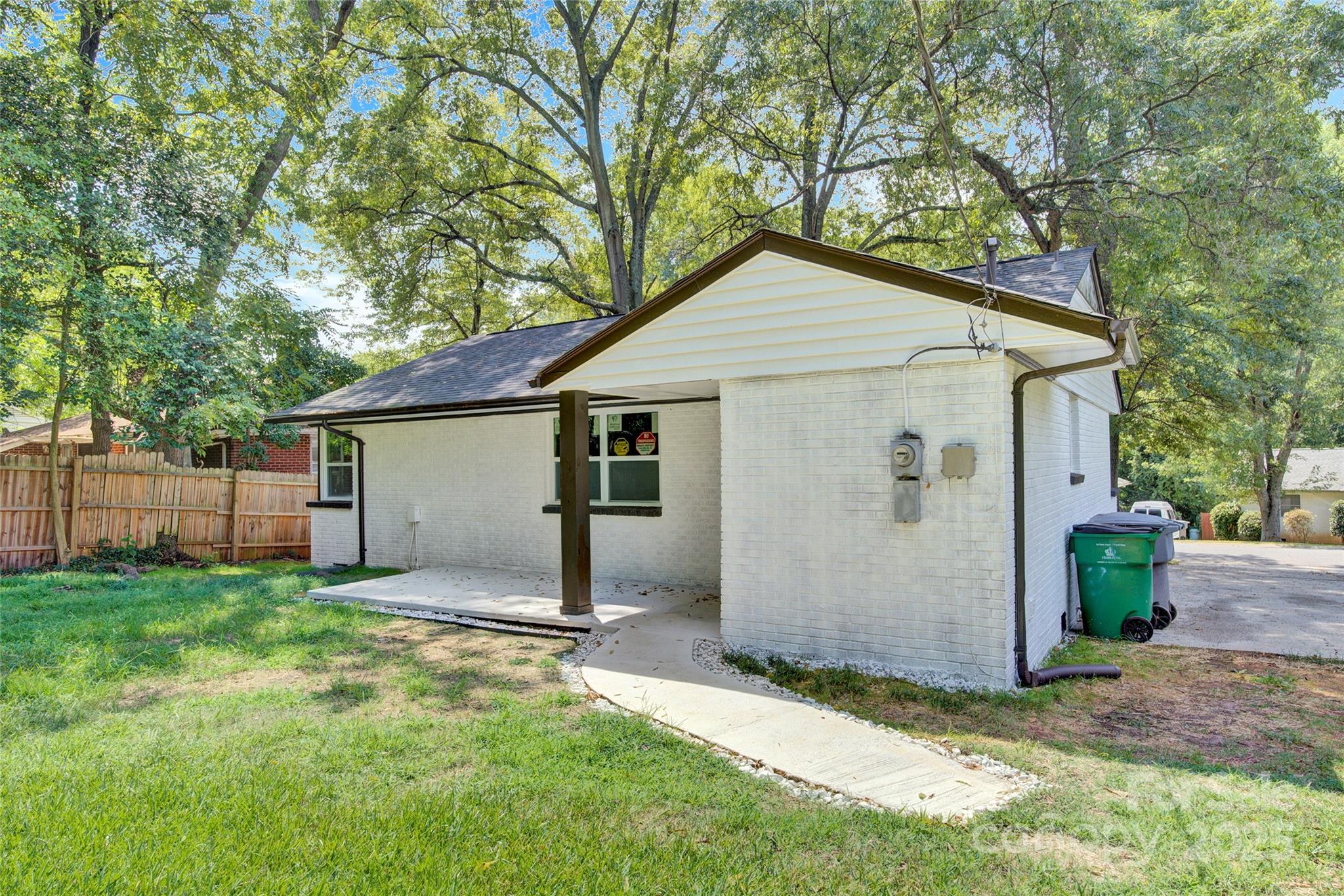 This charming and fully updated home features a fresh, modern aesthetic with light gray walls and beautiful, dark hardwood-style flooring throughout. The kitchen is a standout with updated countertops, cabinets and stainless steel appliances, including a range, dishwasher, and refrigerator. The property also includes bright bedrooms with ceiling fans and a contemporary bathroom featuring white fixtures and wainscoting. With attractive white painted brick siding and a low-maintenance exterior in a convenient Charlotte location, this house is a fantastic opportunity for comfortable, modern living.