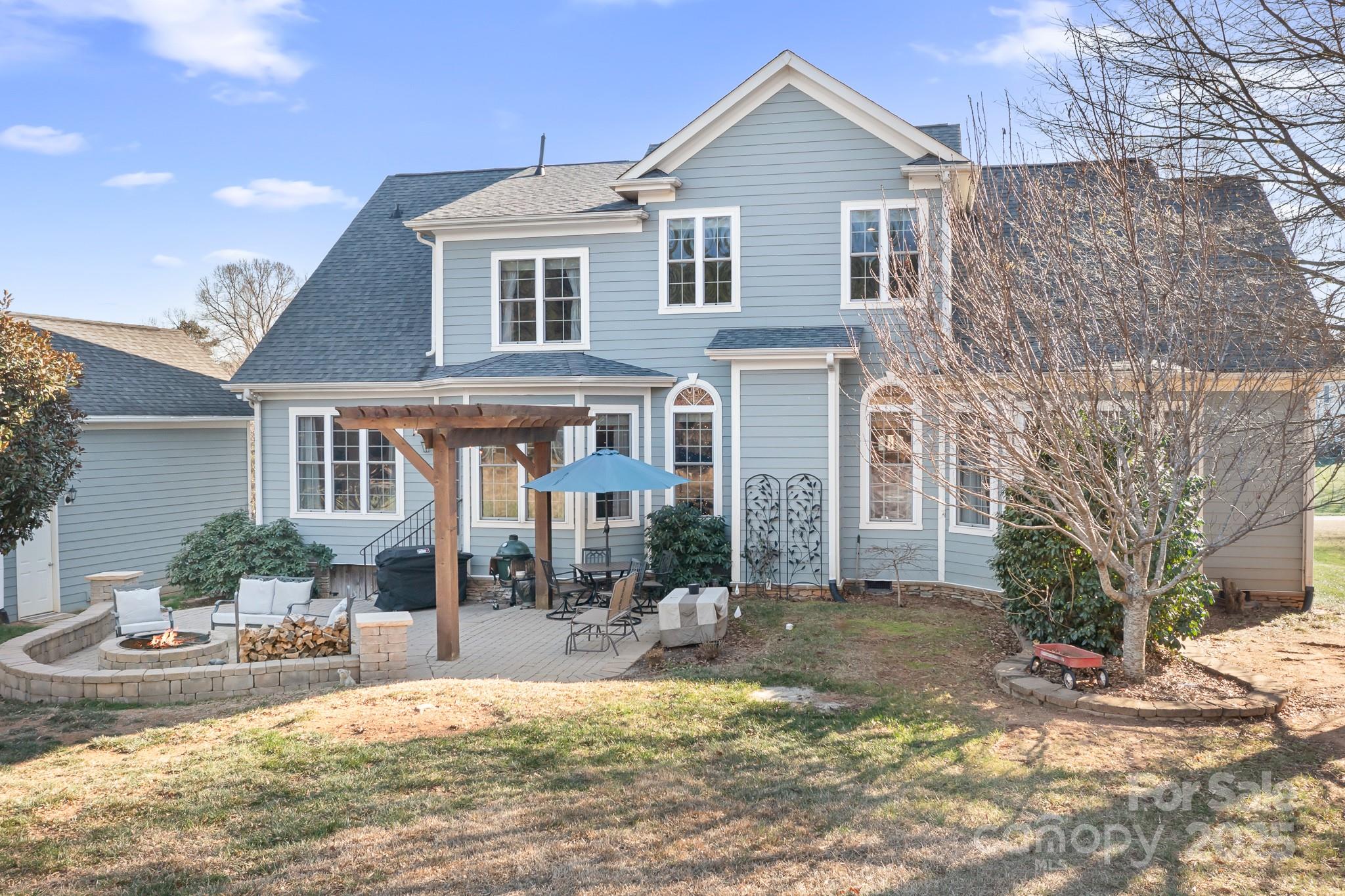 Welcome to 6065 Willow Farm Drive, located in the highly desirable Willow Farms community—known for generous homesites, a neighborhood pool and clubhouse, and a welcoming atmosphere. This home offers nearly 3,000 sq ft of thoughtfully designed living space suited for both everyday comfort and entertaining. The main level features an expansive great room with a fireplace, providing a central gathering space that feels open yet inviting. The kitchen, complete with granite countertops, stainless steel appliances, and a walk-in pantry, opens to both the breakfast nook and a warm keeping room with a second fireplace. Together, these interconnected spaces create a natural flow ideal for hosting, relaxing, or spending time with family. A well-appointed first-floor primary suite provides convenience and privacy, offering a spacious bedroom layout and an adjoining bath with ample storage and functionality. Upstairs, you’ll find three sizable bedrooms, a shared bath accessible from the landing, and a large additional room that can serve as a media room, game room, or dedicated workspace—flexible to meet a variety of lifestyle needs. The home offers abundant storage throughout, both upstairs and down. Outdoors, the property features a level, landscaped yard with mature plantings, terrace space, and two separate fire-pit areas, perfect for entertaining or relaxing under the stars. A detached one-car garage adds versatility for storage, workshop use, or an additional vehicle. One of the standout amenities of this property is the newly installed full-court basketball court in the backyard—an impressive recreational feature ideal for athletes, families, gatherings, and active living right at home. The home includes several important system updates for peace of mind, such as a newer roof, updated HVAC systems, and a tankless water heater, offering reliable operation and energy efficiency.